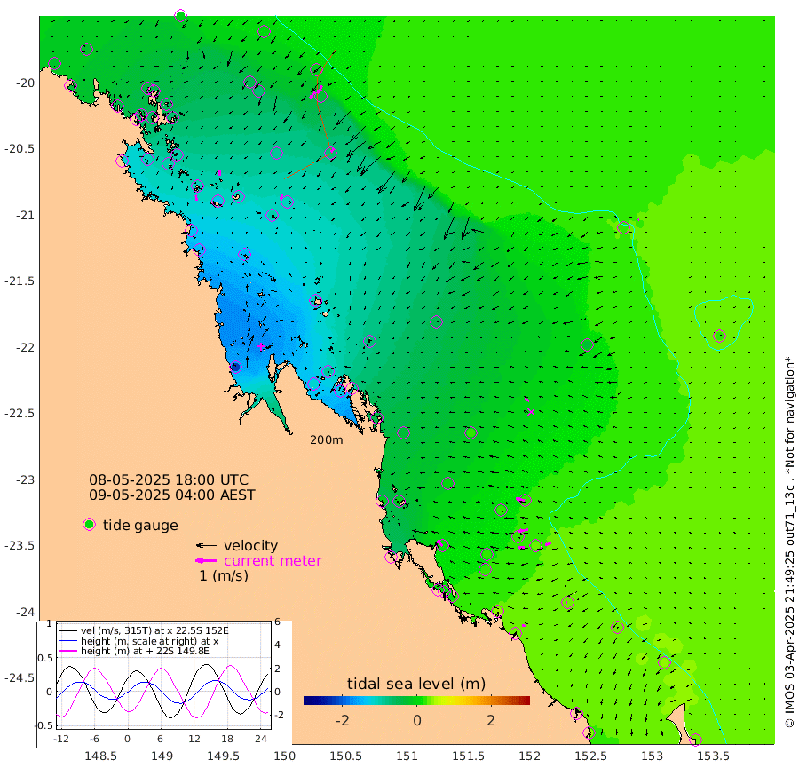 25cm/s 167T +10cm/s rms + 2cm/s 5T. Brampton I 18m 26cm/s -178T +9cm/s rms + 6cm/s 66T. Wigton I 38m 24cm/s -151T +7cm/s rms + 8cm/s 141T. Tern I 47m 41cm/s -151T +7cm/s rms + 12cm/s 54T. N Bugatti Rf 64m 37cm/s -140T +3cm/s rms + 13cm/s 178T. W Bugatti Rf 70m 22cm/s -145T +3cm/s rms + 3cm/s -130T. Creal Rf 69m 45cm/s -76T +7cm/s rms + 4cm/s 2T. North Rf 62m 36cm/s -42T +9cm/s rms + 2cm/s -56T. Cape Capricorn 26m 8cm/s -101T +5cm/s rms + 3cm/s 166T. L Musgrave I 42m 15cm/s -73T +9cm/s rms + 1cm/s -142T. Round Hill Hd 26m 5cm/s -109T +41cm/s rms + 48cm/s 116T. GBRELR 305m 21cm/s -72T +7cm/s rms + 6cm/s 123T. GBRCCH 92m 49cm/s -99T +8cm/s rms + 3cm/s -33T. GBRHIN 45m 32cm/s -93T +4cm/s rms + 2cm/s 41T. GBRHIS 46m 29cm/s -106T +16cm/s rms + 4cm/s -22T. GBROTE 59m -50cm Bell Cay -26cm Holbourne I -108cm Tern I -34cm Bugatti Rf -67cm Creal Rf -10cm White Tip I 19cm North Rf 18cm Rundle I 32cm L Musgrave I 20cm Saumarez Reef -3cm Kennedy Reef 3cm Unnamed Reef No. 2 -21cm Abbot Point -31cm Bowen -54cm Tideway Reef -38cm Hayman Island -74cm Square Reef -53cm Double Bay -45cm Molle Island -60cm Cid Harbour -52cm Hook Island -57cm Border Island -67cm Haslewood Island -66cm Shute Harbour -96cm Thomas Island -93cm Credlin Reef -110cm East Repulse Island -96cm Blacksmith Island -119cm Laguna Quays -108cm Carlisle Island (Off) -135cm St. Bees Island -107cm Scawfell Island -100cm Penrith Island -135cm Mackay Outer Harbour -143cm Hay Point -148cm Prudhoe Island -107cm Middle Island (Percy Isles) -36cm Gannet Cay 26cm Elusive Reef -216cm Mcewin Islet -92cm Mumford Island -114cm Osborn Island -129cm Marquis Island -104cm Reef Point -70cm High Peak Island -43cm Port Clinton -34cm Peaked Island 24cm Karamea Bank 5cm Johnson Patch - NW -7cm Rosslyn Bay -7cm Middle Island (Keppel Isles) -19cm Port Alma 28cm Heron Island 36cm One Tree Islet 28cm Polmaise Reef 21cm Tryon Island 27cm Rock Cod Shoal 16cm Gatcombe Head 3cm Gladstone 13cm South Trees (Storm Surge) 39cm Clews Point 33cm Round Hill Head 33cm Lady Elliot Island 39cm Breaksea Spit 35cm Bundaberg (Burnett Heads) 39cm Elliot Heads 30cm Waddy Point (Fraser Island)