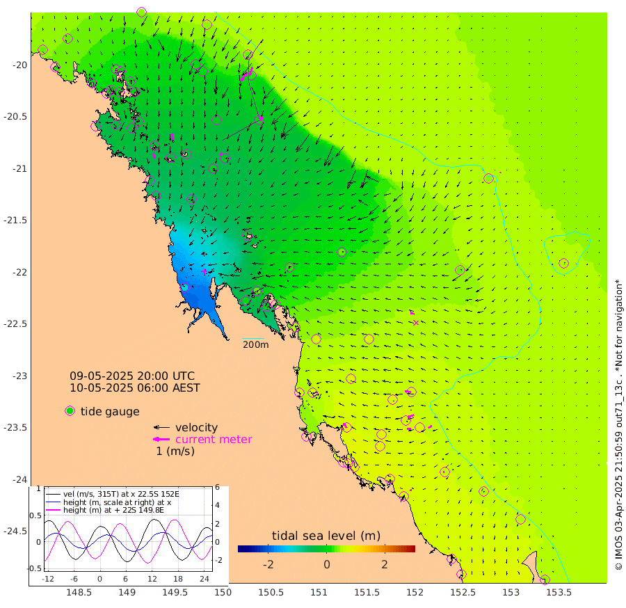 36cm/s 166T +10cm/s rms + 2cm/s 5T. Brampton I 18m 43cm/s 172T +9cm/s rms + 6cm/s 66T. Wigton I 38m 22cm/s -160T +7cm/s rms + 8cm/s 141T. Tern I 47m 57cm/s -160T +7cm/s rms + 12cm/s 54T. N Bugatti Rf 64m 64cm/s -147T +3cm/s rms + 13cm/s 178T. W Bugatti Rf 70m 28cm/s -168T +3cm/s rms + 3cm/s -130T. Creal Rf 69m 37cm/s -80T +7cm/s rms + 4cm/s 2T. North Rf 62m 35cm/s -34T +9cm/s rms + 2cm/s -56T. Cape Capricorn 26m 8cm/s -103T +5cm/s rms + 3cm/s 166T. L Musgrave I 42m 9cm/s -70T +9cm/s rms + 1cm/s -142T. Round Hill Hd 26m 5cm/s -145T +41cm/s rms + 48cm/s 116T. GBRELR 305m 27cm/s -75T +7cm/s rms + 6cm/s 123T. GBRCCH 92m 41cm/s -109T +8cm/s rms + 3cm/s -33T. GBRHIN 45m 24cm/s -96T +4cm/s rms + 2cm/s 41T. GBRHIS 46m 24cm/s -127T +16cm/s rms + 4cm/s -22T. GBROTE 59m 29cm Bell Cay 30cm Holbourne I -12cm Tern I 20cm Bugatti Rf 2cm Creal Rf 33cm White Tip I 66cm North Rf 85cm Rundle I 58cm L Musgrave I 50cm Saumarez Reef 45cm Kennedy Reef 45cm Unnamed Reef No. 2 34cm Abbot Point 26cm Bowen 6cm Tideway Reef 24cm Hayman Island 4cm Square Reef 9cm Double Bay 14cm Molle Island 7cm Cid Harbour 7cm Hook Island 2cm Border Island -5cm Haslewood Island 1cm Shute Harbour -21cm Thomas Island -9cm Credlin Reef -31cm East Repulse Island -20cm Blacksmith Island -39cm Laguna Quays -24cm Carlisle Island (Off) -42cm St. Bees Island -25cm Scawfell Island -6cm Penrith Island -40cm Mackay Outer Harbour -40cm Hay Point -35cm Prudhoe Island 6cm Middle Island (Percy Isles) 33cm Gannet Cay 44cm Elusive Reef -114cm Mcewin Islet 35cm Mumford Island 8cm Osborn Island -4cm Marquis Island 9cm Reef Point 24cm High Peak Island 54cm Port Clinton 68cm Peaked Island 70cm Karamea Bank 75cm Johnson Patch - NW 80cm Rosslyn Bay 83cm Middle Island (Keppel Isles) 81cm Port Alma 71cm Heron Island 82cm One Tree Islet 81cm Polmaise Reef 68cm Tryon Island 77cm Rock Cod Shoal 78cm Gatcombe Head 78cm Gladstone 82cm South Trees (Storm Surge) 83cm Clews Point 70cm Round Hill Head 55cm Lady Elliot Island 55cm Breaksea Spit 76cm Bundaberg (Burnett Heads) 82cm Elliot Heads 41cm Waddy Point (Fraser Island)