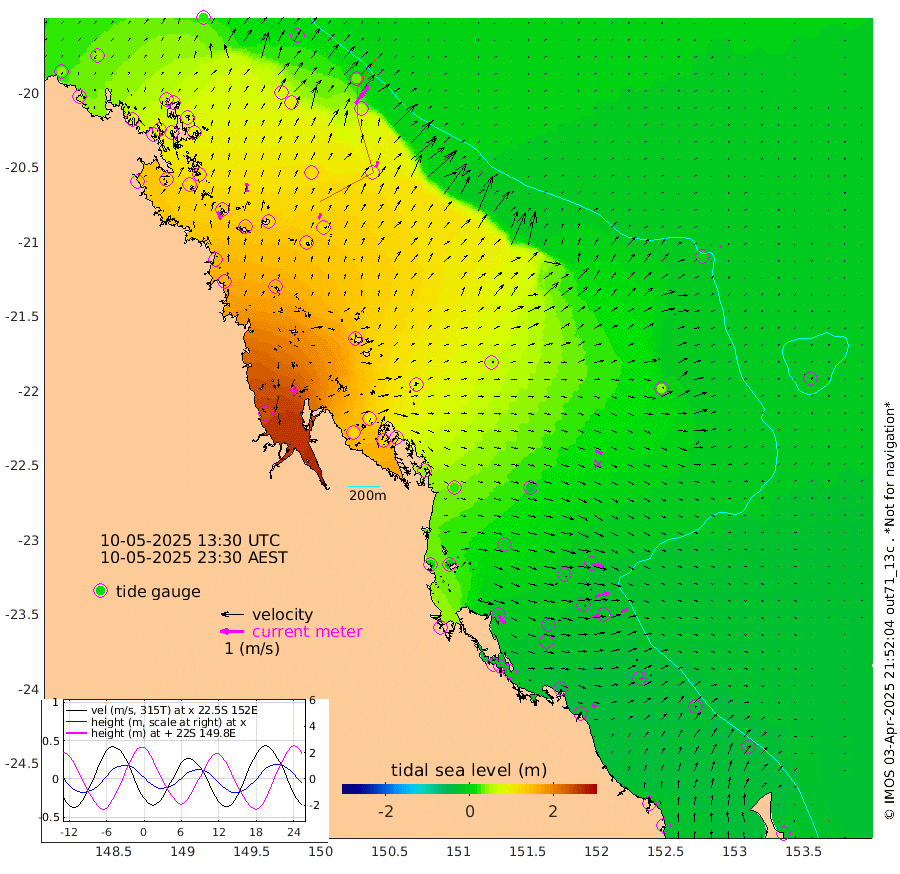 36cm/s -17T +10cm/s rms + 2cm/s 5T. Brampton I 18m 37cm/s -5T +9cm/s rms + 6cm/s 66T. Wigton I 38m 25cm/s 22T +7cm/s rms + 8cm/s 141T. Tern I 47m 53cm/s 25T +7cm/s rms + 12cm/s 54T. N Bugatti Rf 64m 57cm/s 37T +3cm/s rms + 13cm/s 178T. W Bugatti Rf 70m 26cm/s 19T +3cm/s rms + 3cm/s -130T. Creal Rf 69m 56cm/s 105T +7cm/s rms + 4cm/s 2T. North Rf 62m 45cm/s 142T +9cm/s rms + 2cm/s -56T. Cape Capricorn 26m 18cm/s 93T +5cm/s rms + 3cm/s 166T. L Musgrave I 42m 20cm/s 113T +9cm/s rms + 1cm/s -142T. Round Hill Hd 26m 6cm/s 48T +41cm/s rms + 48cm/s 116T. GBRELR 305m 26cm/s 110T +7cm/s rms + 6cm/s 123T. GBRCCH 92m 60cm/s 75T +8cm/s rms + 3cm/s -33T. GBRHIN 45m 37cm/s 89T +4cm/s rms + 2cm/s 41T. GBRHIS 46m 32cm/s 70T +16cm/s rms + 4cm/s -22T. GBROTE 59m 53cm Bell Cay 45cm Holbourne I 119cm Tern I 53cm Bugatti Rf 82cm Creal Rf 30cm White Tip I -17cm North Rf -25cm Rundle I -27cm L Musgrave I -18cm Saumarez Reef 25cm Kennedy Reef 16cm Unnamed Reef No. 2 38cm Abbot Point 49cm Bowen 76cm Tideway Reef 54cm Hayman Island 94cm Square Reef 75cm Double Bay 86cm Molle Island 77cm Cid Harbour 75cm Hook Island 76cm Border Island 84cm Haslewood Island 85cm Shute Harbour 116cm Thomas Island 106cm Credlin Reef 127cm East Repulse Island 115cm Blacksmith Island 141cm Laguna Quays 123cm Carlisle Island (Off) 141cm St. Bees Island 114cm Scawfell Island 115cm Penrith Island 153cm Mackay Outer Harbour 159cm Hay Point 159cm Prudhoe Island 121cm Middle Island (Percy Isles) 42cm Gannet Cay -7cm Elusive Reef 243cm Mcewin Islet 88cm Mumford Island 114cm Osborn Island 124cm Marquis Island 104cm Reef Point 73cm High Peak Island 42cm Port Clinton 20cm Peaked Island -22cm Karamea Bank -2cm Johnson Patch - NW 0cm Rosslyn Bay -4cm Middle Island (Keppel Isles) 10cm Port Alma -23cm Heron Island -33cm One Tree Islet -28cm Polmaise Reef -12cm Tryon Island -27cm Rock Cod Shoal -17cm Gatcombe Head -8cm Gladstone -17cm South Trees (Storm Surge) -40cm Clews Point -31cm Round Hill Head -27cm Lady Elliot Island -27cm Breaksea Spit -34cm Bundaberg (Burnett Heads) -41cm Elliot Heads -20cm Waddy Point (Fraser Island)