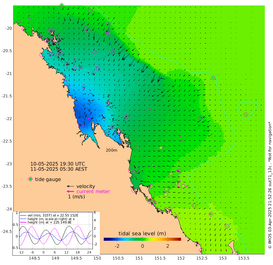 32cm/s 162T +10cm/s rms + 2cm/s 5T. Brampton I 18m 33cm/s 176T +9cm/s rms + 6cm/s 66T. Wigton I 38m 24cm/s -158T +7cm/s rms + 8cm/s 141T. Tern I 47m 48cm/s -156T +7cm/s rms + 12cm/s 54T. N Bugatti Rf 64m 47cm/s -145T +3cm/s rms + 13cm/s 178T. W Bugatti Rf 70m 26cm/s -158T +3cm/s rms + 3cm/s -130T. Creal Rf 69m 41cm/s -76T +7cm/s rms + 4cm/s 2T. North Rf 62m 35cm/s -41T +9cm/s rms + 2cm/s -56T. Cape Capricorn 26m 9cm/s -95T +5cm/s rms + 3cm/s 166T. L Musgrave I 42m 14cm/s -71T +9cm/s rms + 1cm/s -142T. Round Hill Hd 26m 5cm/s -145T +41cm/s rms + 48cm/s 116T. GBRELR 305m 22cm/s -78T +7cm/s rms + 6cm/s 123T. GBRCCH 92m 50cm/s -101T +8cm/s rms + 3cm/s -33T. GBRHIN 45m 32cm/s -94T +4cm/s rms + 2cm/s 41T. GBRHIS 46m 30cm/s -117T +16cm/s rms + 4cm/s -22T. GBROTE 59m -34cm Bell Cay -12cm Holbourne I -87cm Tern I -21cm Bugatti Rf -52cm Creal Rf 0cm White Tip I 27cm North Rf 32cm Rundle I 34cm L Musgrave I 30cm Saumarez Reef 11cm Kennedy Reef 15cm Unnamed Reef No. 2 -2cm Abbot Point -12cm Bowen -38cm Tideway Reef -20cm Hayman Island -53cm Square Reef -43cm Double Bay -32cm Molle Island -38cm Cid Harbour -38cm Hook Island -40cm Border Island -47cm Haslewood Island -48cm Shute Harbour -78cm Thomas Island -70cm Credlin Reef -86cm East Repulse Island -77cm Blacksmith Island -101cm Laguna Quays -84cm Carlisle Island (Off) -110cm St. Bees Island -87cm Scawfell Island -79cm Penrith Island -116cm Mackay Outer Harbour -124cm Hay Point -128cm Prudhoe Island -93cm Middle Island (Percy Isles) -25cm Gannet Cay 28cm Elusive Reef -212cm Mcewin Islet -67cm Mumford Island -87cm Osborn Island -101cm Marquis Island -77cm Reef Point -50cm High Peak Island -27cm Port Clinton -9cm Peaked Island 34cm Karamea Bank 14cm Johnson Patch - NW 12cm Rosslyn Bay 14cm Middle Island (Keppel Isles) 3cm Port Alma 34cm Heron Island 39cm One Tree Islet 35cm Polmaise Reef 29cm Tryon Island 39cm Rock Cod Shoal 27cm Gatcombe Head 18cm Gladstone 27cm South Trees (Storm Surge) 46cm Clews Point 38cm Round Hill Head 34cm Lady Elliot Island 35cm Breaksea Spit 42cm Bundaberg (Burnett Heads) 48cm Elliot Heads 25cm Waddy Point (Fraser Island)