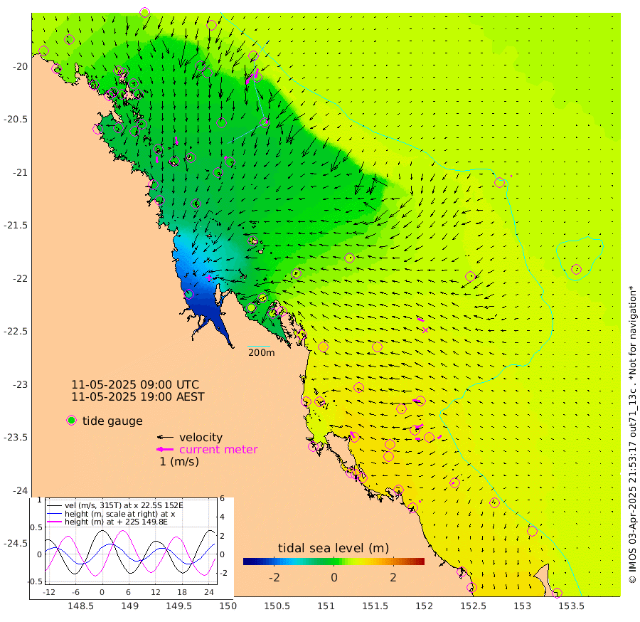 37cm/s 177T +10cm/s rms + 2cm/s 5T. Brampton I 18m 47cm/s 172T +9cm/s rms + 6cm/s 66T. Wigton I 38m 20cm/s -147T +7cm/s rms + 8cm/s 141T. Tern I 47m 59cm/s -165T +7cm/s rms + 12cm/s 54T. N Bugatti Rf 64m 76cm/s -147T +3cm/s rms + 13cm/s 178T. W Bugatti Rf 70m 29cm/s -169T +3cm/s rms + 3cm/s -130T. Creal Rf 69m 45cm/s -82T +7cm/s rms + 4cm/s 2T. North Rf 62m 43cm/s -31T +9cm/s rms + 2cm/s -56T. Cape Capricorn 26m 14cm/s -108T +5cm/s rms + 3cm/s 166T. L Musgrave I 42m 10cm/s -80T +9cm/s rms + 1cm/s -142T. Round Hill Hd 26m 6cm/s -113T +41cm/s rms + 48cm/s 116T. GBRELR 305m 39cm/s -68T +7cm/s rms + 6cm/s 123T. GBRCCH 92m 49cm/s -113T +8cm/s rms + 3cm/s -33T. GBRHIN 45m 27cm/s -95T +4cm/s rms + 2cm/s 41T. GBRHIS 46m 27cm/s -128T +16cm/s rms + 4cm/s -22T. GBROTE 59m 59cm Bell Cay 35cm Holbourne I 14cm Tern I 34cm Bugatti Rf 23cm Creal Rf 45cm White Tip I 98cm North Rf 121cm Rundle I 84cm L Musgrave I 65cm Saumarez Reef 52cm Kennedy Reef 55cm Unnamed Reef No. 2 39cm Abbot Point 32cm Bowen 15cm Tideway Reef 38cm Hayman Island 19cm Square Reef 20cm Double Bay 6cm Molle Island 20cm Cid Harbour 19cm Hook Island 12cm Border Island 3cm Haslewood Island 12cm Shute Harbour -4cm Thomas Island 16cm Credlin Reef -9cm East Repulse Island 1cm Blacksmith Island -24cm Laguna Quays -4cm Carlisle Island (Off) 7cm St. Bees Island 9cm Scawfell Island 16cm Penrith Island -14cm Mackay Outer Harbour -12cm Hay Point -5cm Prudhoe Island 36cm Middle Island (Percy Isles) 57cm Gannet Cay 59cm Elusive Reef -79cm Mcewin Islet 79cm Mumford Island 52cm Osborn Island 50cm Marquis Island 50cm Reef Point 54cm High Peak Island 91cm Port Clinton 113cm Peaked Island 100cm Karamea Bank 110cm Johnson Patch - NW 119cm Rosslyn Bay 124cm Middle Island (Keppel Isles) 121cm Port Alma 99cm Heron Island 116cm One Tree Islet 113cm Polmaise Reef 104cm Tryon Island 108cm Rock Cod Shoal 106cm Gatcombe Head 112cm Gladstone 115cm South Trees (Storm Surge) 115cm Clews Point 99cm Round Hill Head 82cm Lady Elliot Island 84cm Breaksea Spit 101cm Bundaberg (Burnett Heads) 108cm Elliot Heads 67cm Waddy Point (Fraser Island)