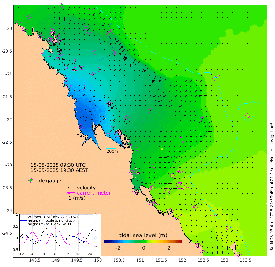 24cm/s 174T +10cm/s rms + 2cm/s 5T. Brampton I 18m 27cm/s 177T +9cm/s rms + 6cm/s 66T. Wigton I 38m 20cm/s -150T +7cm/s rms + 8cm/s 141T. Tern I 47m 42cm/s -156T +7cm/s rms + 12cm/s 54T. N Bugatti Rf 64m 46cm/s -146T +3cm/s rms + 13cm/s 178T. W Bugatti Rf 70m 19cm/s -158T +3cm/s rms + 3cm/s -130T. Creal Rf 69m 53cm/s -74T +7cm/s rms + 4cm/s 2T. North Rf 62m 40cm/s -37T +9cm/s rms + 2cm/s -56T. Cape Capricorn 26m 23cm/s -100T +5cm/s rms + 3cm/s 166T. L Musgrave I 42m 18cm/s -75T +9cm/s rms + 1cm/s -142T. Round Hill Hd 26m 6cm/s -104T +41cm/s rms + 48cm/s 116T. GBRELR 305m 30cm/s -64T +7cm/s rms + 6cm/s 123T. GBRCCH 92m 54cm/s -102T +8cm/s rms + 3cm/s -33T. GBRHIN 45m 33cm/s -92T +4cm/s rms + 2cm/s 41T. GBRHIS 46m 28cm/s -107T +16cm/s rms + 4cm/s -22T. GBROTE 59m -31cm Bell Cay -27cm Holbourne I -86cm Tern I -27cm Bugatti Rf -52cm Creal Rf -8cm White Tip I 37cm North Rf 38cm Rundle I 45cm L Musgrave I 38cm Saumarez Reef -14cm Kennedy Reef 8cm Unnamed Reef No. 2 -17cm Abbot Point -26cm Bowen -44cm Tideway Reef -33cm Hayman Island -63cm Square Reef -39cm Double Bay -63cm Molle Island -52cm Cid Harbour -46cm Hook Island -55cm Border Island -57cm Haslewood Island -57cm Shute Harbour -78cm Thomas Island -68cm Credlin Reef -83cm East Repulse Island -88cm Blacksmith Island -105cm Laguna Quays -86cm Carlisle Island (Off) -95cm St. Bees Island -89cm Scawfell Island -94cm Penrith Island -115cm Mackay Outer Harbour -120cm Hay Point -114cm Prudhoe Island -97cm Middle Island (Percy Isles) -30cm Gannet Cay 31cm Elusive Reef -211cm Mcewin Islet -82cm Mumford Island -103cm Osborn Island -106cm Marquis Island -86cm Reef Point -52cm High Peak Island -22cm Port Clinton 6cm Peaked Island 47cm Karamea Bank 17cm Johnson Patch - NW 15cm Rosslyn Bay 23cm Middle Island (Keppel Isles) 1cm Port Alma 41cm Heron Island 47cm One Tree Islet 41cm Polmaise Reef 38cm Tryon Island 51cm Rock Cod Shoal 26cm Gatcombe Head 17cm Gladstone 28cm South Trees (Storm Surge) 50cm Clews Point 45cm Round Hill Head 49cm Lady Elliot Island 49cm Breaksea Spit 41cm Bundaberg (Burnett Heads) 43cm Elliot Heads 44cm Waddy Point (Fraser Island)
