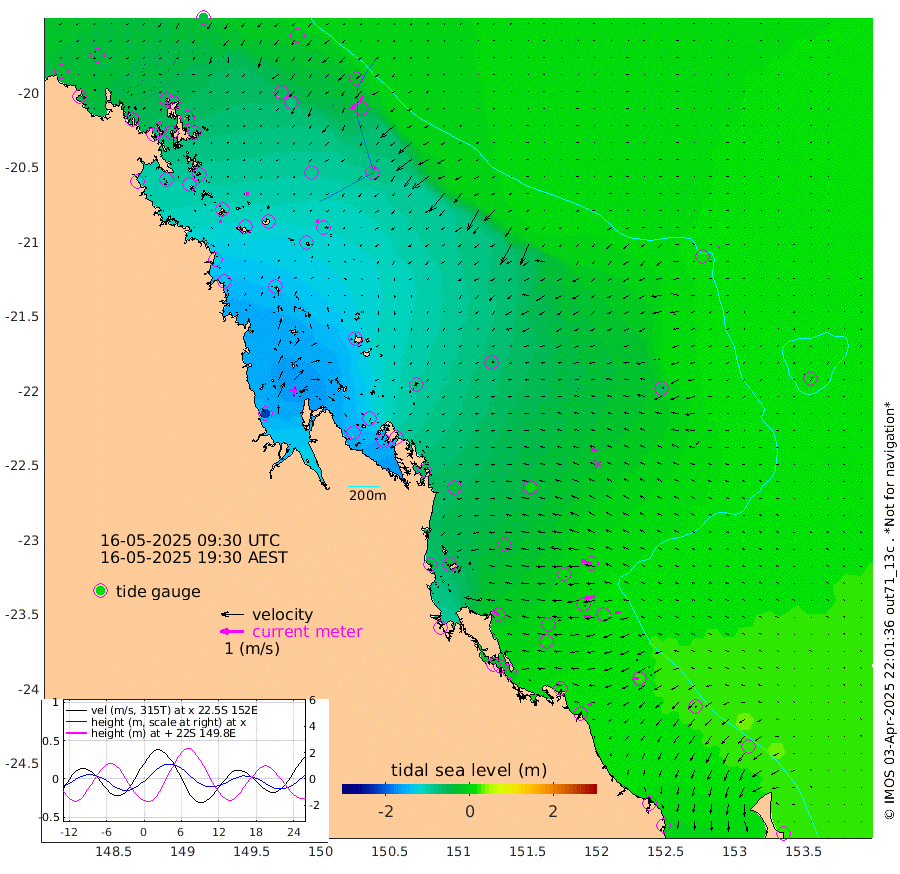 14cm/s 172T +10cm/s rms + 2cm/s 5T. Brampton I 18m 15cm/s -177T +9cm/s rms + 6cm/s 66T. Wigton I 38m 16cm/s -149T +7cm/s rms + 8cm/s 141T. Tern I 47m 30cm/s -153T +7cm/s rms + 12cm/s 54T. N Bugatti Rf 64m 29cm/s -147T +3cm/s rms + 13cm/s 178T. W Bugatti Rf 70m 13cm/s -145T +3cm/s rms + 3cm/s -130T. Creal Rf 69m 45cm/s -71T +7cm/s rms + 4cm/s 2T. North Rf 62m 32cm/s -39T +9cm/s rms + 2cm/s -56T. Cape Capricorn 26m 23cm/s -98T +5cm/s rms + 3cm/s 166T. L Musgrave I 42m 17cm/s -73T +9cm/s rms + 1cm/s -142T. Round Hill Hd 26m 5cm/s -98T +41cm/s rms + 48cm/s 116T. GBRELR 305m 22cm/s -61T +7cm/s rms + 6cm/s 123T. GBRCCH 92m 45cm/s -101T +8cm/s rms + 3cm/s -33T. GBRHIN 45m 29cm/s -91T +4cm/s rms + 2cm/s 41T. GBRHIS 46m 24cm/s -98T +16cm/s rms + 4cm/s -22T. GBROTE 59m -59cm Bell Cay -44cm Holbourne I -106cm Tern I -45cm Bugatti Rf -70cm Creal Rf -27cm White Tip I 5cm North Rf -2cm Rundle I 20cm L Musgrave I 17cm Saumarez Reef -33cm Kennedy Reef -13cm Unnamed Reef No. 2 -36cm Abbot Point -45cm Bowen -59cm Tideway Reef -54cm Hayman Island -80cm Square Reef -54cm Double Bay -79cm Molle Island -74cm Cid Harbour -60cm Hook Island -72cm Border Island -75cm Haslewood Island -73cm Shute Harbour -92cm Thomas Island -89cm Credlin Reef -101cm East Repulse Island -109cm Blacksmith Island -117cm Laguna Quays -106cm Carlisle Island (Off) -119cm St. Bees Island -114cm Scawfell Island -118cm Penrith Island -131cm Mackay Outer Harbour -138cm Hay Point -128cm Prudhoe Island -123cm Middle Island (Percy Isles) -57cm Gannet Cay 13cm Elusive Reef -220cm Mcewin Islet -120cm Mumford Island -142cm Osborn Island -148cm Marquis Island -125cm Reef Point -83cm High Peak Island -57cm Port Clinton -32cm Peaked Island 15cm Karamea Bank -20cm Johnson Patch - NW -28cm Rosslyn Bay -21cm Middle Island (Keppel Isles) -46cm Port Alma 8cm Heron Island 14cm One Tree Islet 6cm Polmaise Reef 3cm Tryon Island 14cm Rock Cod Shoal -11cm Gatcombe Head -25cm Gladstone -13cm South Trees (Storm Surge) 17cm Clews Point 14cm Round Hill Head 24cm Lady Elliot Island 25cm Breaksea Spit 8cm Bundaberg (Burnett Heads) 5cm Elliot Heads 25cm Waddy Point (Fraser Island)