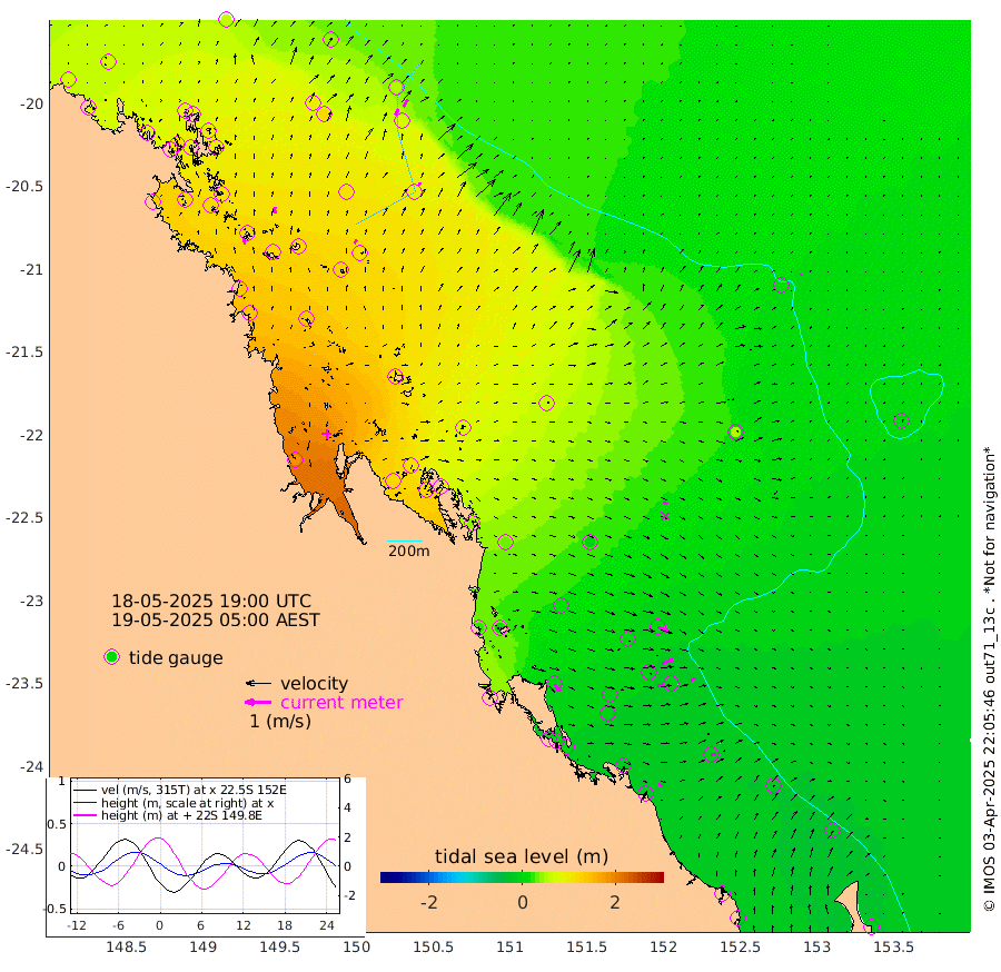22cm/s -16T +10cm/s rms + 2cm/s 5T. Brampton I 18m 25cm/s -4T +9cm/s rms + 6cm/s 66T. Wigton I 38m 16cm/s 26T +7cm/s rms + 8cm/s 141T. Tern I 47m 33cm/s 28T +7cm/s rms + 12cm/s 54T. N Bugatti Rf 64m 26cm/s 31T +3cm/s rms + 13cm/s 178T. W Bugatti Rf 70m 13cm/s 31T +3cm/s rms + 3cm/s -130T. Creal Rf 69m 43cm/s 113T +7cm/s rms + 4cm/s 2T. North Rf 62m 34cm/s 141T +9cm/s rms + 2cm/s -56T. Cape Capricorn 26m 19cm/s 93T +5cm/s rms + 3cm/s 166T. L Musgrave I 42m 18cm/s 113T +9cm/s rms + 1cm/s -142T. Round Hill Hd 26m 4cm/s 56T +41cm/s rms + 48cm/s 116T. GBRELR 305m 17cm/s 120T +7cm/s rms + 6cm/s 123T. GBRCCH 92m 44cm/s 75T +8cm/s rms + 3cm/s -33T. GBRHIN 45m 26cm/s 89T +4cm/s rms + 2cm/s 41T. GBRHIS 46m 19cm/s 66T +16cm/s rms + 4cm/s -22T. GBROTE 59m 59cm Bell Cay 73cm Holbourne I 112cm Tern I 69cm Bugatti Rf 85cm Creal Rf 56cm White Tip I 3cm North Rf 2cm Rundle I -9cm L Musgrave I 4cm Saumarez Reef 57cm Kennedy Reef 45cm Unnamed Reef No. 2 74cm Abbot Point 81cm Bowen 94cm Tideway Reef 86cm Hayman Island 115cm Square Reef 86cm Double Bay 117cm Molle Island 99cm Cid Harbour 85cm Hook Island 101cm Border Island 98cm Haslewood Island 100cm Shute Harbour 112cm Thomas Island 112cm Credlin Reef 121cm East Repulse Island 121cm Blacksmith Island 134cm Laguna Quays 121cm Carlisle Island (Off) 120cm St. Bees Island 115cm Scawfell Island 128cm Penrith Island 137cm Mackay Outer Harbour 140cm Hay Point 135cm Prudhoe Island 107cm Middle Island (Percy Isles) 49cm Gannet Cay 15cm Elusive Reef 187cm Mcewin Islet 108cm Mumford Island 122cm Osborn Island 117cm Marquis Island 107cm Reef Point 75cm High Peak Island 44cm Port Clinton 32cm Peaked Island -5cm Karamea Bank 14cm Johnson Patch - NW 20cm Rosslyn Bay 18cm Middle Island (Keppel Isles) 28cm Port Alma -3cm Heron Island -3cm One Tree Islet -4cm Polmaise Reef 4cm Tryon Island -6cm Rock Cod Shoal 5cm Gatcombe Head 11cm Gladstone 3cm South Trees (Storm Surge) -13cm Clews Point -12cm Round Hill Head -14cm Lady Elliot Island -13cm Breaksea Spit -11cm Bundaberg (Burnett Heads) -13cm Elliot Heads -10cm Waddy Point (Fraser Island)