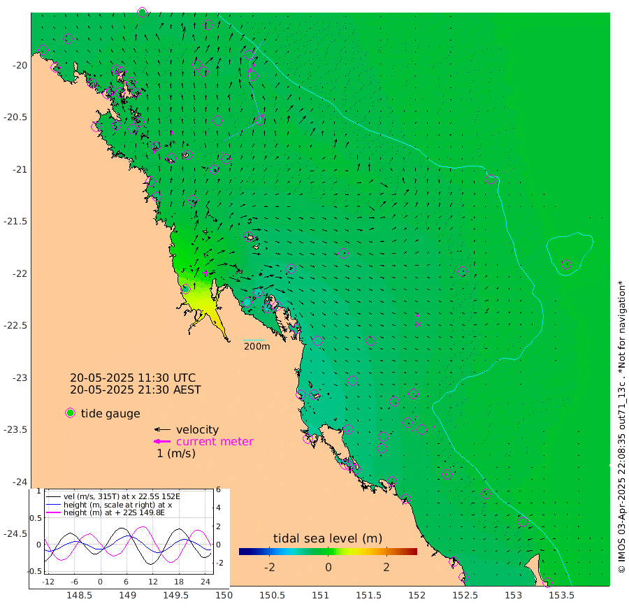 17cm/s -4T +10cm/s rms + 2cm/s 5T. Brampton I 18m 21cm/s -13T +9cm/s rms + 6cm/s 66T. Wigton I 38m 4cm/s -2T +7cm/s rms + 8cm/s 141T. Tern I 47m 20cm/s 8T +7cm/s rms + 12cm/s 54T. N Bugatti Rf 64m 31cm/s 35T +3cm/s rms + 13cm/s 178T. W Bugatti Rf 70m 13cm/s -8T +3cm/s rms + 3cm/s -130T. Creal Rf 69m 5cm/s 59T +7cm/s rms + 4cm/s 2T. North Rf 62m 10cm/s 165T +9cm/s rms + 2cm/s -56T. Cape Capricorn 26m 9cm/s -92T +5cm/s rms + 3cm/s 166T. L Musgrave I 42m 4cm/s -80T +9cm/s rms + 1cm/s -142T. Round Hill Hd 26m 2cm/s -2T +41cm/s rms + 48cm/s 116T. GBRELR 305m 10cm/s 96T +7cm/s rms + 6cm/s 123T. GBRCCH 92m 4cm/s 37T +8cm/s rms + 3cm/s -33T. GBRHIN 45m 3cm/s -52T +4cm/s rms + 2cm/s 41T. GBRHIS 46m 10cm/s -6T +16cm/s rms + 4cm/s -22T. GBROTE 59m -64cm Bell Cay -47cm Holbourne I -63cm Tern I -42cm Bugatti Rf -46cm Creal Rf -40cm White Tip I -53cm North Rf -73cm Rundle I -36cm L Musgrave I -27cm Saumarez Reef -47cm Kennedy Reef -44cm Unnamed Reef No. 2 -51cm Abbot Point -51cm Bowen -44cm Tideway Reef -55cm Hayman Island -49cm Square Reef -49cm Double Bay -52cm Molle Island -56cm Cid Harbour -45cm Hook Island -51cm Border Island -52cm Haslewood Island -51cm Shute Harbour -47cm Thomas Island -62cm Credlin Reef -62cm East Repulse Island -59cm Blacksmith Island -51cm Laguna Quays -68cm Carlisle Island (Off) -64cm St. Bees Island -62cm Scawfell Island -74cm Penrith Island -62cm Mackay Outer Harbour -67cm Hay Point -57cm Prudhoe Island -78cm Middle Island (Percy Isles) -65cm Gannet Cay -30cm Elusive Reef -77cm Mcewin Islet -96cm Mumford Island -106cm Osborn Island -111cm Marquis Island -102cm Reef Point -81cm High Peak Island -82cm Port Clinton -76cm Peaked Island -54cm Karamea Bank -66cm Johnson Patch - NW -88cm Rosslyn Bay -88cm Middle Island (Keppel Isles) -101cm Port Alma -52cm Heron Island -52cm One Tree Islet -58cm Polmaise Reef -54cm Tryon Island -66cm Rock Cod Shoal -70cm Gatcombe Head -82cm Gladstone -78cm South Trees (Storm Surge) -53cm Clews Point -48cm Round Hill Head -31cm Lady Elliot Island -28cm Breaksea Spit -56cm Bundaberg (Burnett Heads) -62cm Elliot Heads -18cm Waddy Point (Fraser Island)