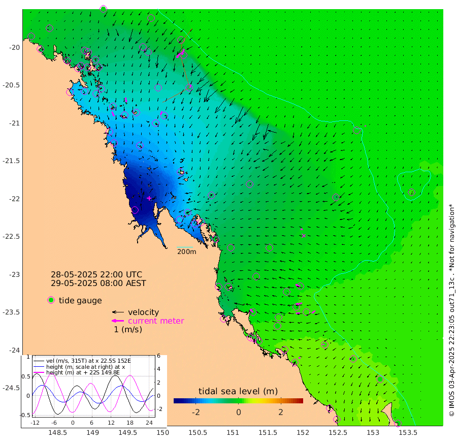 41cm/s 155T +10cm/s rms + 2cm/s 5T. Brampton I 18m 39cm/s 171T +9cm/s rms + 6cm/s 66T. Wigton I 38m 28cm/s -162T +7cm/s rms + 8cm/s 141T. Tern I 47m 52cm/s -156T +7cm/s rms + 12cm/s 54T. N Bugatti Rf 64m 52cm/s -146T +3cm/s rms + 13cm/s 178T. W Bugatti Rf 70m 26cm/s -162T +3cm/s rms + 3cm/s -130T. Creal Rf 69m 41cm/s -71T +7cm/s rms + 4cm/s 2T. North Rf 62m 37cm/s -41T +9cm/s rms + 2cm/s -56T. Cape Capricorn 26m 15cm/s -86T +5cm/s rms + 3cm/s 166T. L Musgrave I 42m 16cm/s -74T +9cm/s rms + 1cm/s -142T. Round Hill Hd 26m 6cm/s -165T +41cm/s rms + 48cm/s 116T. GBRELR 305m 18cm/s -86T +7cm/s rms + 6cm/s 123T. GBRCCH 92m 53cm/s -101T +8cm/s rms + 3cm/s -33T. GBRHIN 45m 34cm/s -94T +4cm/s rms + 2cm/s 41T. GBRHIS 46m 33cm/s -123T +16cm/s rms + 4cm/s -22T. GBROTE 59m -53cm Bell Cay -29cm Holbourne I -112cm Tern I -44cm Bugatti Rf -72cm Creal Rf -23cm White Tip I 10cm North Rf 17cm Rundle I 20cm L Musgrave I 26cm Saumarez Reef -7cm Kennedy Reef -7cm Unnamed Reef No. 2 -28cm Abbot Point -39cm Bowen -64cm Tideway Reef -54cm Hayman Island -81cm Square Reef -57cm Double Bay -79cm Molle Island -74cm Cid Harbour -59cm Hook Island -72cm Border Island -80cm Haslewood Island -77cm Shute Harbour -107cm Thomas Island -104cm Credlin Reef -127cm East Repulse Island -113cm Blacksmith Island -134cm Laguna Quays -121cm Carlisle Island (Off) -131cm St. Bees Island -119cm Scawfell Island -122cm Penrith Island -150cm Mackay Outer Harbour -157cm Hay Point -144cm Prudhoe Island -109cm Middle Island (Percy Isles) -46cm Gannet Cay 7cm Elusive Reef -255cm Mcewin Islet -93cm Mumford Island -132cm Osborn Island -142cm Marquis Island -119cm Reef Point -74cm High Peak Island -36cm Port Clinton -12cm Peaked Island 18cm Karamea Bank 3cm Johnson Patch - NW -5cm Rosslyn Bay -1cm Middle Island (Keppel Isles) -13cm Port Alma 17cm Heron Island 26cm One Tree Islet 25cm Polmaise Reef 3cm Tryon Island 18cm Rock Cod Shoal 11cm Gatcombe Head 4cm Gladstone 14cm South Trees (Storm Surge) 33cm Clews Point 25cm Round Hill Head 21cm Lady Elliot Island 18cm Breaksea Spit 32cm Bundaberg (Burnett Heads) 37cm Elliot Heads 8cm Waddy Point (Fraser Island)