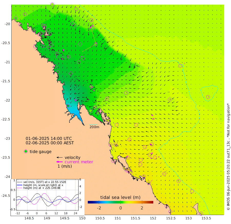 22cm/s -179T +10cm/s rms + 2cm/s 5T. Brampton I 18m 30cm/s 177T +9cm/s rms + 6cm/s 66T. Wigton I 38m 15cm/s -139T +7cm/s rms + 8cm/s 141T. Tern I 47m 35cm/s -158T +7cm/s rms + 12cm/s 54T. N Bugatti Rf 64m 38cm/s -145T +3cm/s rms + 13cm/s 178T. W Bugatti Rf 70m 16cm/s -153T +3cm/s rms + 3cm/s -130T. Creal Rf 69m 33cm/s -85T +7cm/s rms + 4cm/s 2T. North Rf 62m 30cm/s -33T +9cm/s rms + 2cm/s -56T. Cape Capricorn 26m 8cm/s -152T +5cm/s rms + 3cm/s 166T. L Musgrave I 42m 6cm/s -101T +9cm/s rms + 1cm/s -142T. Round Hill Hd 26m 5cm/s -85T +41cm/s rms + 48cm/s 116T. GBRELR 305m 27cm/s -66T +7cm/s rms + 6cm/s 123T. GBRCCH 92m 31cm/s -111T +8cm/s rms + 3cm/s -33T. GBRHIN 45m 18cm/s -93T +4cm/s rms + 2cm/s 41T. GBRHIS 46m 17cm/s -108T +16cm/s rms + 4cm/s -22T. GBROTE 59m 51cm Bell Cay 32cm Holbourne I 14cm Tern I 33cm Bugatti Rf 24cm Creal Rf 42cm White Tip I 85cm North Rf 98cm Rundle I 78cm L Musgrave I 58cm Saumarez Reef 39cm Kennedy Reef 46cm Unnamed Reef No. 2 24cm Abbot Point 20cm Bowen 13cm Tideway Reef 22cm Hayman Island 16cm Square Reef 25cm Double Bay 20cm Molle Island 7cm Cid Harbour 21cm Hook Island 7cm Border Island 2cm Haslewood Island 9cm Shute Harbour -1cm Thomas Island 8cm Credlin Reef -15cm East Repulse Island -4cm Blacksmith Island -14cm Laguna Quays -6cm Carlisle Island (Off) -9cm St. Bees Island 1cm Scawfell Island 13cm Penrith Island -6cm Mackay Outer Harbour -4cm Hay Point 6cm Prudhoe Island 50cm Middle Island (Percy Isles) 55cm Gannet Cay 57cm Elusive Reef -40cm Mcewin Islet 54cm Mumford Island 29cm Osborn Island 29cm Marquis Island 28cm Reef Point 48cm High Peak Island 83cm Port Clinton 86cm Peaked Island 86cm Karamea Bank 104cm Johnson Patch - NW 97cm Rosslyn Bay 96cm Middle Island (Keppel Isles) 99cm Port Alma 92cm Heron Island 105cm One Tree Islet 99cm Polmaise Reef 91cm Tryon Island 90cm Rock Cod Shoal 93cm Gatcombe Head 96cm Gladstone 98cm South Trees (Storm Surge) 97cm Clews Point 90cm Round Hill Head 78cm Lady Elliot Island 82cm Breaksea Spit 90cm Bundaberg (Burnett Heads) 94cm Elliot Heads 68cm Waddy Point (Fraser Island)