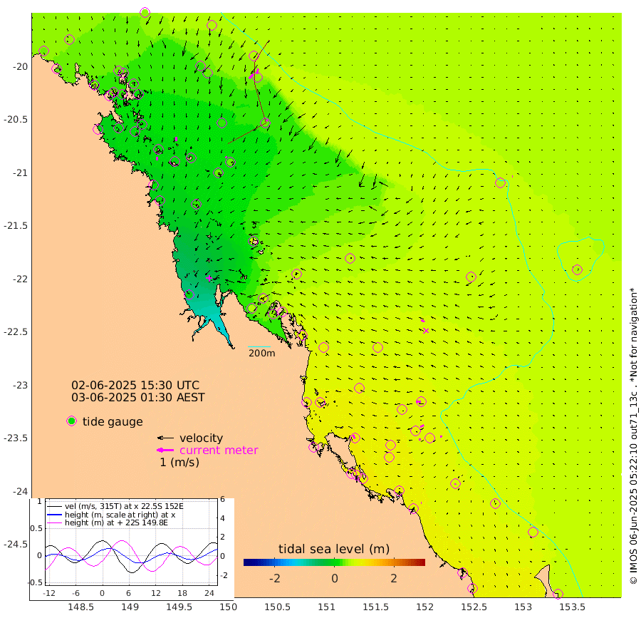 19cm/s -178T +10cm/s rms + 2cm/s 5T. Brampton I 18m 26cm/s 177T +9cm/s rms + 6cm/s 66T. Wigton I 38m 12cm/s -139T +7cm/s rms + 8cm/s 141T. Tern I 47m 32cm/s -159T +7cm/s rms + 12cm/s 54T. N Bugatti Rf 64m 35cm/s -145T +3cm/s rms + 13cm/s 178T. W Bugatti Rf 70m 14cm/s -155T +3cm/s rms + 3cm/s -130T. Creal Rf 69m 26cm/s -89T +7cm/s rms + 4cm/s 2T. North Rf 62m 24cm/s -32T +9cm/s rms + 2cm/s -56T. Cape Capricorn 26m 6cm/s 170T +5cm/s rms + 3cm/s 166T. L Musgrave I 42m 4cm/s -122T +9cm/s rms + 1cm/s -142T. Round Hill Hd 26m 4cm/s -80T +41cm/s rms + 48cm/s 116T. GBRELR 305m 23cm/s -67T +7cm/s rms + 6cm/s 123T. GBRCCH 92m 22cm/s -113T +8cm/s rms + 3cm/s -33T. GBRHIN 45m 12cm/s -94T +4cm/s rms + 2cm/s 41T. GBRHIS 46m 12cm/s -111T +16cm/s rms + 4cm/s -22T. GBROTE 59m 57cm Bell Cay 43cm Holbourne I 30cm Tern I 41cm Bugatti Rf 34cm Creal Rf 47cm White Tip I 80cm North Rf 94cm Rundle I 70cm L Musgrave I 51cm Saumarez Reef 47cm Kennedy Reef 51cm Unnamed Reef No. 2 35cm Abbot Point 32cm Bowen 26cm Tideway Reef 36cm Hayman Island 29cm Square Reef 41cm Double Bay 40cm Molle Island 20cm Cid Harbour 35cm Hook Island 20cm Border Island 16cm Haslewood Island 24cm Shute Harbour 14cm Thomas Island 23cm Credlin Reef 3cm East Repulse Island 11cm Blacksmith Island 6cm Laguna Quays 14cm Carlisle Island (Off) 7cm St. Bees Island 15cm Scawfell Island 33cm Penrith Island 15cm Mackay Outer Harbour 18cm Hay Point 25cm Prudhoe Island 67cm Middle Island (Percy Isles) 62cm Gannet Cay 55cm Elusive Reef -3cm Mcewin Islet 68cm Mumford Island 47cm Osborn Island 47cm Marquis Island 45cm Reef Point 59cm High Peak Island 89cm Port Clinton 84cm Peaked Island 80cm Karamea Bank 101cm Johnson Patch - NW 97cm Rosslyn Bay 95cm Middle Island (Keppel Isles) 101cm Port Alma 85cm Heron Island 97cm One Tree Islet 93cm Polmaise Reef 84cm Tryon Island 85cm Rock Cod Shoal 91cm Gatcombe Head 95cm Gladstone 95cm South Trees (Storm Surge) 89cm Clews Point 82cm Round Hill Head 69cm Lady Elliot Island 73cm Breaksea Spit 84cm Bundaberg (Burnett Heads) 87cm Elliot Heads 59cm Waddy Point (Fraser Island)