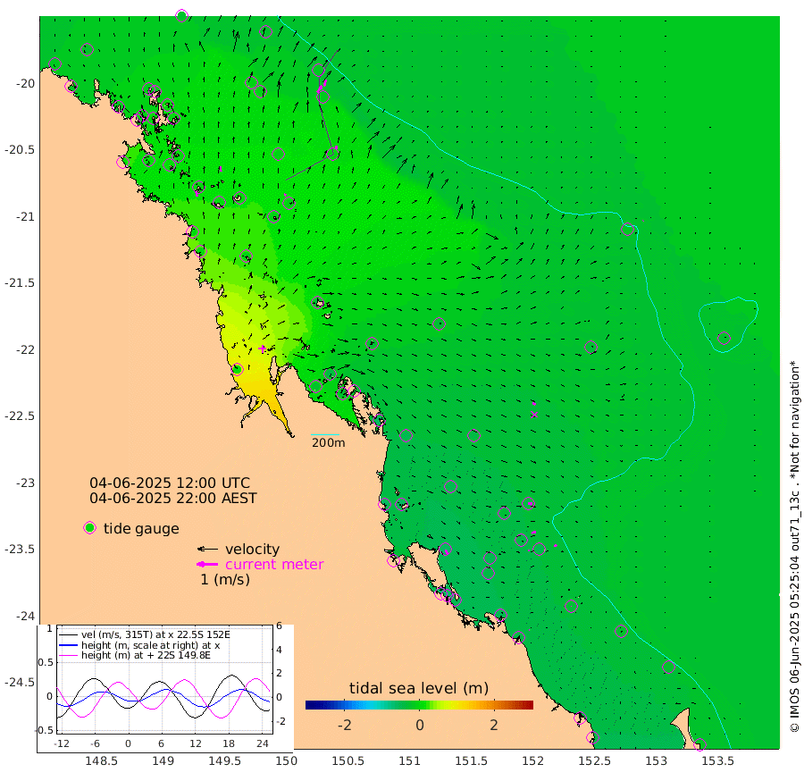 21cm/s -10T +10cm/s rms + 2cm/s 5T. Brampton I 18m 25cm/s -9T +9cm/s rms + 6cm/s 66T. Wigton I 38m 10cm/s 26T +7cm/s rms + 8cm/s 141T. Tern I 47m 31cm/s 16T +7cm/s rms + 12cm/s 54T. N Bugatti Rf 64m 40cm/s 36T +3cm/s rms + 13cm/s 178T. W Bugatti Rf 70m 15cm/s 10T +3cm/s rms + 3cm/s -130T. Creal Rf 69m 19cm/s 93T +7cm/s rms + 4cm/s 2T. North Rf 62m 22cm/s 154T +9cm/s rms + 2cm/s -56T. Cape Capricorn 26m 1cm/s 110T +5cm/s rms + 3cm/s 166T. L Musgrave I 42m 3cm/s 122T +9cm/s rms + 1cm/s -142T. Round Hill Hd 26m 2cm/s 41T +41cm/s rms + 48cm/s 116T. GBRELR 305m 14cm/s 109T +7cm/s rms + 6cm/s 123T. GBRCCH 92m 19cm/s 73T +8cm/s rms + 3cm/s -33T. GBRHIN 45m 9cm/s 81T +4cm/s rms + 2cm/s 41T. GBRHIS 46m 12cm/s 40T +16cm/s rms + 4cm/s -22T. GBROTE 59m -29cm Bell Cay -20cm Holbourne I -6cm Tern I -10cm Bugatti Rf -7cm Creal Rf -14cm White Tip I -39cm North Rf -57cm Rundle I -30cm L Musgrave I -20cm Saumarez Reef -23cm Kennedy Reef -19cm Unnamed Reef No. 2 -13cm Abbot Point -10cm Bowen -2cm Tideway Reef -13cm Hayman Island -2cm Square Reef -16cm Double Bay 0cm Molle Island 5cm Cid Harbour -11cm Hook Island 0cm Border Island 6cm Haslewood Island -1cm Shute Harbour 9cm Thomas Island 0cm Credlin Reef 15cm East Repulse Island 13cm Blacksmith Island 14cm Laguna Quays 4cm Carlisle Island (Off) 8cm St. Bees Island 5cm Scawfell Island -9cm Penrith Island 6cm Mackay Outer Harbour 3cm Hay Point -7cm Prudhoe Island -34cm Middle Island (Percy Isles) -34cm Gannet Cay -18cm Elusive Reef 13cm Mcewin Islet -46cm Mumford Island -27cm Osborn Island -27cm Marquis Island -22cm Reef Point -31cm High Peak Island -57cm Port Clinton -56cm Peaked Island -39cm Karamea Bank -54cm Johnson Patch - NW -60cm Rosslyn Bay -59cm Middle Island (Keppel Isles) -65cm Port Alma -39cm Heron Island -51cm One Tree Islet -51cm Polmaise Reef -32cm Tryon Island -43cm Rock Cod Shoal -52cm Gatcombe Head -57cm Gladstone -57cm South Trees (Storm Surge) -49cm Clews Point -40cm Round Hill Head -28cm Lady Elliot Island -26cm Breaksea Spit -46cm Bundaberg (Burnett Heads) -46cm Elliot Heads -18cm Waddy Point (Fraser Island)