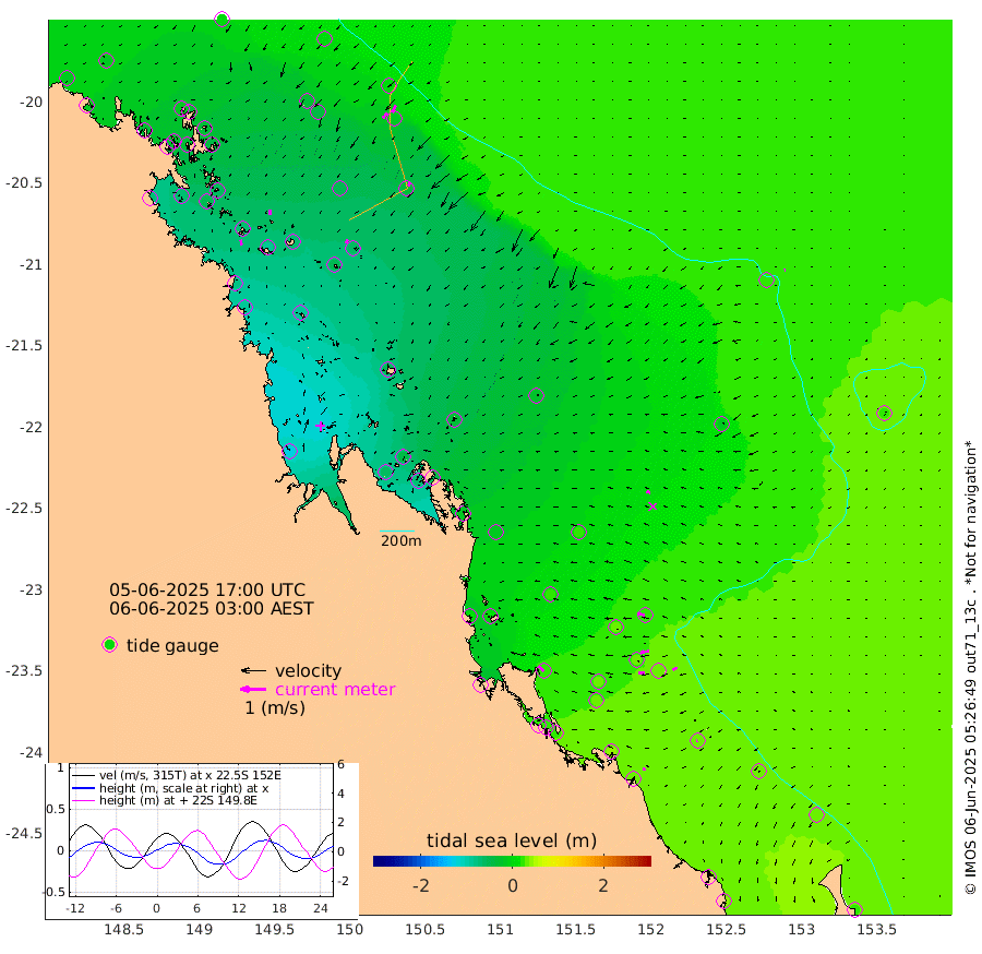 19cm/s 167T +10cm/s rms + 2cm/s 5T. Brampton I 18m 21cm/s -179T +9cm/s rms + 6cm/s 66T. Wigton I 38m 16cm/s -153T +7cm/s rms + 8cm/s 141T. Tern I 47m 30cm/s -152T +7cm/s rms + 12cm/s 54T. N Bugatti Rf 64m 25cm/s -138T +3cm/s rms + 13cm/s 178T. W Bugatti Rf 70m 16cm/s -149T +3cm/s rms + 3cm/s -130T. Creal Rf 69m 30cm/s -77T +7cm/s rms + 4cm/s 2T. North Rf 62m 25cm/s -43T +9cm/s rms + 2cm/s -56T. Cape Capricorn 26m 4cm/s -124T +5cm/s rms + 3cm/s 166T. L Musgrave I 42m 10cm/s -81T +9cm/s rms + 1cm/s -142T. Round Hill Hd 26m 3cm/s -110T +41cm/s rms + 48cm/s 116T. GBRELR 305m 15cm/s -74T +7cm/s rms + 6cm/s 123T. GBRCCH 92m 32cm/s -99T +8cm/s rms + 3cm/s -33T. GBRHIN 45m 22cm/s -93T +4cm/s rms + 2cm/s 41T. GBRHIS 46m 19cm/s -108T +16cm/s rms + 4cm/s -22T. GBROTE 59m -22cm Bell Cay -13cm Holbourne I -63cm Tern I -14cm Bugatti Rf -36cm Creal Rf 1cm White Tip I 25cm North Rf 26cm Rundle I 31cm L Musgrave I 21cm Saumarez Reef 5cm Kennedy Reef 8cm Unnamed Reef No. 2 -10cm Abbot Point -16cm Bowen -31cm Tideway Reef -18cm Hayman Island -42cm Square Reef -33cm Double Bay -19cm Molle Island -33cm Cid Harbour -30cm Hook Island -32cm Border Island -39cm Haslewood Island -39cm Shute Harbour -59cm Thomas Island -55cm Credlin Reef -70cm East Repulse Island -56cm Blacksmith Island -74cm Laguna Quays -66cm Carlisle Island (Off) -86cm St. Bees Island -66cm Scawfell Island -54cm Penrith Island -82cm Mackay Outer Harbour -87cm Hay Point -92cm Prudhoe Island -54cm Middle Island (Percy Isles) -10cm Gannet Cay 24cm Elusive Reef -131cm Mcewin Islet -46cm Mumford Island -59cm Osborn Island -70cm Marquis Island -54cm Reef Point -32cm High Peak Island -14cm Port Clinton -11cm Peaked Island 27cm Karamea Bank 22cm Johnson Patch - NW 12cm Rosslyn Bay 10cm Middle Island (Keppel Isles) 7cm Port Alma 33cm Heron Island 37cm One Tree Islet 33cm Polmaise Reef 28cm Tryon Island 30cm Rock Cod Shoal 27cm Gatcombe Head 20cm Gladstone 26cm South Trees (Storm Surge) 40cm Clews Point 35cm Round Hill Head 31cm Lady Elliot Island 36cm Breaksea Spit 38cm Bundaberg (Burnett Heads) 43cm Elliot Heads 27cm Waddy Point (Fraser Island)