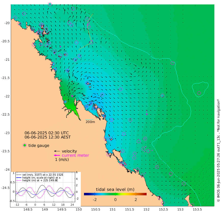 11cm/s 16T +10cm/s rms + 2cm/s 5T. Brampton I 18m 19cm/s -16T +9cm/s rms + 6cm/s 66T. Wigton I 38m 0cm/s -16T +7cm/s rms + 8cm/s 141T. Tern I 47m 25cm/s 1T +7cm/s rms + 12cm/s 54T. N Bugatti Rf 64m 36cm/s 24T +3cm/s rms + 13cm/s 178T. W Bugatti Rf 70m 11cm/s -9T +3cm/s rms + 3cm/s -130T. Creal Rf 69m 9cm/s -45T +7cm/s rms + 4cm/s 2T. North Rf 62m 6cm/s -142T +9cm/s rms + 2cm/s -56T. Cape Capricorn 26m 6cm/s -48T +5cm/s rms + 3cm/s 166T. L Musgrave I 42m 9cm/s -63T +9cm/s rms + 1cm/s -142T. Round Hill Hd 26m 0cm/s -42T +41cm/s rms + 48cm/s 116T. GBRELR 305m 12cm/s 105T +7cm/s rms + 6cm/s 123T. GBRCCH 92m 13cm/s -72T +8cm/s rms + 3cm/s -33T. GBRHIN 45m 11cm/s -81T +4cm/s rms + 2cm/s 41T. GBRHIS 46m 11cm/s -61T +16cm/s rms + 4cm/s -22T. GBROTE 59m -114cm Bell Cay -101cm Holbourne I -134cm Tern I -94cm Bugatti Rf -106cm Creal Rf -86cm White Tip I -82cm North Rf -104cm Rundle I -56cm L Musgrave I -47cm Saumarez Reef -97cm Kennedy Reef -87cm Unnamed Reef No. 2 -98cm Abbot Point -99cm Bowen -101cm Tideway Reef -105cm Hayman Island -119cm Square Reef -112cm Double Bay -121cm Molle Island -103cm Cid Harbour -105cm Hook Island -95cm Border Island -94cm Haslewood Island -107cm Shute Harbour -113cm Thomas Island -120cm Credlin Reef -115cm East Repulse Island -110cm Blacksmith Island -117cm Laguna Quays -119cm Carlisle Island (Off) -119cm St. Bees Island -106cm Scawfell Island -133cm Penrith Island -134cm Mackay Outer Harbour -142cm Hay Point -151cm Prudhoe Island -164cm Middle Island (Percy Isles) -103cm Gannet Cay -57cm Elusive Reef -140cm Mcewin Islet -169cm Mumford Island -160cm Osborn Island -157cm Marquis Island -150cm Reef Point -130cm High Peak Island -142cm Port Clinton -136cm Peaked Island -81cm Karamea Bank -113cm Johnson Patch - NW -127cm Rosslyn Bay -128cm Middle Island (Keppel Isles) -140cm Port Alma -78cm Heron Island -86cm One Tree Islet -89cm Polmaise Reef -88cm Tryon Island -86cm Rock Cod Shoal -98cm Gatcombe Head -110cm Gladstone -105cm South Trees (Storm Surge) -79cm Clews Point -68cm Round Hill Head -50cm Lady Elliot Island -50cm Breaksea Spit -72cm Bundaberg (Burnett Heads) -70cm Elliot Heads -37cm Waddy Point (Fraser Island)