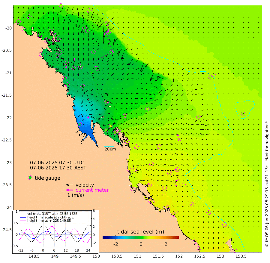 29cm/s -177T +10cm/s rms + 2cm/s 5T. Brampton I 18m 37cm/s 174T +9cm/s rms + 6cm/s 66T. Wigton I 38m 18cm/s -141T +7cm/s rms + 8cm/s 141T. Tern I 47m 50cm/s -165T +7cm/s rms + 12cm/s 54T. N Bugatti Rf 64m 65cm/s -145T +3cm/s rms + 13cm/s 178T. W Bugatti Rf 70m 24cm/s -164T +3cm/s rms + 3cm/s -130T. Creal Rf 69m 40cm/s -81T +7cm/s rms + 4cm/s 2T. North Rf 62m 38cm/s -30T +9cm/s rms + 2cm/s -56T. Cape Capricorn 26m 12cm/s -104T +5cm/s rms + 3cm/s 166T. L Musgrave I 42m 9cm/s -70T +9cm/s rms + 1cm/s -142T. Round Hill Hd 26m 5cm/s -95T +41cm/s rms + 48cm/s 116T. GBRELR 305m 33cm/s -66T +7cm/s rms + 6cm/s 123T. GBRCCH 92m 42cm/s -113T +8cm/s rms + 3cm/s -33T. GBRHIN 45m 23cm/s -94T +4cm/s rms + 2cm/s 41T. GBRHIS 46m 21cm/s -128T +16cm/s rms + 4cm/s -22T. GBROTE 59m 43cm Bell Cay 23cm Holbourne I 2cm Tern I 20cm Bugatti Rf 9cm Creal Rf 30cm White Tip I 78cm North Rf 97cm Rundle I 68cm L Musgrave I 42cm Saumarez Reef 40cm Kennedy Reef 39cm Unnamed Reef No. 2 22cm Abbot Point 16cm Bowen 2cm Tideway Reef 24cm Hayman Island 0cm Square Reef 9cm Double Bay -3cm Molle Island 2cm Cid Harbour 10cm Hook Island 0cm Border Island -11cm Haslewood Island 0cm Shute Harbour -14cm Thomas Island 0cm Credlin Reef -21cm East Repulse Island -13cm Blacksmith Island -30cm Laguna Quays -16cm Carlisle Island (Off) -10cm St. Bees Island -7cm Scawfell Island 3cm Penrith Island -21cm Mackay Outer Harbour -18cm Hay Point -13cm Prudhoe Island 28cm Middle Island (Percy Isles) 44cm Gannet Cay 46cm Elusive Reef -59cm Mcewin Islet 59cm Mumford Island 37cm Osborn Island 34cm Marquis Island 33cm Reef Point 37cm High Peak Island 73cm Port Clinton 84cm Peaked Island 78cm Karamea Bank 89cm Johnson Patch - NW 94cm Rosslyn Bay 95cm Middle Island (Keppel Isles) 94cm Port Alma 78cm Heron Island 96cm One Tree Islet 91cm Polmaise Reef 82cm Tryon Island 83cm Rock Cod Shoal 85cm Gatcombe Head 89cm Gladstone 92cm South Trees (Storm Surge) 94cm Clews Point 79cm Round Hill Head 65cm Lady Elliot Island 71cm Breaksea Spit 80cm Bundaberg (Burnett Heads) 84cm Elliot Heads 55cm Waddy Point (Fraser Island)