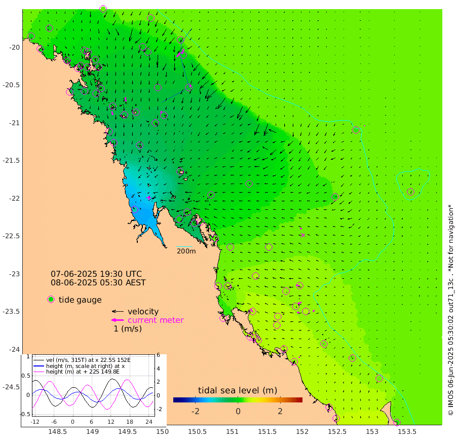 29cm/s 163T +10cm/s rms + 2cm/s 5T. Brampton I 18m 34cm/s 172T +9cm/s rms + 6cm/s 66T. Wigton I 38m 17cm/s -163T +7cm/s rms + 8cm/s 141T. Tern I 47m 43cm/s -160T +7cm/s rms + 12cm/s 54T. N Bugatti Rf 64m 45cm/s -146T +3cm/s rms + 13cm/s 178T. W Bugatti Rf 70m 22cm/s -167T +3cm/s rms + 3cm/s -130T. Creal Rf 69m 25cm/s -78T +7cm/s rms + 4cm/s 2T. North Rf 62m 26cm/s -36T +9cm/s rms + 2cm/s -56T. Cape Capricorn 26m 4cm/s -104T +5cm/s rms + 3cm/s 166T. L Musgrave I 42m 8cm/s -72T +9cm/s rms + 1cm/s -142T. Round Hill Hd 26m 4cm/s -161T +41cm/s rms + 48cm/s 116T. GBRELR 305m 17cm/s -79T +7cm/s rms + 6cm/s 123T. GBRCCH 92m 31cm/s -107T +8cm/s rms + 3cm/s -33T. GBRHIN 45m 19cm/s -96T +4cm/s rms + 2cm/s 41T. GBRHIS 46m 19cm/s -128T +16cm/s rms + 4cm/s -22T. GBROTE 59m 12cm Bell Cay 14cm Holbourne I -20cm Tern I 7cm Bugatti Rf -7cm Creal Rf 17cm White Tip I 41cm North Rf 55cm Rundle I 36cm L Musgrave I 30cm Saumarez Reef 29cm Kennedy Reef 25cm Unnamed Reef No. 2 18cm Abbot Point 12cm Bowen -6cm Tideway Reef 9cm Hayman Island -8cm Square Reef -8cm Double Bay 4cm Molle Island -1cm Cid Harbour -4cm Hook Island -4cm Border Island -10cm Haslewood Island -8cm Shute Harbour -27cm Thomas Island -18cm Credlin Reef -33cm East Repulse Island -22cm Blacksmith Island -39cm Laguna Quays -27cm Carlisle Island (Off) -45cm St. Bees Island -29cm Scawfell Island -14cm Penrith Island -41cm Mackay Outer Harbour -42cm Hay Point -44cm Prudhoe Island -8cm Middle Island (Percy Isles) 18cm Gannet Cay 26cm Elusive Reef -94cm Mcewin Islet 15cm Mumford Island 0cm Osborn Island -10cm Marquis Island 1cm Reef Point 9cm High Peak Island 29cm Port Clinton 37cm Peaked Island 44cm Karamea Bank 47cm Johnson Patch - NW 51cm Rosslyn Bay 51cm Middle Island (Keppel Isles) 53cm Port Alma 46cm Heron Island 51cm One Tree Islet 52cm Polmaise Reef 43cm Tryon Island 50cm Rock Cod Shoal 52cm Gatcombe Head 52cm Gladstone 55cm South Trees (Storm Surge) 56cm Clews Point 46cm Round Hill Head 33cm Lady Elliot Island 32cm Breaksea Spit 52cm Bundaberg (Burnett Heads) 58cm Elliot Heads 22cm Waddy Point (Fraser Island)