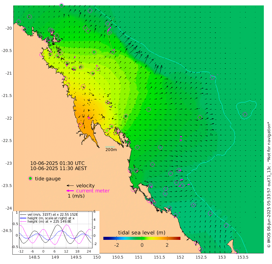 22cm/s -1T +10cm/s rms + 2cm/s 5T. Brampton I 18m 22cm/s -1T +9cm/s rms + 6cm/s 66T. Wigton I 38m 20cm/s 38T +7cm/s rms + 8cm/s 141T. Tern I 47m 32cm/s 19T +7cm/s rms + 12cm/s 54T. N Bugatti Rf 64m 41cm/s 38T +3cm/s rms + 13cm/s 178T. W Bugatti Rf 70m 22cm/s 27T +3cm/s rms + 3cm/s -130T. Creal Rf 69m 33cm/s 96T +7cm/s rms + 4cm/s 2T. North Rf 62m 28cm/s 138T +9cm/s rms + 2cm/s -56T. Cape Capricorn 26m 11cm/s 61T +5cm/s rms + 3cm/s 166T. L Musgrave I 42m 8cm/s 80T +9cm/s rms + 1cm/s -142T. Round Hill Hd 26m 5cm/s 79T +41cm/s rms + 48cm/s 116T. GBRELR 305m 25cm/s 105T +7cm/s rms + 6cm/s 123T. GBRCCH 92m 41cm/s 74T +8cm/s rms + 3cm/s -33T. GBRHIN 45m 27cm/s 88T +4cm/s rms + 2cm/s 41T. GBRHIS 46m 25cm/s 73T +16cm/s rms + 4cm/s -22T. GBROTE 59m -3cm Bell Cay -25cm Holbourne I 41cm Tern I -19cm Bugatti Rf 9cm Creal Rf -38cm White Tip I -59cm North Rf -61cm Rundle I -62cm L Musgrave I -53cm Saumarez Reef -41cm Kennedy Reef -51cm Unnamed Reef No. 2 -35cm Abbot Point -26cm Bowen -6cm Tideway Reef -22cm Hayman Island 6cm Square Reef -13cm Double Bay -12cm Molle Island -3cm Cid Harbour -10cm Hook Island 1cm Border Island 6cm Haslewood Island 4cm Shute Harbour 32cm Thomas Island 18cm Credlin Reef 30cm East Repulse Island 29cm Blacksmith Island 50cm Laguna Quays 30cm Carlisle Island (Off) 32cm St. Bees Island 31cm Scawfell Island 35cm Penrith Island 63cm Mackay Outer Harbour 70cm Hay Point 75cm Prudhoe Island 49cm Middle Island (Percy Isles) -4cm Gannet Cay -61cm Elusive Reef 145cm Mcewin Islet 28cm Mumford Island 45cm Osborn Island 48cm Marquis Island 35cm Reef Point 14cm High Peak Island -10cm Port Clinton -27cm Peaked Island -63cm Karamea Bank -46cm Johnson Patch - NW -43cm Rosslyn Bay -46cm Middle Island (Keppel Isles) -33cm Port Alma -65cm Heron Island -69cm One Tree Islet -60cm Polmaise Reef -64cm Tryon Island -69cm Rock Cod Shoal -51cm Gatcombe Head -45cm Gladstone -53cm South Trees (Storm Surge) -68cm Clews Point -63cm Round Hill Head -63cm Lady Elliot Island -68cm Breaksea Spit -64cm Bundaberg (Burnett Heads) -70cm Elliot Heads -54cm Waddy Point (Fraser Island)