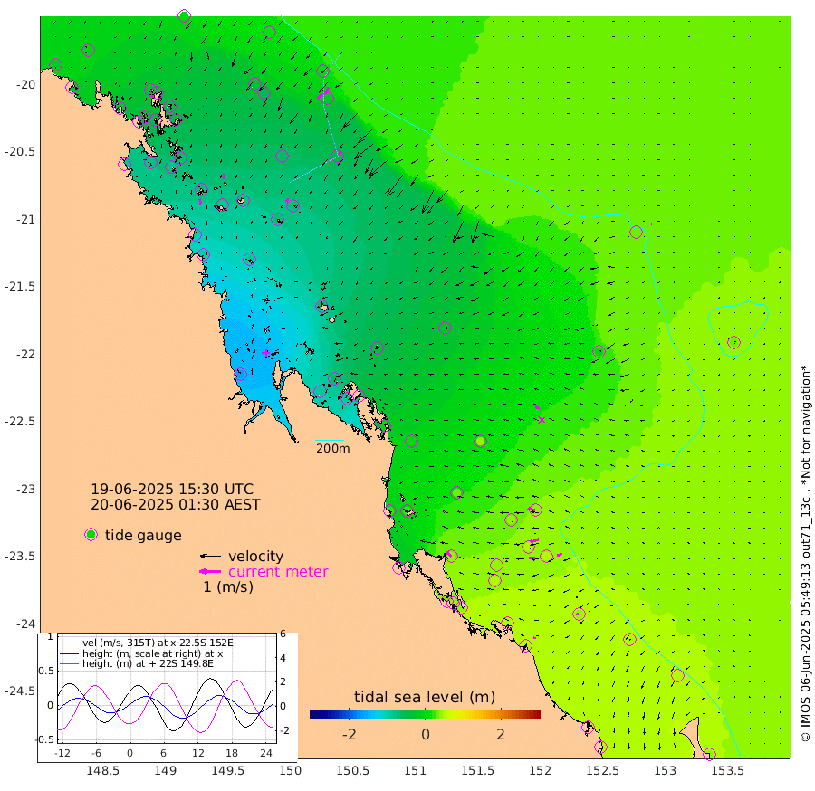24cm/s 168T +10cm/s rms + 2cm/s 5T. Brampton I 18m 25cm/s 179T +9cm/s rms + 6cm/s 66T. Wigton I 38m 18cm/s -150T +7cm/s rms + 8cm/s 141T. Tern I 47m 36cm/s -154T +7cm/s rms + 12cm/s 54T. N Bugatti Rf 64m 31cm/s -146T +3cm/s rms + 13cm/s 178T. W Bugatti Rf 70m 19cm/s -147T +3cm/s rms + 3cm/s -130T. Creal Rf 69m 37cm/s -78T +7cm/s rms + 4cm/s 2T. North Rf 62m 32cm/s -42T +9cm/s rms + 2cm/s -56T. Cape Capricorn 26m 9cm/s -110T +5cm/s rms + 3cm/s 166T. L Musgrave I 42m 12cm/s -85T +9cm/s rms + 1cm/s -142T. Round Hill Hd 26m 4cm/s -115T +41cm/s rms + 48cm/s 116T. GBRELR 305m 22cm/s -71T +7cm/s rms + 6cm/s 123T. GBRCCH 92m 42cm/s -102T +8cm/s rms + 3cm/s -33T. GBRHIN 45m 28cm/s -93T +4cm/s rms + 2cm/s 41T. GBRHIS 46m 25cm/s -110T +16cm/s rms + 4cm/s -22T. GBROTE 59m -19cm Bell Cay -9cm Holbourne I -70cm Tern I -14cm Bugatti Rf -38cm Creal Rf 4cm White Tip I 39cm North Rf 42cm Rundle I 45cm L Musgrave I 35cm Saumarez Reef 2cm Kennedy Reef 16cm Unnamed Reef No. 2 -11cm Abbot Point -19cm Bowen -34cm Tideway Reef -24cm Hayman Island -50cm Square Reef -16cm Double Bay -30cm Molle Island -49cm Cid Harbour -23cm Hook Island -48cm Border Island -47cm Haslewood Island -45cm Shute Harbour -67cm Thomas Island -62cm Credlin Reef -78cm East Repulse Island -79cm Blacksmith Island -88cm Laguna Quays -72cm Carlisle Island (Off) -87cm St. Bees Island -80cm Scawfell Island -72cm Penrith Island -95cm Mackay Outer Harbour -100cm Hay Point -92cm Prudhoe Island -56cm Middle Island (Percy Isles) -8cm Gannet Cay 35cm Elusive Reef -161cm Mcewin Islet -64cm Mumford Island -90cm Osborn Island -90cm Marquis Island -76cm Reef Point -33cm High Peak Island 4cm Port Clinton 8cm Peaked Island 47cm Karamea Bank 37cm Johnson Patch - NW 25cm Rosslyn Bay 26cm Middle Island (Keppel Isles) 18cm Port Alma 48cm Heron Island 52cm One Tree Islet 47cm Polmaise Reef 38cm Tryon Island 49cm Rock Cod Shoal 40cm Gatcombe Head 32cm Gladstone 40cm South Trees (Storm Surge) 52cm Clews Point 50cm Round Hill Head 49cm Lady Elliot Island 50cm Breaksea Spit 52cm Bundaberg (Burnett Heads) 53cm Elliot Heads 40cm Waddy Point (Fraser Island)