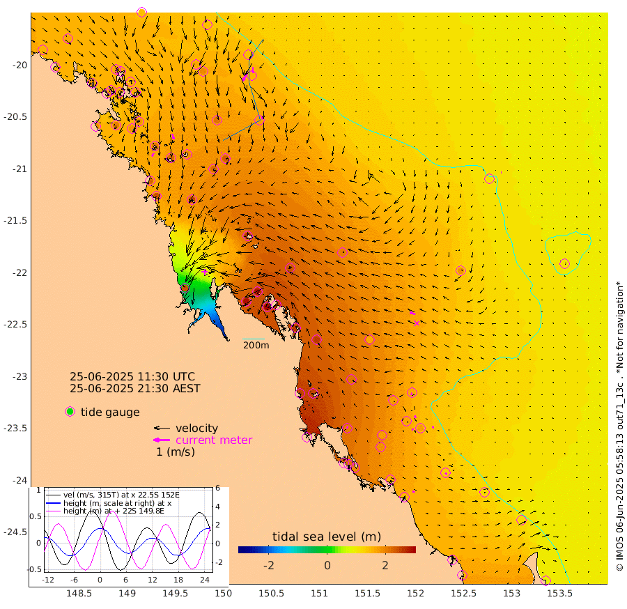 22cm/s -158T +10cm/s rms + 2cm/s 5T. Brampton I 18m 35cm/s 166T +9cm/s rms + 6cm/s 66T. Wigton I 38m 3cm/s -76T +7cm/s rms + 8cm/s 141T. Tern I 47m 35cm/s 176T +7cm/s rms + 12cm/s 54T. N Bugatti Rf 64m 59cm/s -154T +3cm/s rms + 13cm/s 178T. W Bugatti Rf 70m 17cm/s 168T +3cm/s rms + 3cm/s -130T. Creal Rf 69m 12cm/s -167T +7cm/s rms + 4cm/s 2T. North Rf 62m 15cm/s 7T +9cm/s rms + 2cm/s -56T. Cape Capricorn 26m 13cm/s 139T +5cm/s rms + 3cm/s 166T. L Musgrave I 42m 14cm/s 118T +9cm/s rms + 1cm/s -142T. Round Hill Hd 26m 2cm/s -94T +41cm/s rms + 48cm/s 116T. GBRELR 305m 34cm/s -69T +7cm/s rms + 6cm/s 123T. GBRCCH 92m 15cm/s 154T +8cm/s rms + 3cm/s -33T. GBRHIN 45m 10cm/s 102T +4cm/s rms + 2cm/s 41T. GBRHIS 46m 12cm/s 149T +16cm/s rms + 4cm/s -22T. GBROTE 59m 206cm Bell Cay 160cm Holbourne I 227cm Tern I 155cm Bugatti Rf 178cm Creal Rf 143cm White Tip I 166cm North Rf 204cm Rundle I 123cm L Musgrave I 105cm Saumarez Reef 145cm Kennedy Reef 146cm Unnamed Reef No. 2 155cm Abbot Point 158cm Bowen 163cm Tideway Reef 168cm Hayman Island 193cm Square Reef 180cm Double Bay 176cm Molle Island 170cm Cid Harbour 169cm Hook Island 157cm Border Island 161cm Haslewood Island 174cm Shute Harbour 185cm Thomas Island 209cm Credlin Reef 202cm East Repulse Island 185cm Blacksmith Island 190cm Laguna Quays 210cm Carlisle Island (Off) 221cm St. Bees Island 197cm Scawfell Island 223cm Penrith Island 225cm Mackay Outer Harbour 240cm Hay Point 251cm Prudhoe Island 270cm Middle Island (Percy Isles) 187cm Gannet Cay 109cm Elusive Reef 237cm Mcewin Islet 286cm Mumford Island 281cm Osborn Island 294cm Marquis Island 269cm Reef Point 235cm High Peak Island 256cm Port Clinton 253cm Peaked Island 168cm Karamea Bank 212cm Johnson Patch - NW 244cm Rosslyn Bay 249cm Middle Island (Keppel Isles) 266cm Port Alma 161cm Heron Island 173cm One Tree Islet 176cm Polmaise Reef 178cm Tryon Island 182cm Rock Cod Shoal 191cm Gatcombe Head 217cm Gladstone 207cm South Trees (Storm Surge) 158cm Clews Point 147cm Round Hill Head 117cm Lady Elliot Island 113cm Breaksea Spit 150cm Bundaberg (Burnett Heads) 152cm Elliot Heads 92cm Waddy Point (Fraser Island)