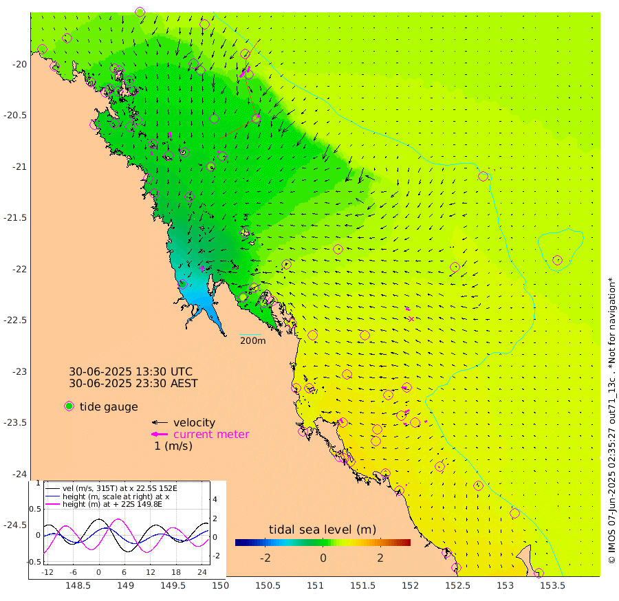 25cm/s 175T +10cm/s rms + 2cm/s 5T. Brampton I 18m 34cm/s 174T +9cm/s rms + 6cm/s 66T. Wigton I 38m 14cm/s -149T +7cm/s rms + 8cm/s 141T. Tern I 47m 39cm/s -161T +7cm/s rms + 12cm/s 54T. N Bugatti Rf 64m 45cm/s -147T +3cm/s rms + 13cm/s 178T. W Bugatti Rf 70m 18cm/s -164T +3cm/s rms + 3cm/s -130T. Creal Rf 69m 32cm/s -86T +7cm/s rms + 4cm/s 2T. North Rf 62m 29cm/s -34T +9cm/s rms + 2cm/s -56T. Cape Capricorn 26m 8cm/s -139T +5cm/s rms + 3cm/s 166T. L Musgrave I 42m 6cm/s -99T +9cm/s rms + 1cm/s -142T. Round Hill Hd 26m 4cm/s -102T +41cm/s rms + 48cm/s 116T. GBRELR 305m 27cm/s -68T +7cm/s rms + 6cm/s 123T. GBRCCH 92m 29cm/s -115T +8cm/s rms + 3cm/s -33T. GBRHIN 45m 17cm/s -95T +4cm/s rms + 2cm/s 41T. GBRHIS 46m 16cm/s -121T +16cm/s rms + 4cm/s -22T. GBROTE 59m 60cm Bell Cay 40cm Holbourne I 27cm Tern I 40cm Bugatti Rf 33cm Creal Rf 47cm White Tip I 89cm North Rf 105cm Rundle I 78cm L Musgrave I 64cm Saumarez Reef 46cm Kennedy Reef 51cm Unnamed Reef No. 2 34cm Abbot Point 30cm Bowen 23cm Tideway Reef 34cm Hayman Island 30cm Square Reef 29cm Double Bay 29cm Molle Island 22cm Cid Harbour 27cm Hook Island 17cm Border Island 13cm Haslewood Island 19cm Shute Harbour 10cm Thomas Island 21cm Credlin Reef -4cm East Repulse Island 11cm Blacksmith Island -4cm Laguna Quays 5cm Carlisle Island (Off) 3cm St. Bees Island 13cm Scawfell Island 29cm Penrith Island 6cm Mackay Outer Harbour 9cm Hay Point 18cm Prudhoe Island 60cm Middle Island (Percy Isles) 61cm Gannet Cay 57cm Elusive Reef -37cm Mcewin Islet 72cm Mumford Island 47cm Osborn Island 45cm Marquis Island 46cm Reef Point 60cm High Peak Island 90cm Port Clinton 98cm Peaked Island 90cm Karamea Bank 110cm Johnson Patch - NW 106cm Rosslyn Bay 107cm Middle Island (Keppel Isles) 110cm Port Alma 95cm Heron Island 107cm One Tree Islet 104cm Polmaise Reef 96cm Tryon Island 95cm Rock Cod Shoal 99cm Gatcombe Head 104cm Gladstone 105cm South Trees (Storm Surge) 101cm Clews Point 92cm Round Hill Head 78cm Lady Elliot Island 80cm Breaksea Spit 94cm Bundaberg (Burnett Heads) 100cm Elliot Heads 65cm Waddy Point (Fraser Island)