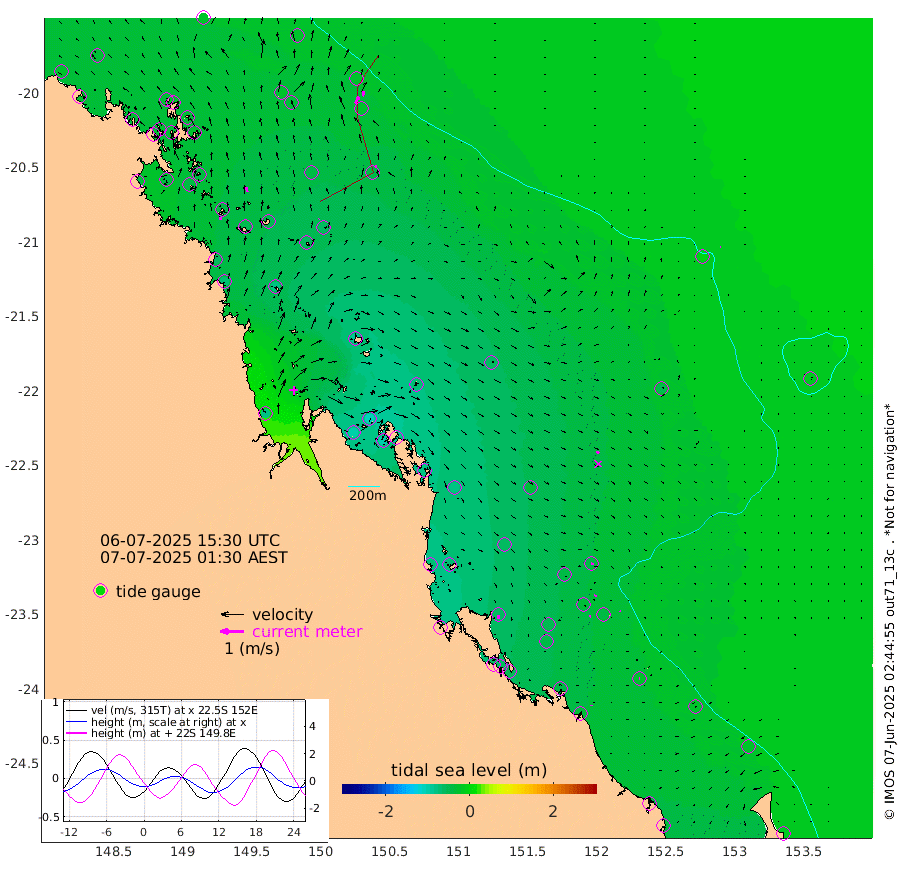 10cm/s 10T +10cm/s rms + 2cm/s 5T. Brampton I 18m 19cm/s -13T +9cm/s rms + 6cm/s 66T. Wigton I 38m 2cm/s 40T +7cm/s rms + 8cm/s 141T. Tern I 47m 23cm/s 13T +7cm/s rms + 12cm/s 54T. N Bugatti Rf 64m 33cm/s 29T +3cm/s rms + 13cm/s 178T. W Bugatti Rf 70m 6cm/s -35T +3cm/s rms + 3cm/s -130T. Creal Rf 69m 10cm/s 101T +7cm/s rms + 4cm/s 2T. North Rf 62m 13cm/s 180T +9cm/s rms + 2cm/s -56T. Cape Capricorn 26m 3cm/s 90T +5cm/s rms + 3cm/s 166T. L Musgrave I 42m 3cm/s -147T +9cm/s rms + 1cm/s -142T. Round Hill Hd 26m 2cm/s 82T +41cm/s rms + 48cm/s 116T. GBRELR 305m 13cm/s 124T +7cm/s rms + 6cm/s 123T. GBRCCH 92m 6cm/s 16T +8cm/s rms + 3cm/s -33T. GBRHIN 45m 4cm/s -87T +4cm/s rms + 2cm/s 41T. GBRHIS 46m 6cm/s -48T +16cm/s rms + 4cm/s -22T. GBROTE 59m -59cm Bell Cay -30cm Holbourne I -64cm Tern I -27cm Bugatti Rf -41cm Creal Rf -21cm White Tip I -40cm North Rf -58cm Rundle I -24cm L Musgrave I -10cm Saumarez Reef -26cm Kennedy Reef -21cm Unnamed Reef No. 2 -24cm Abbot Point -26cm Bowen -26cm Tideway Reef -31cm Hayman Island -37cm Square Reef -35cm Double Bay -22cm Molle Island -31cm Cid Harbour -28cm Hook Island -28cm Border Island -25cm Haslewood Island -34cm Shute Harbour -42cm Thomas Island -45cm Credlin Reef -39cm East Repulse Island -42cm Blacksmith Island -44cm Laguna Quays -43cm Carlisle Island (Off) -50cm St. Bees Island -52cm Scawfell Island -58cm Penrith Island -62cm Mackay Outer Harbour -70cm Hay Point -80cm Prudhoe Island -89cm Middle Island (Percy Isles) -54cm Gannet Cay -8cm Elusive Reef -80cm Mcewin Islet -106cm Mumford Island -98cm Osborn Island -97cm Marquis Island -87cm Reef Point -69cm High Peak Island -80cm Port Clinton -81cm Peaked Island -37cm Karamea Bank -59cm Johnson Patch - NW -73cm Rosslyn Bay -74cm Middle Island (Keppel Isles) -81cm Port Alma -34cm Heron Island -47cm One Tree Islet -49cm Polmaise Reef -39cm Tryon Island -40cm Rock Cod Shoal -52cm Gatcombe Head -61cm Gladstone -58cm South Trees (Storm Surge) -43cm Clews Point -33cm Round Hill Head -19cm Lady Elliot Island -19cm Breaksea Spit -32cm Bundaberg (Burnett Heads) -32cm Elliot Heads -15cm Waddy Point (Fraser Island)