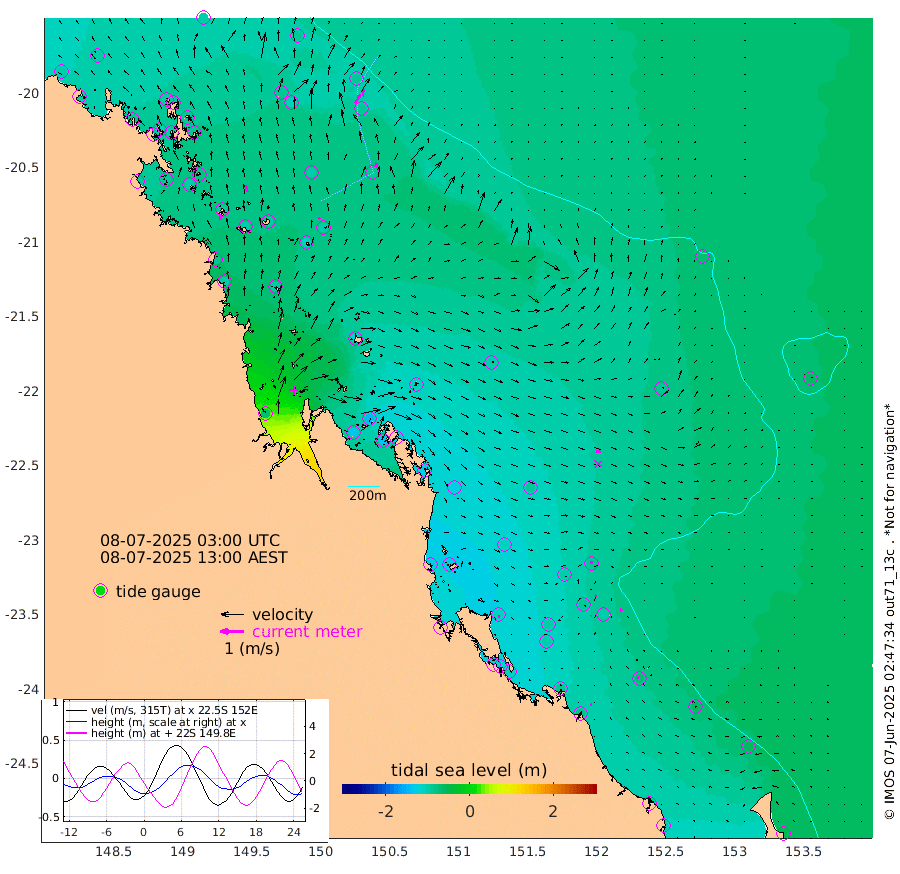21cm/s -3T +10cm/s rms + 2cm/s 5T. Brampton I 18m 27cm/s -13T +9cm/s rms + 6cm/s 66T. Wigton I 38m 9cm/s 35T +7cm/s rms + 8cm/s 141T. Tern I 47m 30cm/s 3T +7cm/s rms + 12cm/s 54T. N Bugatti Rf 64m 45cm/s 31T +3cm/s rms + 13cm/s 178T. W Bugatti Rf 70m 18cm/s 7T +3cm/s rms + 3cm/s -130T. Creal Rf 69m 8cm/s 10T +7cm/s rms + 4cm/s 2T. North Rf 62m 9cm/s 160T +9cm/s rms + 2cm/s -56T. Cape Capricorn 26m 8cm/s -48T +5cm/s rms + 3cm/s 166T. L Musgrave I 42m 7cm/s -48T +9cm/s rms + 1cm/s -142T. Round Hill Hd 26m 2cm/s 17T +41cm/s rms + 48cm/s 116T. GBRELR 305m 18cm/s 98T +7cm/s rms + 6cm/s 123T. GBRCCH 92m 7cm/s 49T +8cm/s rms + 3cm/s -33T. GBRHIN 45m 4cm/s 20T +4cm/s rms + 2cm/s 41T. GBRHIS 46m 13cm/s 15T +16cm/s rms + 4cm/s -22T. GBROTE 59m -101cm Bell Cay -98cm Holbourne I -103cm Tern I -88cm Bugatti Rf -89cm Creal Rf -87cm White Tip I -91cm North Rf -112cm Rundle I -69cm L Musgrave I -61cm Saumarez Reef -101cm Kennedy Reef -91cm Unnamed Reef No. 2 -98cm Abbot Point -97cm Bowen -87cm Tideway Reef -99cm Hayman Island -103cm Square Reef -93cm Double Bay -109cm Molle Island -97cm Cid Harbour -92cm Hook Island -89cm Border Island -84cm Haslewood Island -92cm Shute Harbour -84cm Thomas Island -98cm Credlin Reef -90cm East Repulse Island -95cm Blacksmith Island -85cm Laguna Quays -95cm Carlisle Island (Off) -101cm St. Bees Island -99cm Scawfell Island -107cm Penrith Island -93cm Mackay Outer Harbour -97cm Hay Point -95cm Prudhoe Island -121cm Middle Island (Percy Isles) -92cm Gannet Cay -66cm Elusive Reef -71cm Mcewin Islet -149cm Mumford Island -138cm Osborn Island -137cm Marquis Island -129cm Reef Point -109cm High Peak Island -123cm Port Clinton -125cm Peaked Island -88cm Karamea Bank -112cm Johnson Patch - NW -127cm Rosslyn Bay -127cm Middle Island (Keppel Isles) -138cm Port Alma -90cm Heron Island -98cm One Tree Islet -98cm Polmaise Reef -98cm Tryon Island -96cm Rock Cod Shoal -104cm Gatcombe Head -116cm Gladstone -113cm South Trees (Storm Surge) -93cm Clews Point -83cm Round Hill Head -63cm Lady Elliot Island -64cm Breaksea Spit -89cm Bundaberg (Burnett Heads) -95cm Elliot Heads -47cm Waddy Point (Fraser Island)