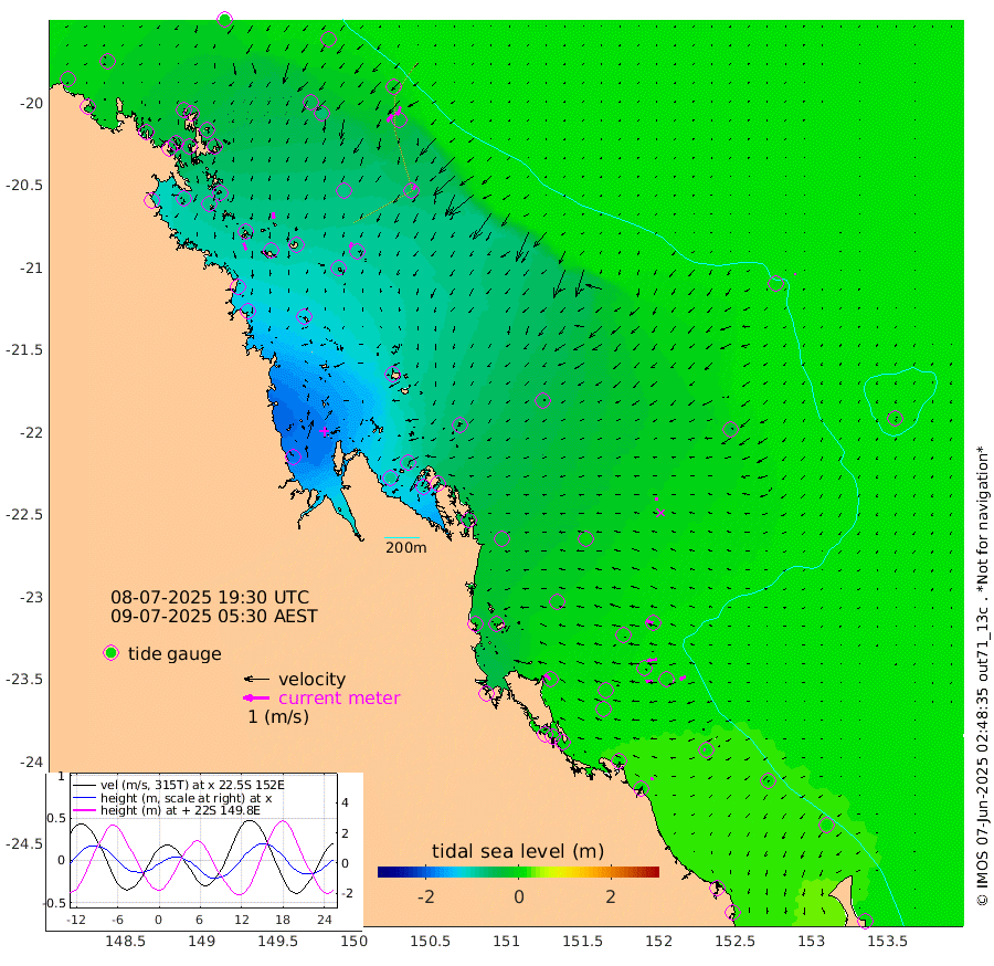 29cm/s 157T +10cm/s rms + 2cm/s 5T. Brampton I 18m 26cm/s 174T +9cm/s rms + 6cm/s 66T. Wigton I 38m 20cm/s -158T +7cm/s rms + 8cm/s 141T. Tern I 47m 35cm/s -156T +7cm/s rms + 12cm/s 54T. N Bugatti Rf 64m 32cm/s -144T +3cm/s rms + 13cm/s 178T. W Bugatti Rf 70m 20cm/s -156T +3cm/s rms + 3cm/s -130T. Creal Rf 69m 26cm/s -72T +7cm/s rms + 4cm/s 2T. North Rf 62m 26cm/s -45T +9cm/s rms + 2cm/s -56T. Cape Capricorn 26m 7cm/s -88T +5cm/s rms + 3cm/s 166T. L Musgrave I 42m 11cm/s -76T +9cm/s rms + 1cm/s -142T. Round Hill Hd 26m 4cm/s -168T +41cm/s rms + 48cm/s 116T. GBRELR 305m 11cm/s -90T +7cm/s rms + 6cm/s 123T. GBRCCH 92m 39cm/s -97T +8cm/s rms + 3cm/s -33T. GBRHIN 45m 25cm/s -94T +4cm/s rms + 2cm/s 41T. GBRHIS 46m 24cm/s -119T +16cm/s rms + 4cm/s -22T. GBROTE 59m -46cm Bell Cay -25cm Holbourne I -90cm Tern I -33cm Bugatti Rf -58cm Creal Rf -17cm White Tip I 3cm North Rf 6cm Rundle I 11cm L Musgrave I 9cm Saumarez Reef -7cm Kennedy Reef -4cm Unnamed Reef No. 2 -17cm Abbot Point -26cm Bowen -50cm Tideway Reef -36cm Hayman Island -68cm Square Reef -46cm Double Bay -46cm Molle Island -48cm Cid Harbour -44cm Hook Island -49cm Border Island -51cm Haslewood Island -55cm Shute Harbour -82cm Thomas Island -76cm Credlin Reef -82cm East Repulse Island -80cm Blacksmith Island -98cm Laguna Quays -80cm Carlisle Island (Off) -94cm St. Bees Island -81cm Scawfell Island -88cm Penrith Island -113cm Mackay Outer Harbour -120cm Hay Point -128cm Prudhoe Island -99cm Middle Island (Percy Isles) -36cm Gannet Cay 7cm Elusive Reef -182cm Mcewin Islet -82cm Mumford Island -92cm Osborn Island -97cm Marquis Island -81cm Reef Point -60cm High Peak Island -40cm Port Clinton -32cm Peaked Island 9cm Karamea Bank -12cm Johnson Patch - NW -12cm Rosslyn Bay -11cm Middle Island (Keppel Isles) -17cm Port Alma 10cm Heron Island 6cm One Tree Islet 7cm Polmaise Reef 0cm Tryon Island 14cm Rock Cod Shoal 4cm Gatcombe Head -2cm Gladstone 5cm South Trees (Storm Surge) 17cm Clews Point 15cm Round Hill Head 11cm Lady Elliot Island 10cm Breaksea Spit 20cm Bundaberg (Burnett Heads) 25cm Elliot Heads 3cm Waddy Point (Fraser Island)