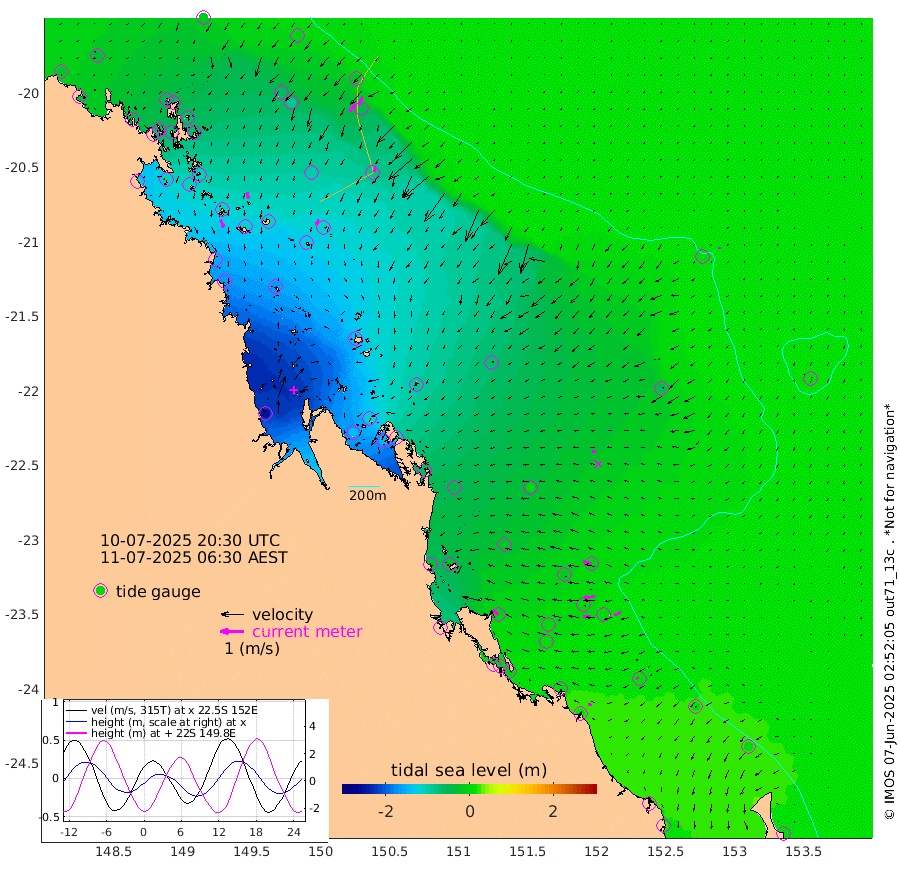 35cm/s 156T +10cm/s rms + 2cm/s 5T. Brampton I 18m 29cm/s 173T +9cm/s rms + 6cm/s 66T. Wigton I 38m 25cm/s -157T +7cm/s rms + 8cm/s 141T. Tern I 47m 41cm/s -155T +7cm/s rms + 12cm/s 54T. N Bugatti Rf 64m 39cm/s -145T +3cm/s rms + 13cm/s 178T. W Bugatti Rf 70m 22cm/s -154T +3cm/s rms + 3cm/s -130T. Creal Rf 69m 35cm/s -72T +7cm/s rms + 4cm/s 2T. North Rf 62m 32cm/s -44T +9cm/s rms + 2cm/s -56T. Cape Capricorn 26m 12cm/s -87T +5cm/s rms + 3cm/s 166T. L Musgrave I 42m 14cm/s -78T +9cm/s rms + 1cm/s -142T. Round Hill Hd 26m 5cm/s -166T +41cm/s rms + 48cm/s 116T. GBRELR 305m 14cm/s -88T +7cm/s rms + 6cm/s 123T. GBRCCH 92m 49cm/s -97T +8cm/s rms + 3cm/s -33T. GBRHIN 45m 31cm/s -94T +4cm/s rms + 2cm/s 41T. GBRHIS 46m 30cm/s -119T +16cm/s rms + 4cm/s -22T. GBROTE 59m -66cm Bell Cay -32cm Holbourne I -121cm Tern I -47cm Bugatti Rf -79cm Creal Rf -25cm White Tip I -3cm North Rf -2cm Rundle I 10cm L Musgrave I 13cm Saumarez Reef -15cm Kennedy Reef -6cm Unnamed Reef No. 2 -24cm Abbot Point -35cm Bowen -64cm Tideway Reef -51cm Hayman Island -89cm Square Reef -49cm Double Bay -70cm Molle Island -70cm Cid Harbour -56cm Hook Island -69cm Border Island -71cm Haslewood Island -74cm Shute Harbour -108cm Thomas Island -102cm Credlin Reef -109cm East Repulse Island -111cm Blacksmith Island -130cm Laguna Quays -108cm Carlisle Island (Off) -117cm St. Bees Island -108cm Scawfell Island -126cm Penrith Island -152cm Mackay Outer Harbour -161cm Hay Point -162cm Prudhoe Island -138cm Middle Island (Percy Isles) -57cm Gannet Cay 6cm Elusive Reef -248cm Mcewin Islet -121cm Mumford Island -142cm Osborn Island -145cm Marquis Island -125cm Reef Point -88cm High Peak Island -60cm Port Clinton -43cm Peaked Island 7cm Karamea Bank -26cm Johnson Patch - NW -26cm Rosslyn Bay -23cm Middle Island (Keppel Isles) -37cm Port Alma 5cm Heron Island 3cm One Tree Islet 2cm Polmaise Reef -10cm Tryon Island 11cm Rock Cod Shoal -7cm Gatcombe Head -16cm Gladstone -6cm South Trees (Storm Surge) 13cm Clews Point 11cm Round Hill Head 12cm Lady Elliot Island 9cm Breaksea Spit 16cm Bundaberg (Burnett Heads) 21cm Elliot Heads 3cm Waddy Point (Fraser Island)
