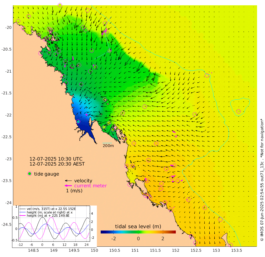 39cm/s 179T +10cm/s rms + 2cm/s 5T. Brampton I 18m 51cm/s 173T +9cm/s rms + 6cm/s 66T. Wigton I 38m 25cm/s -149T +7cm/s rms + 8cm/s 141T. Tern I 47m 64cm/s -162T +7cm/s rms + 12cm/s 54T. N Bugatti Rf 64m 79cm/s -149T +3cm/s rms + 13cm/s 178T. W Bugatti Rf 70m 30cm/s -164T +3cm/s rms + 3cm/s -130T. Creal Rf 69m 55cm/s -80T +7cm/s rms + 4cm/s 2T. North Rf 62m 49cm/s -32T +9cm/s rms + 2cm/s -56T. Cape Capricorn 26m 16cm/s -120T +5cm/s rms + 3cm/s 166T. L Musgrave I 42m 11cm/s -74T +9cm/s rms + 1cm/s -142T. Round Hill Hd 26m 7cm/s -110T +41cm/s rms + 48cm/s 116T. GBRELR 305m 46cm/s -68T +7cm/s rms + 6cm/s 123T. GBRCCH 92m 55cm/s -111T +8cm/s rms + 3cm/s -33T. GBRHIN 45m 32cm/s -95T +4cm/s rms + 2cm/s 41T. GBRHIS 46m 31cm/s -122T +16cm/s rms + 4cm/s -22T. GBROTE 59m 71cm Bell Cay 55cm Holbourne I 20cm Tern I 48cm Bugatti Rf 30cm Creal Rf 63cm White Tip I 123cm North Rf 145cm Rundle I 110cm L Musgrave I 88cm Saumarez Reef 65cm Kennedy Reef 83cm Unnamed Reef No. 2 60cm Abbot Point 52cm Bowen 30cm Tideway Reef 49cm Hayman Island 26cm Square Reef 40cm Double Bay 32cm Molle Island 32cm Cid Harbour 34cm Hook Island 22cm Border Island 20cm Haslewood Island 26cm Shute Harbour 5cm Thomas Island 26cm Credlin Reef 8cm East Repulse Island 1cm Blacksmith Island -20cm Laguna Quays 10cm Carlisle Island (Off) -5cm St. Bees Island 2cm Scawfell Island 14cm Penrith Island -14cm Mackay Outer Harbour -12cm Hay Point -8cm Prudhoe Island 34cm Middle Island (Percy Isles) 67cm Gannet Cay 87cm Elusive Reef -106cm Mcewin Islet 62cm Mumford Island 41cm Osborn Island 39cm Marquis Island 50cm Reef Point 64cm High Peak Island 106cm Port Clinton 126cm Peaked Island 133cm Karamea Bank 127cm Johnson Patch - NW 142cm Rosslyn Bay 150cm Middle Island (Keppel Isles) 140cm Port Alma 127cm Heron Island 138cm One Tree Islet 134cm Polmaise Reef 131cm Tryon Island 145cm Rock Cod Shoal 129cm Gatcombe Head 132cm Gladstone 139cm South Trees (Storm Surge) 136cm Clews Point 125cm Round Hill Head 109cm Lady Elliot Island 109cm Breaksea Spit 125cm Bundaberg (Burnett Heads) 131cm Elliot Heads 90cm Waddy Point (Fraser Island)
