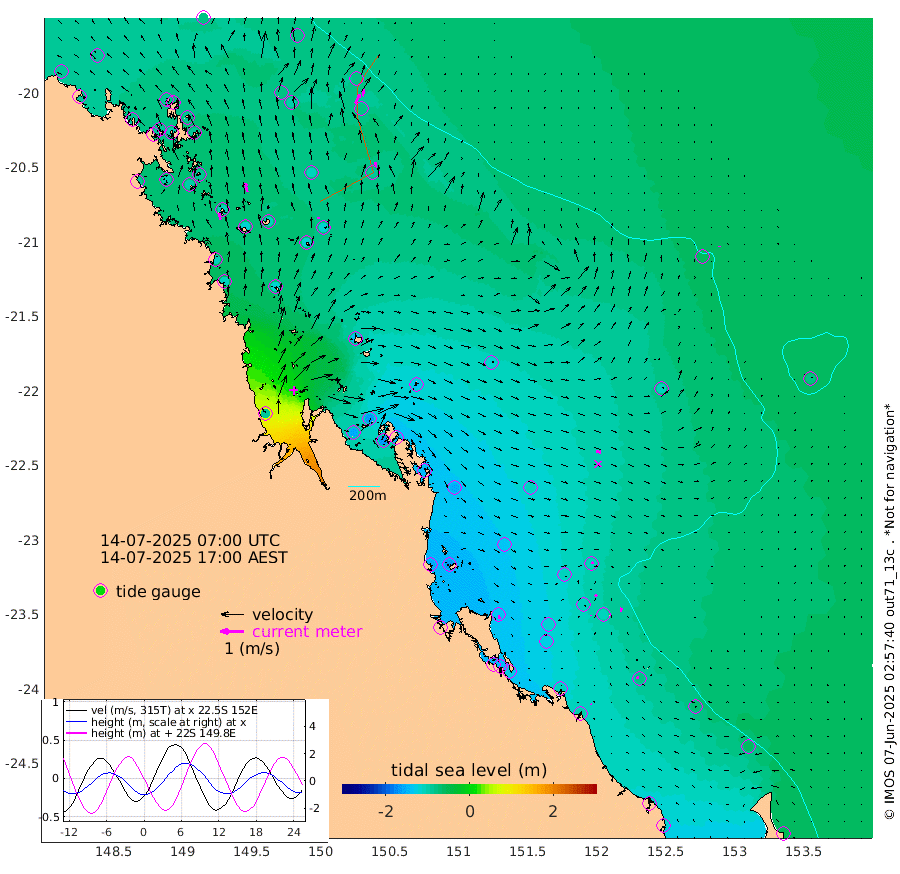 29cm/s -13T +10cm/s rms + 2cm/s 5T. Brampton I 18m 38cm/s -13T +9cm/s rms + 6cm/s 66T. Wigton I 38m 8cm/s -2T +7cm/s rms + 8cm/s 141T. Tern I 47m 33cm/s 7T +7cm/s rms + 12cm/s 54T. N Bugatti Rf 64m 45cm/s 30T +3cm/s rms + 13cm/s 178T. W Bugatti Rf 70m 21cm/s -10T +3cm/s rms + 3cm/s -130T. Creal Rf 69m 9cm/s 53T +7cm/s rms + 4cm/s 2T. North Rf 62m 15cm/s 159T +9cm/s rms + 2cm/s -56T. Cape Capricorn 26m 11cm/s -63T +5cm/s rms + 3cm/s 166T. L Musgrave I 42m 7cm/s -43T +9cm/s rms + 1cm/s -142T. Round Hill Hd 26m 4cm/s -11T +41cm/s rms + 48cm/s 116T. GBRELR 305m 21cm/s 100T +7cm/s rms + 6cm/s 123T. GBRCCH 92m 10cm/s 44T +8cm/s rms + 3cm/s -33T. GBRHIN 45m 3cm/s -4T +4cm/s rms + 2cm/s 41T. GBRHIS 46m 17cm/s 8T +16cm/s rms + 4cm/s -22T. GBROTE 59m -117cm Bell Cay -85cm Holbourne I -114cm Tern I -84cm Bugatti Rf -93cm Creal Rf -79cm White Tip I -104cm North Rf -133cm Rundle I -77cm L Musgrave I -79cm Saumarez Reef -80cm Kennedy Reef -83cm Unnamed Reef No. 2 -88cm Abbot Point -88cm Bowen -84cm Tideway Reef -91cm Hayman Island -103cm Square Reef -88cm Double Bay -86cm Molle Island -96cm Cid Harbour -82cm Hook Island -86cm Border Island -90cm Haslewood Island -89cm Shute Harbour -86cm Thomas Island -111cm Credlin Reef -100cm East Repulse Island -98cm Blacksmith Island -86cm Laguna Quays -110cm Carlisle Island (Off) -115cm St. Bees Island -106cm Scawfell Island -120cm Penrith Island -104cm Mackay Outer Harbour -112cm Hay Point -113cm Prudhoe Island -138cm Middle Island (Percy Isles) -110cm Gannet Cay -62cm Elusive Reef -89cm Mcewin Islet -160cm Mumford Island -158cm Osborn Island -169cm Marquis Island -156cm Reef Point -139cm High Peak Island -149cm Port Clinton -155cm Peaked Island -110cm Karamea Bank -133cm Johnson Patch - NW -158cm Rosslyn Bay -162cm Middle Island (Keppel Isles) -177cm Port Alma -107cm Heron Island -107cm One Tree Islet -116cm Polmaise Reef -111cm Tryon Island -124cm Rock Cod Shoal -128cm Gatcombe Head -148cm Gladstone -141cm South Trees (Storm Surge) -105cm Clews Point -100cm Round Hill Head -75cm Lady Elliot Island -64cm Breaksea Spit -108cm Bundaberg (Burnett Heads) -118cm Elliot Heads -50cm Waddy Point (Fraser Island)
