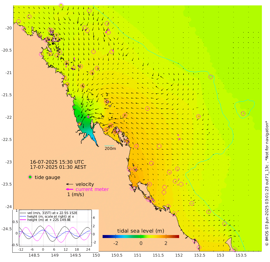 17cm/s -176T +10cm/s rms + 2cm/s 5T. Brampton I 18m 26cm/s 169T +9cm/s rms + 6cm/s 66T. Wigton I 38m 1cm/s 94T +7cm/s rms + 8cm/s 141T. Tern I 47m 23cm/s -176T +7cm/s rms + 12cm/s 54T. N Bugatti Rf 64m 29cm/s -154T +3cm/s rms + 13cm/s 178T. W Bugatti Rf 70m 15cm/s 168T +3cm/s rms + 3cm/s -130T. Creal Rf 69m 7cm/s -162T +7cm/s rms + 4cm/s 2T. North Rf 62m 9cm/s -11T +9cm/s rms + 2cm/s -56T. Cape Capricorn 26m 7cm/s 123T +5cm/s rms + 3cm/s 166T. L Musgrave I 42m 7cm/s 124T +9cm/s rms + 1cm/s -142T. Round Hill Hd 26m 0cm/s 156T +41cm/s rms + 48cm/s 116T. GBRELR 305m 17cm/s -70T +7cm/s rms + 6cm/s 123T. GBRCCH 92m 9cm/s 138T +8cm/s rms + 3cm/s -33T. GBRHIN 45m 7cm/s 102T +4cm/s rms + 2cm/s 41T. GBRHIS 46m 9cm/s 137T +16cm/s rms + 4cm/s -22T. GBROTE 59m 120cm Bell Cay 76cm Holbourne I 124cm Tern I 82cm Bugatti Rf 96cm Creal Rf 72cm White Tip I 98cm North Rf 124cm Rundle I 71cm L Musgrave I 57cm Saumarez Reef 68cm Kennedy Reef 71cm Unnamed Reef No. 2 73cm Abbot Point 76cm Bowen 79cm Tideway Reef 87cm Hayman Island 96cm Square Reef 88cm Double Bay 96cm Molle Island 89cm Cid Harbour 84cm Hook Island 77cm Border Island 88cm Haslewood Island 88cm Shute Harbour 94cm Thomas Island 111cm Credlin Reef 107cm East Repulse Island 99cm Blacksmith Island 100cm Laguna Quays 117cm Carlisle Island (Off) 118cm St. Bees Island 106cm Scawfell Island 132cm Penrith Island 124cm Mackay Outer Harbour 134cm Hay Point 132cm Prudhoe Island 161cm Middle Island (Percy Isles) 117cm Gannet Cay 55cm Elusive Reef 148cm Mcewin Islet 164cm Mumford Island 170cm Osborn Island 183cm Marquis Island 164cm Reef Point 144cm High Peak Island 154cm Port Clinton 142cm Peaked Island 100cm Karamea Bank 131cm Johnson Patch - NW 149cm Rosslyn Bay 149cm Middle Island (Keppel Isles) 169cm Port Alma 100cm Heron Island 96cm One Tree Islet 105cm Polmaise Reef 105cm Tryon Island 112cm Rock Cod Shoal 123cm Gatcombe Head 140cm Gladstone 132cm South Trees (Storm Surge) 93cm Clews Point 90cm Round Hill Head 68cm Lady Elliot Island 62cm Breaksea Spit 96cm Bundaberg (Burnett Heads) 101cm Elliot Heads 50cm Waddy Point (Fraser Island)