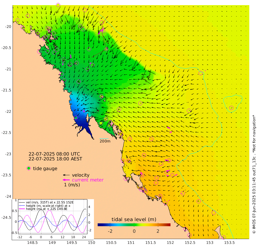38cm/s -173T +10cm/s rms + 2cm/s 5T. Brampton I 18m 49cm/s 174T +9cm/s rms + 6cm/s 66T. Wigton I 38m 26cm/s -140T +7cm/s rms + 8cm/s 141T. Tern I 47m 65cm/s -164T +7cm/s rms + 12cm/s 54T. N Bugatti Rf 64m 86cm/s -147T +3cm/s rms + 13cm/s 178T. W Bugatti Rf 70m 30cm/s -159T +3cm/s rms + 3cm/s -130T. Creal Rf 69m 55cm/s -82T +7cm/s rms + 4cm/s 2T. North Rf 62m 52cm/s -29T +9cm/s rms + 2cm/s -56T. Cape Capricorn 26m 15cm/s -122T +5cm/s rms + 3cm/s 166T. L Musgrave I 42m 10cm/s -70T +9cm/s rms + 1cm/s -142T. Round Hill Hd 26m 8cm/s -93T +41cm/s rms + 48cm/s 116T. GBRELR 305m 50cm/s -66T +7cm/s rms + 6cm/s 123T. GBRCCH 92m 58cm/s -111T +8cm/s rms + 3cm/s -33T. GBRHIN 45m 33cm/s -95T +4cm/s rms + 2cm/s 41T. GBRHIS 46m 32cm/s -121T +16cm/s rms + 4cm/s -22T. GBROTE 59m 78cm Bell Cay 66cm Holbourne I 26cm Tern I 52cm Bugatti Rf 34cm Creal Rf 68cm White Tip I 128cm North Rf 153cm Rundle I 112cm L Musgrave I 80cm Saumarez Reef 76cm Kennedy Reef 88cm Unnamed Reef No. 2 63cm Abbot Point 55cm Bowen 33cm Tideway Reef 53cm Hayman Island 24cm Square Reef 59cm Double Bay 35cm Molle Island 23cm Cid Harbour 48cm Hook Island 21cm Border Island 13cm Haslewood Island 29cm Shute Harbour 7cm Thomas Island 25cm Credlin Reef 5cm East Repulse Island -7cm Blacksmith Island -16cm Laguna Quays 11cm Carlisle Island (Off) -2cm St. Bees Island -3cm Scawfell Island 16cm Penrith Island -5cm Mackay Outer Harbour -3cm Hay Point 10cm Prudhoe Island 58cm Middle Island (Percy Isles) 77cm Gannet Cay 92cm Elusive Reef -73cm Mcewin Islet 77cm Mumford Island 47cm Osborn Island 46cm Marquis Island 51cm Reef Point 70cm High Peak Island 128cm Port Clinton 136cm Peaked Island 135cm Karamea Bank 139cm Johnson Patch - NW 151cm Rosslyn Bay 156cm Middle Island (Keppel Isles) 149cm Port Alma 128cm Heron Island 150cm One Tree Islet 141cm Polmaise Reef 130cm Tryon Island 145cm Rock Cod Shoal 135cm Gatcombe Head 140cm Gladstone 145cm South Trees (Storm Surge) 142cm Clews Point 127cm Round Hill Head 111cm Lady Elliot Island 115cm Breaksea Spit 128cm Bundaberg (Burnett Heads) 127cm Elliot Heads 92cm Waddy Point (Fraser Island)