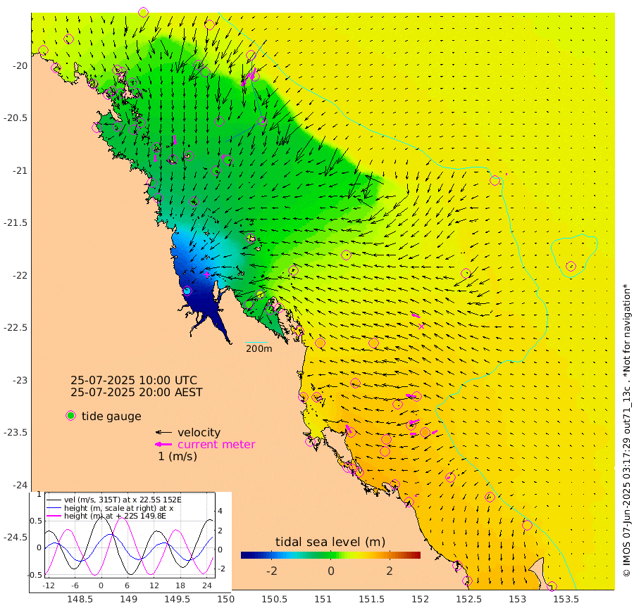 44cm/s 178T +10cm/s rms + 2cm/s 5T. Brampton I 18m 57cm/s 174T +9cm/s rms + 6cm/s 66T. Wigton I 38m 30cm/s -146T +7cm/s rms + 8cm/s 141T. Tern I 47m 75cm/s -162T +7cm/s rms + 12cm/s 54T. N Bugatti Rf 64m 95cm/s -148T +3cm/s rms + 13cm/s 178T. W Bugatti Rf 70m 34cm/s -160T +3cm/s rms + 3cm/s -130T. Creal Rf 69m 63cm/s -82T +7cm/s rms + 4cm/s 2T. North Rf 62m 57cm/s -31T +9cm/s rms + 2cm/s -56T. Cape Capricorn 26m 19cm/s -115T +5cm/s rms + 3cm/s 166T. L Musgrave I 42m 13cm/s -75T +9cm/s rms + 1cm/s -142T. Round Hill Hd 26m 8cm/s -104T +41cm/s rms + 48cm/s 116T. GBRELR 305m 51cm/s -68T +7cm/s rms + 6cm/s 123T. GBRCCH 92m 65cm/s -111T +8cm/s rms + 3cm/s -33T. GBRHIN 45m 38cm/s -94T +4cm/s rms + 2cm/s 41T. GBRHIS 46m 36cm/s -119T +16cm/s rms + 4cm/s -22T. GBROTE 59m 72cm Bell Cay 64cm Holbourne I 11cm Tern I 48cm Bugatti Rf 27cm Creal Rf 68cm White Tip I 132cm North Rf 158cm Rundle I 119cm L Musgrave I 92cm Saumarez Reef 74cm Kennedy Reef 87cm Unnamed Reef No. 2 59cm Abbot Point 49cm Bowen 25cm Tideway Reef 47cm Hayman Island 22cm Square Reef 49cm Double Bay 27cm Molle Island 14cm Cid Harbour 37cm Hook Island 10cm Border Island 2cm Haslewood Island 17cm Shute Harbour -9cm Thomas Island 9cm Credlin Reef -22cm East Repulse Island -21cm Blacksmith Island -37cm Laguna Quays -14cm Carlisle Island (Off) -25cm St. Bees Island -14cm Scawfell Island 2cm Penrith Island -30cm Mackay Outer Harbour -29cm Hay Point -9cm Prudhoe Island 43cm Middle Island (Percy Isles) 70cm Gannet Cay 92cm Elusive Reef -133cm Mcewin Islet 72cm Mumford Island 24cm Osborn Island 19cm Marquis Island 28cm Reef Point 59cm High Peak Island 121cm Port Clinton 141cm Peaked Island 138cm Karamea Bank 146cm Johnson Patch - NW 151cm Rosslyn Bay 158cm Middle Island (Keppel Isles) 147cm Port Alma 136cm Heron Island 161cm One Tree Islet 151cm Polmaise Reef 134cm Tryon Island 146cm Rock Cod Shoal 139cm Gatcombe Head 140cm Gladstone 148cm South Trees (Storm Surge) 152cm Clews Point 135cm Round Hill Head 118cm Lady Elliot Island 120cm Breaksea Spit 136cm Bundaberg (Burnett Heads) 138cm Elliot Heads 98cm Waddy Point (Fraser Island)