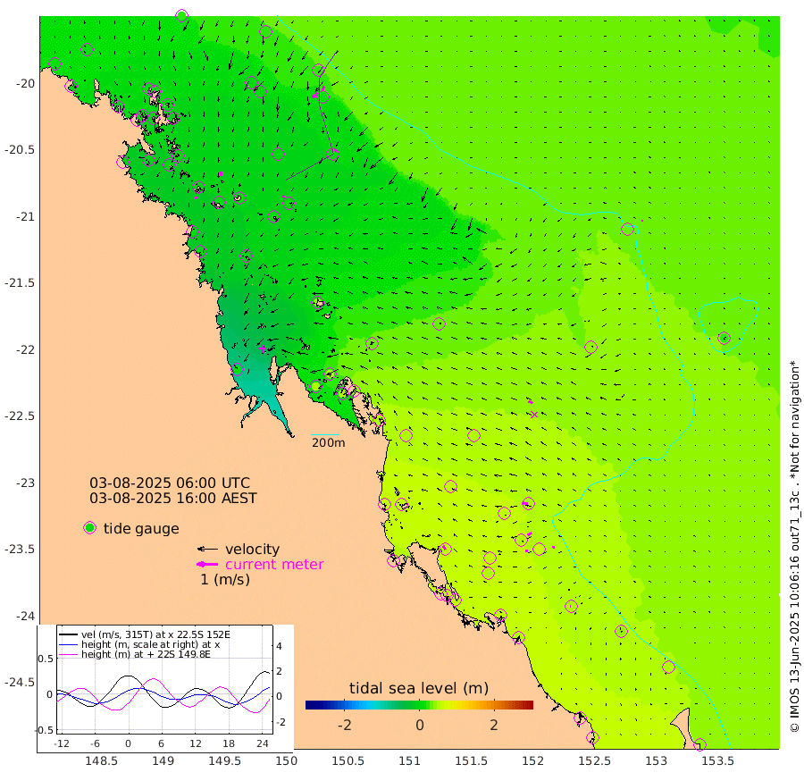 13cm/s -147T +10cm/s rms + 2cm/s 5T. Brampton I 18m 18cm/s -180T +9cm/s rms + 6cm/s 66T. Wigton I 38m 11cm/s -122T +7cm/s rms + 8cm/s 141T. Tern I 47m 22cm/s -160T +7cm/s rms + 12cm/s 54T. N Bugatti Rf 64m 31cm/s -139T +3cm/s rms + 13cm/s 178T. W Bugatti Rf 70m 10cm/s -153T +3cm/s rms + 3cm/s -130T. Creal Rf 69m 24cm/s -82T +7cm/s rms + 4cm/s 2T. North Rf 62m 22cm/s -26T +9cm/s rms + 2cm/s -56T. Cape Capricorn 26m 4cm/s -121T +5cm/s rms + 3cm/s 166T. L Musgrave I 42m 3cm/s -49T +9cm/s rms + 1cm/s -142T. Round Hill Hd 26m 5cm/s -62T +41cm/s rms + 48cm/s 116T. GBRELR 305m 21cm/s -62T +7cm/s rms + 6cm/s 123T. GBRCCH 92m 21cm/s -114T +8cm/s rms + 3cm/s -33T. GBRHIN 45m 11cm/s -95T +4cm/s rms + 2cm/s 41T. GBRHIS 46m 10cm/s -116T +16cm/s rms + 4cm/s -22T. GBROTE 59m 36cm Bell Cay 14cm Holbourne I 12cm Tern I 16cm Bugatti Rf 13cm Creal Rf 21cm White Tip I 54cm North Rf 65cm Rundle I 48cm L Musgrave I 19cm Saumarez Reef 25cm Kennedy Reef 23cm Unnamed Reef No. 2 10cm Abbot Point 8cm Bowen 2cm Tideway Reef 15cm Hayman Island 0cm Square Reef 8cm Double Bay 8cm Molle Island 7cm Cid Harbour 10cm Hook Island 7cm Border Island -2cm Haslewood Island 5cm Shute Harbour 1cm Thomas Island 7cm Credlin Reef -2cm East Repulse Island 8cm Blacksmith Island -4cm Laguna Quays 2cm Carlisle Island (Off) 7cm St. Bees Island 11cm Scawfell Island 17cm Penrith Island 7cm Mackay Outer Harbour 9cm Hay Point 4cm Prudhoe Island 39cm Middle Island (Percy Isles) 41cm Gannet Cay 32cm Elusive Reef 17cm Mcewin Islet 54cm Mumford Island 51cm Osborn Island 51cm Marquis Island 44cm Reef Point 36cm High Peak Island 56cm Port Clinton 50cm Peaked Island 50cm Karamea Bank 65cm Johnson Patch - NW 66cm Rosslyn Bay 62cm Middle Island (Keppel Isles) 68cm Port Alma 54cm Heron Island 66cm One Tree Islet 61cm Polmaise Reef 59cm Tryon Island 55cm Rock Cod Shoal 60cm Gatcombe Head 64cm Gladstone 64cm South Trees (Storm Surge) 62cm Clews Point 54cm Round Hill Head 45cm Lady Elliot Island 55cm Breaksea Spit 55cm Bundaberg (Burnett Heads) 58cm Elliot Heads 42cm Waddy Point (Fraser Island)