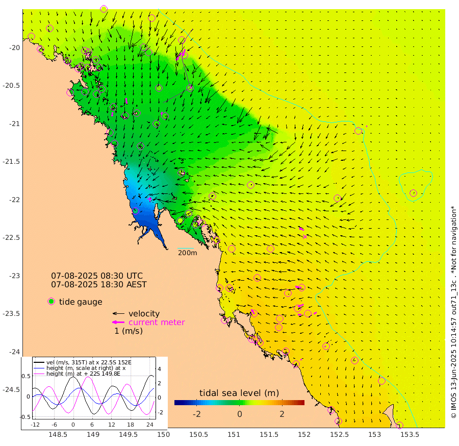 34cm/s -176T +10cm/s rms + 2cm/s 5T. Brampton I 18m 45cm/s 174T +9cm/s rms + 6cm/s 66T. Wigton I 38m 23cm/s -145T +7cm/s rms + 8cm/s 141T. Tern I 47m 58cm/s -162T +7cm/s rms + 12cm/s 54T. N Bugatti Rf 64m 76cm/s -147T +3cm/s rms + 13cm/s 178T. W Bugatti Rf 70m 28cm/s -163T +3cm/s rms + 3cm/s -130T. Creal Rf 69m 51cm/s -81T +7cm/s rms + 4cm/s 2T. North Rf 62m 45cm/s -31T +9cm/s rms + 2cm/s -56T. Cape Capricorn 26m 12cm/s -122T +5cm/s rms + 3cm/s 166T. L Musgrave I 42m 9cm/s -65T +9cm/s rms + 1cm/s -142T. Round Hill Hd 26m 7cm/s -98T +41cm/s rms + 48cm/s 116T. GBRELR 305m 42cm/s -67T +7cm/s rms + 6cm/s 123T. GBRCCH 92m 51cm/s -111T +8cm/s rms + 3cm/s -33T. GBRHIN 45m 28cm/s -95T +4cm/s rms + 2cm/s 41T. GBRHIS 46m 27cm/s -120T +16cm/s rms + 4cm/s -22T. GBROTE 59m 69cm Bell Cay 56cm Holbourne I 24cm Tern I 48cm Bugatti Rf 30cm Creal Rf 62cm White Tip I 113cm North Rf 135cm Rundle I 99cm L Musgrave I 72cm Saumarez Reef 68cm Kennedy Reef 80cm Unnamed Reef No. 2 62cm Abbot Point 55cm Bowen 32cm Tideway Reef 54cm Hayman Island 27cm Square Reef 41cm Double Bay 41cm Molle Island 39cm Cid Harbour 36cm Hook Island 31cm Border Island 24cm Haslewood Island 31cm Shute Harbour 11cm Thomas Island 30cm Credlin Reef 17cm East Repulse Island 14cm Blacksmith Island -8cm Laguna Quays 18cm Carlisle Island (Off) 2cm St. Bees Island 14cm Scawfell Island 26cm Penrith Island -2cm Mackay Outer Harbour -1cm Hay Point -5cm Prudhoe Island 39cm Middle Island (Percy Isles) 67cm Gannet Cay 81cm Elusive Reef -71cm Mcewin Islet 73cm Mumford Island 60cm Osborn Island 55cm Marquis Island 64cm Reef Point 64cm High Peak Island 98cm Port Clinton 111cm Peaked Island 118cm Karamea Bank 116cm Johnson Patch - NW 132cm Rosslyn Bay 138cm Middle Island (Keppel Isles) 131cm Port Alma 115cm Heron Island 128cm One Tree Islet 123cm Polmaise Reef 122cm Tryon Island 132cm Rock Cod Shoal 119cm Gatcombe Head 123cm Gladstone 128cm South Trees (Storm Surge) 125cm Clews Point 113cm Round Hill Head 97cm Lady Elliot Island 101cm Breaksea Spit 114cm Bundaberg (Burnett Heads) 120cm Elliot Heads 81cm Waddy Point (Fraser Island)