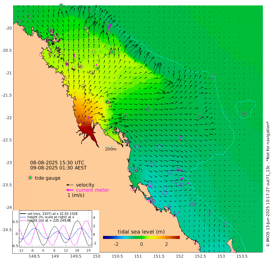47cm/s -9T +10cm/s rms + 2cm/s 5T. Brampton I 18m 59cm/s -7T +9cm/s rms + 6cm/s 66T. Wigton I 38m 28cm/s 25T +7cm/s rms + 8cm/s 141T. Tern I 47m 77cm/s 20T +7cm/s rms + 12cm/s 54T. N Bugatti Rf 64m 85cm/s 30T +3cm/s rms + 13cm/s 178T. W Bugatti Rf 70m 32cm/s 14T +3cm/s rms + 3cm/s -130T. Creal Rf 69m 60cm/s 105T +7cm/s rms + 4cm/s 2T. North Rf 62m 55cm/s 149T +9cm/s rms + 2cm/s -56T. Cape Capricorn 26m 15cm/s 87T +5cm/s rms + 3cm/s 166T. L Musgrave I 42m 17cm/s 122T +9cm/s rms + 1cm/s -142T. Round Hill Hd 26m 6cm/s 46T +41cm/s rms + 48cm/s 116T. GBRELR 305m 40cm/s 114T +7cm/s rms + 6cm/s 123T. GBRCCH 92m 62cm/s 70T +8cm/s rms + 3cm/s -33T. GBRHIN 45m 32cm/s 84T +4cm/s rms + 2cm/s 41T. GBRHIS 46m 29cm/s 52T +16cm/s rms + 4cm/s -22T. GBROTE 59m -30cm Bell Cay -3cm Holbourne I 27cm Tern I 2cm Bugatti Rf 18cm Creal Rf -12cm White Tip I -78cm North Rf -105cm Rundle I -68cm L Musgrave I -42cm Saumarez Reef -23cm Kennedy Reef -31cm Unnamed Reef No. 2 -10cm Abbot Point -2cm Bowen 25cm Tideway Reef 0cm Hayman Island 36cm Square Reef 15cm Double Bay 33cm Molle Island 18cm Cid Harbour 18cm Hook Island 29cm Border Island 30cm Haslewood Island 25cm Shute Harbour 45cm Thomas Island 28cm Credlin Reef 42cm East Repulse Island 46cm Blacksmith Island 69cm Laguna Quays 41cm Carlisle Island (Off) 51cm St. Bees Island 37cm Scawfell Island 30cm Penrith Island 61cm Mackay Outer Harbour 58cm Hay Point 56cm Prudhoe Island 9cm Middle Island (Percy Isles) -36cm Gannet Cay -38cm Elusive Reef 138cm Mcewin Islet -30cm Mumford Island -12cm Osborn Island -10cm Marquis Island -18cm Reef Point -26cm High Peak Island -67cm Port Clinton -85cm Peaked Island -90cm Karamea Bank -83cm Johnson Patch - NW -103cm Rosslyn Bay -109cm Middle Island (Keppel Isles) -103cm Port Alma -83cm Heron Island -92cm One Tree Islet -94cm Polmaise Reef -85cm Tryon Island -101cm Rock Cod Shoal -94cm Gatcombe Head -96cm Gladstone -103cm South Trees (Storm Surge) -100cm Clews Point -86cm Round Hill Head -67cm Lady Elliot Island -66cm Breaksea Spit -88cm Bundaberg (Burnett Heads) -94cm Elliot Heads -51cm Waddy Point (Fraser Island)