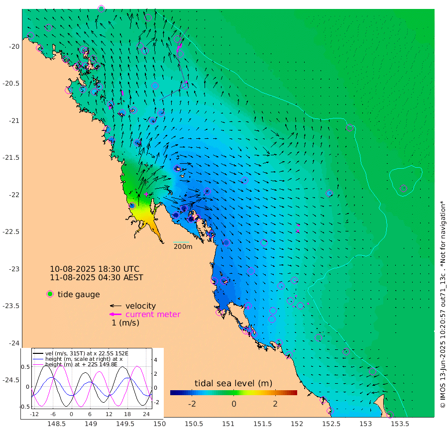 24cm/s 4T +10cm/s rms + 2cm/s 5T. Brampton I 18m 42cm/s -12T +9cm/s rms + 6cm/s 66T. Wigton I 38m 3cm/s -45T +7cm/s rms + 8cm/s 141T. Tern I 47m 40cm/s 7T +7cm/s rms + 12cm/s 54T. N Bugatti Rf 64m 53cm/s 23T +3cm/s rms + 13cm/s 178T. W Bugatti Rf 70m 21cm/s -20T +3cm/s rms + 3cm/s -130T. Creal Rf 69m 9cm/s 70T +7cm/s rms + 4cm/s 2T. North Rf 62m 17cm/s 176T +9cm/s rms + 2cm/s -56T. Cape Capricorn 26m 2cm/s -62T +5cm/s rms + 3cm/s 166T. L Musgrave I 42m 7cm/s -96T +9cm/s rms + 1cm/s -142T. Round Hill Hd 26m 2cm/s 3T +41cm/s rms + 48cm/s 116T. GBRELR 305m 25cm/s 115T +7cm/s rms + 6cm/s 123T. GBRCCH 92m 12cm/s -11T +8cm/s rms + 3cm/s -33T. GBRHIN 45m 10cm/s -75T +4cm/s rms + 2cm/s 41T. GBRHIS 46m 18cm/s -43T +16cm/s rms + 4cm/s -22T. GBROTE 59m -157cm Bell Cay -81cm Holbourne I -166cm Tern I -91cm Bugatti Rf -119cm Creal Rf -76cm White Tip I -117cm North Rf -156cm Rundle I -80cm L Musgrave I -59cm Saumarez Reef -78cm Kennedy Reef -73cm Unnamed Reef No. 2 -81cm Abbot Point -85cm Bowen -90cm Tideway Reef -103cm Hayman Island -119cm Square Reef -89cm Double Bay -93cm Molle Island -113cm Cid Harbour -91cm Hook Island -91cm Border Island -101cm Haslewood Island -106cm Shute Harbour -123cm Thomas Island -143cm Credlin Reef -138cm East Repulse Island -135cm Blacksmith Island -127cm Laguna Quays -144cm Carlisle Island (Off) -163cm St. Bees Island -150cm Scawfell Island -174cm Penrith Island -166cm Mackay Outer Harbour -182cm Hay Point -183cm Prudhoe Island -211cm Middle Island (Percy Isles) -147cm Gannet Cay -49cm Elusive Reef -193cm Mcewin Islet -240cm Mumford Island -245cm Osborn Island -259cm Marquis Island -233cm Reef Point -189cm High Peak Island -197cm Port Clinton -198cm Peaked Island -118cm Karamea Bank -163cm Johnson Patch - NW -194cm Rosslyn Bay -197cm Middle Island (Keppel Isles) -218cm Port Alma -116cm Heron Island -118cm One Tree Islet -131cm Polmaise Reef -133cm Tryon Island -131cm Rock Cod Shoal -151cm Gatcombe Head -174cm Gladstone -164cm South Trees (Storm Surge) -117cm Clews Point -106cm Round Hill Head -75cm Lady Elliot Island -70cm Breaksea Spit -110cm Bundaberg (Burnett Heads) -119cm Elliot Heads -56cm Waddy Point (Fraser Island)