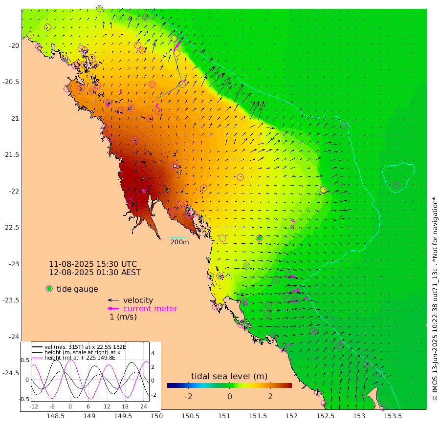 40cm/s -16T +10cm/s rms + 2cm/s 5T. Brampton I 18m 37cm/s -3T +9cm/s rms + 6cm/s 66T. Wigton I 38m 35cm/s 28T +7cm/s rms + 8cm/s 141T. Tern I 47m 63cm/s 27T +7cm/s rms + 12cm/s 54T. N Bugatti Rf 64m 61cm/s 33T +3cm/s rms + 13cm/s 178T. W Bugatti Rf 70m 27cm/s 35T +3cm/s rms + 3cm/s -130T. Creal Rf 69m 70cm/s 108T +7cm/s rms + 4cm/s 2T. North Rf 62m 55cm/s 141T +9cm/s rms + 2cm/s -56T. Cape Capricorn 26m 26cm/s 93T +5cm/s rms + 3cm/s 166T. L Musgrave I 42m 26cm/s 111T +9cm/s rms + 1cm/s -142T. Round Hill Hd 26m 7cm/s 50T +41cm/s rms + 48cm/s 116T. GBRELR 305m 31cm/s 110T +7cm/s rms + 6cm/s 123T. GBRCCH 92m 80cm/s 77T +8cm/s rms + 3cm/s -33T. GBRHIN 45m 50cm/s 89T +4cm/s rms + 2cm/s 41T. GBRHIS 46m 42cm/s 71T +16cm/s rms + 4cm/s -22T. GBROTE 59m 106cm Bell Cay 68cm Holbourne I 190cm Tern I 86cm Bugatti Rf 131cm Creal Rf 52cm White Tip I 4cm North Rf 7cm Rundle I -18cm L Musgrave I -10cm Saumarez Reef 41cm Kennedy Reef 25cm Unnamed Reef No. 2 63cm Abbot Point 78cm Bowen 112cm Tideway Reef 96cm Hayman Island 151cm Square Reef 90cm Double Bay 137cm Molle Island 133cm Cid Harbour 102cm Hook Island 130cm Border Island 138cm Haslewood Island 131cm Shute Harbour 171cm Thomas Island 171cm Credlin Reef 190cm East Repulse Island 190cm Blacksmith Island 211cm Laguna Quays 192cm Carlisle Island (Off) 204cm St. Bees Island 189cm Scawfell Island 205cm Penrith Island 236cm Mackay Outer Harbour 248cm Hay Point 234cm Prudhoe Island 204cm Middle Island (Percy Isles) 94cm Gannet Cay -6cm Elusive Reef 374cm Mcewin Islet 188cm Mumford Island 233cm Osborn Island 243cm Marquis Island 209cm Reef Point 143cm High Peak Island 92cm Port Clinton 61cm Peaked Island -9cm Karamea Bank 35cm Johnson Patch - NW 47cm Rosslyn Bay 40cm Middle Island (Keppel Isles) 71cm Port Alma -4cm Heron Island -16cm One Tree Islet -6cm Polmaise Reef 11cm Tryon Island -7cm Rock Cod Shoal 18cm Gatcombe Head 38cm Gladstone 19cm South Trees (Storm Surge) -24cm Clews Point -15cm Round Hill Head -24cm Lady Elliot Island -27cm Breaksea Spit -15cm Bundaberg (Burnett Heads) -14cm Elliot Heads -20cm Waddy Point (Fraser Island)