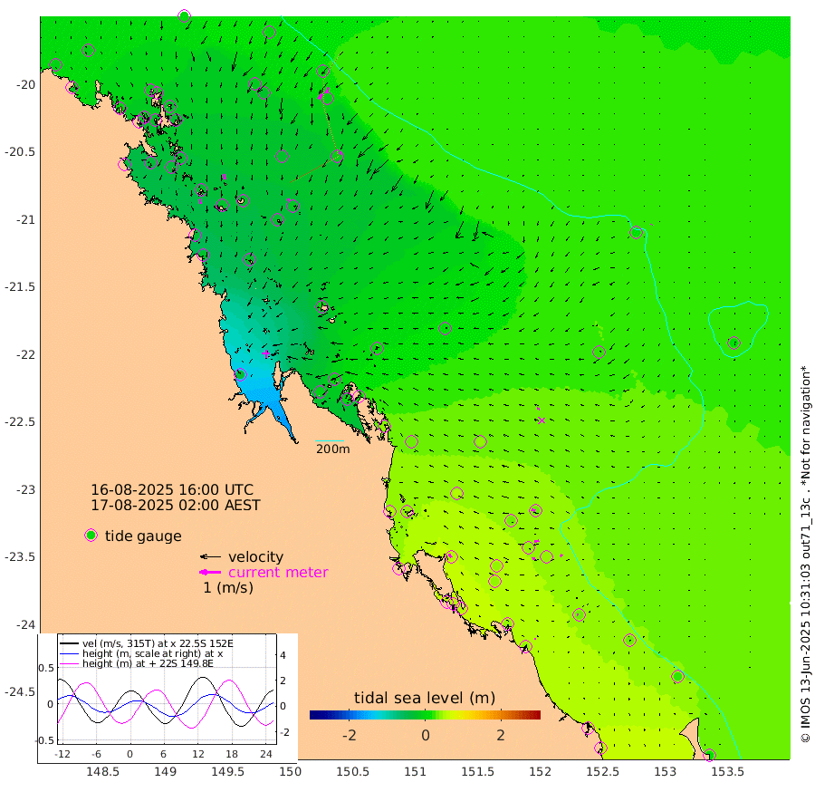 22cm/s 166T +10cm/s rms + 2cm/s 5T. Brampton I 18m 25cm/s 171T +9cm/s rms + 6cm/s 66T. Wigton I 38m 10cm/s -163T +7cm/s rms + 8cm/s 141T. Tern I 47m 29cm/s -159T +7cm/s rms + 12cm/s 54T. N Bugatti Rf 64m 27cm/s -146T +3cm/s rms + 13cm/s 178T. W Bugatti Rf 70m 14cm/s -166T +3cm/s rms + 3cm/s -130T. Creal Rf 69m 18cm/s -73T +7cm/s rms + 4cm/s 2T. North Rf 62m 20cm/s -38T +9cm/s rms + 2cm/s -56T. Cape Capricorn 26m 6cm/s -89T +5cm/s rms + 3cm/s 166T. L Musgrave I 42m 6cm/s -87T +9cm/s rms + 1cm/s -142T. Round Hill Hd 26m 2cm/s -153T +41cm/s rms + 48cm/s 116T. GBRELR 305m 12cm/s -77T +7cm/s rms + 6cm/s 123T. GBRCCH 92m 21cm/s -109T +8cm/s rms + 3cm/s -33T. GBRHIN 45m 12cm/s -96T +4cm/s rms + 2cm/s 41T. GBRHIS 46m 12cm/s -141T +16cm/s rms + 4cm/s -22T. GBROTE 59m 14cm Bell Cay 0cm Holbourne I -14cm Tern I -2cm Bugatti Rf -7cm Creal Rf 2cm White Tip I 36cm North Rf 48cm Rundle I 31cm L Musgrave I 17cm Saumarez Reef 5cm Kennedy Reef 7cm Unnamed Reef No. 2 -7cm Abbot Point -11cm Bowen -19cm Tideway Reef -9cm Hayman Island -26cm Square Reef 2cm Double Bay -14cm Molle Island -22cm Cid Harbour -6cm Hook Island -25cm Border Island -19cm Haslewood Island -19cm Shute Harbour -27cm Thomas Island -23cm Credlin Reef -32cm East Repulse Island -30cm Blacksmith Island -34cm Laguna Quays -23cm Carlisle Island (Off) -23cm St. Bees Island -27cm Scawfell Island -19cm Penrith Island -28cm Mackay Outer Harbour -26cm Hay Point -23cm Prudhoe Island 17cm Middle Island (Percy Isles) 23cm Gannet Cay 14cm Elusive Reef -36cm Mcewin Islet 6cm Mumford Island -5cm Osborn Island 2cm Marquis Island 1cm Reef Point 17cm High Peak Island 43cm Port Clinton 34cm Peaked Island 38cm Karamea Bank 49cm Johnson Patch - NW 48cm Rosslyn Bay 46cm Middle Island (Keppel Isles) 55cm Port Alma 41cm Heron Island 39cm One Tree Islet 45cm Polmaise Reef 32cm Tryon Island 43cm Rock Cod Shoal 49cm Gatcombe Head 53cm Gladstone 53cm South Trees (Storm Surge) 42cm Clews Point 40cm Round Hill Head 30cm Lady Elliot Island 28cm Breaksea Spit 47cm Bundaberg (Burnett Heads) 51cm Elliot Heads 18cm Waddy Point (Fraser Island)
