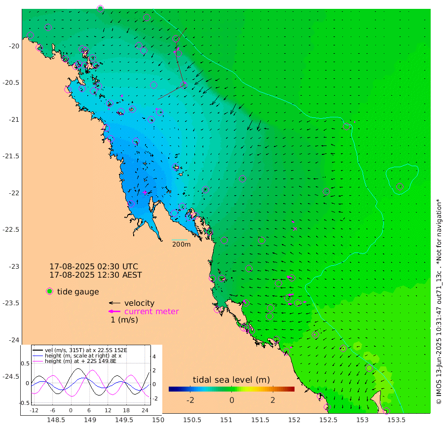 14cm/s 169T +10cm/s rms + 2cm/s 5T. Brampton I 18m 18cm/s -174T +9cm/s rms + 6cm/s 66T. Wigton I 38m 15cm/s -144T +7cm/s rms + 8cm/s 141T. Tern I 47m 23cm/s -145T +7cm/s rms + 12cm/s 54T. N Bugatti Rf 64m 16cm/s -130T +3cm/s rms + 13cm/s 178T. W Bugatti Rf 70m 11cm/s -141T +3cm/s rms + 3cm/s -130T. Creal Rf 69m 42cm/s -73T +7cm/s rms + 4cm/s 2T. North Rf 62m 33cm/s -37T +9cm/s rms + 2cm/s -56T. Cape Capricorn 26m 13cm/s -102T +5cm/s rms + 3cm/s 166T. L Musgrave I 42m 15cm/s -73T +9cm/s rms + 1cm/s -142T. Round Hill Hd 26m 5cm/s -89T +41cm/s rms + 48cm/s 116T. GBRELR 305m 20cm/s -59T +7cm/s rms + 6cm/s 123T. GBRCCH 92m 45cm/s -100T +8cm/s rms + 3cm/s -33T. GBRHIN 45m 30cm/s -91T +4cm/s rms + 2cm/s 41T. GBRHIS 46m 26cm/s -100T +16cm/s rms + 4cm/s -22T. GBROTE 59m -55cm Bell Cay -67cm Holbourne I -111cm Tern I -58cm Bugatti Rf -75cm Creal Rf -43cm White Tip I 6cm North Rf 4cm Rundle I 22cm L Musgrave I 15cm Saumarez Reef -49cm Kennedy Reef -38cm Unnamed Reef No. 2 -70cm Abbot Point -77cm Bowen -82cm Tideway Reef -80cm Hayman Island -97cm Square Reef -84cm Double Bay -108cm Molle Island -97cm Cid Harbour -77cm Hook Island -88cm Border Island -96cm Haslewood Island -95cm Shute Harbour -107cm Thomas Island -104cm Credlin Reef -128cm East Repulse Island -120cm Blacksmith Island -129cm Laguna Quays -122cm Carlisle Island (Off) -128cm St. Bees Island -121cm Scawfell Island -117cm Penrith Island -133cm Mackay Outer Harbour -137cm Hay Point -124cm Prudhoe Island -97cm Middle Island (Percy Isles) -43cm Gannet Cay 1cm Elusive Reef -177cm Mcewin Islet -103cm Mumford Island -125cm Osborn Island -126cm Marquis Island -116cm Reef Point -73cm High Peak Island -39cm Port Clinton -25cm Peaked Island 13cm Karamea Bank 2cm Johnson Patch - NW -17cm Rosslyn Bay -17cm Middle Island (Keppel Isles) -27cm Port Alma 14cm Heron Island 24cm One Tree Islet 17cm Polmaise Reef 5cm Tryon Island 10cm Rock Cod Shoal 1cm Gatcombe Head -5cm Gladstone 1cm South Trees (Storm Surge) 25cm Clews Point 23cm Round Hill Head 28cm Lady Elliot Island 29cm Breaksea Spit 21cm Bundaberg (Burnett Heads) 20cm Elliot Heads 27cm Waddy Point (Fraser Island)