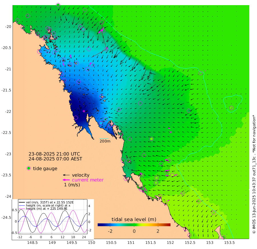 45cm/s 162T +10cm/s rms + 2cm/s 5T. Brampton I 18m 43cm/s 174T +9cm/s rms + 6cm/s 66T. Wigton I 38m 32cm/s -154T +7cm/s rms + 8cm/s 141T. Tern I 47m 62cm/s -159T +7cm/s rms + 12cm/s 54T. N Bugatti Rf 64m 66cm/s -144T +3cm/s rms + 13cm/s 178T. W Bugatti Rf 70m 31cm/s -153T +3cm/s rms + 3cm/s -130T. Creal Rf 69m 55cm/s -75T +7cm/s rms + 4cm/s 2T. North Rf 62m 51cm/s -39T +9cm/s rms + 2cm/s -56T. Cape Capricorn 26m 13cm/s -101T +5cm/s rms + 3cm/s 166T. L Musgrave I 42m 21cm/s -75T +9cm/s rms + 1cm/s -142T. Round Hill Hd 26m 7cm/s -145T +41cm/s rms + 48cm/s 116T. GBRELR 305m 28cm/s -75T +7cm/s rms + 6cm/s 123T. GBRCCH 92m 69cm/s -102T +8cm/s rms + 3cm/s -33T. GBRHIN 45m 43cm/s -93T +4cm/s rms + 2cm/s 41T. GBRHIS 46m 41cm/s -116T +16cm/s rms + 4cm/s -22T. GBROTE 59m -63cm Bell Cay -32cm Holbourne I -136cm Tern I -49cm Bugatti Rf -88cm Creal Rf -21cm White Tip I 20cm North Rf 25cm Rundle I 32cm L Musgrave I 29cm Saumarez Reef -2cm Kennedy Reef 0cm Unnamed Reef No. 2 -27cm Abbot Point -41cm Bowen -73cm Tideway Reef -55cm Hayman Island -96cm Square Reef -69cm Double Bay -89cm Molle Island -85cm Cid Harbour -67cm Hook Island -79cm Border Island -96cm Haslewood Island -89cm Shute Harbour -129cm Thomas Island -120cm Credlin Reef -147cm East Repulse Island -136cm Blacksmith Island -162cm Laguna Quays -144cm Carlisle Island (Off) -162cm St. Bees Island -139cm Scawfell Island -143cm Penrith Island -182cm Mackay Outer Harbour -191cm Hay Point -182cm Prudhoe Island -143cm Middle Island (Percy Isles) -53cm Gannet Cay 21cm Elusive Reef -305cm Mcewin Islet -110cm Mumford Island -150cm Osborn Island -166cm Marquis Island -139cm Reef Point -92cm High Peak Island -47cm Port Clinton -18cm Peaked Island 30cm Karamea Bank 2cm Johnson Patch - NW -3cm Rosslyn Bay 2cm Middle Island (Keppel Isles) -17cm Port Alma 27cm Heron Island 42cm One Tree Islet 35cm Polmaise Reef 16cm Tryon Island 31cm Rock Cod Shoal 16cm Gatcombe Head 6cm Gladstone 18cm South Trees (Storm Surge) 50cm Clews Point 38cm Round Hill Head 34cm Lady Elliot Island 35cm Breaksea Spit 41cm Bundaberg (Burnett Heads) 43cm Elliot Heads 24cm Waddy Point (Fraser Island)
