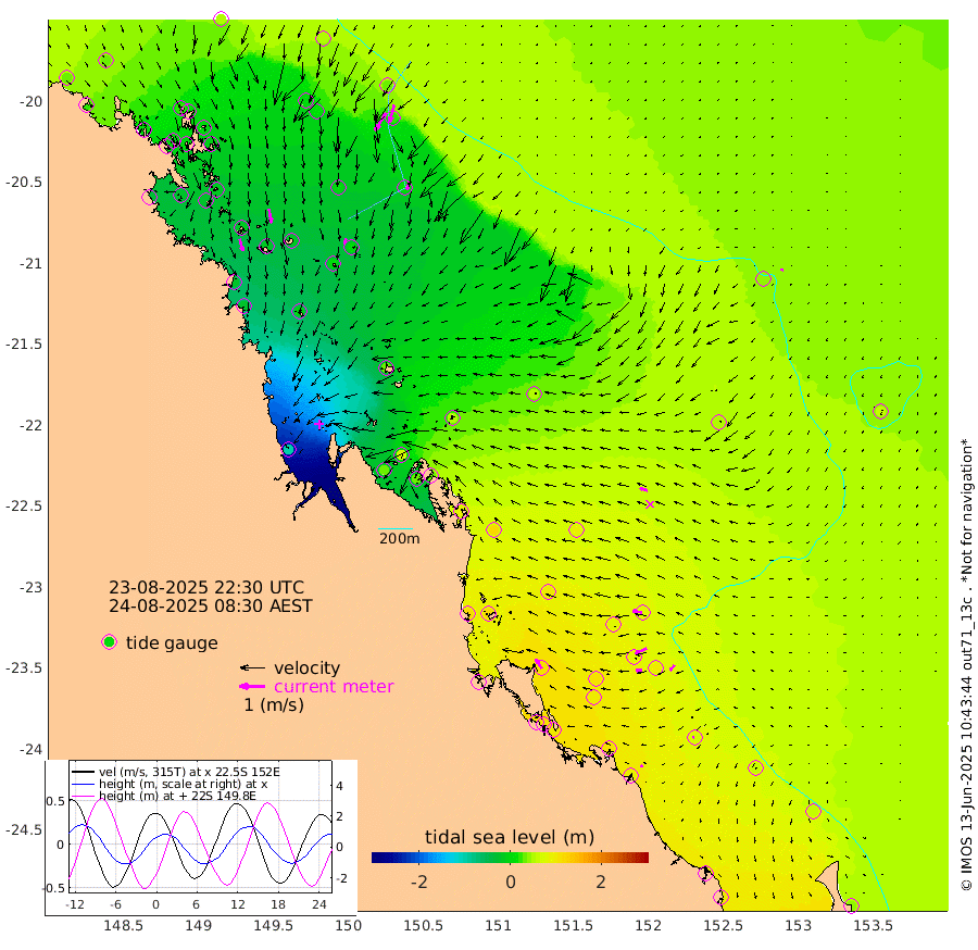 49cm/s 166T +10cm/s rms + 2cm/s 5T. Brampton I 18m 58cm/s 169T +9cm/s rms + 6cm/s 66T. Wigton I 38m 24cm/s -161T +7cm/s rms + 8cm/s 141T. Tern I 47m 72cm/s -165T +7cm/s rms + 12cm/s 54T. N Bugatti Rf 64m 83cm/s -150T +3cm/s rms + 13cm/s 178T. W Bugatti Rf 70m 32cm/s -171T +3cm/s rms + 3cm/s -130T. Creal Rf 69m 40cm/s -79T +7cm/s rms + 4cm/s 2T. North Rf 62m 44cm/s -30T +9cm/s rms + 2cm/s -56T. Cape Capricorn 26m 6cm/s -113T +5cm/s rms + 3cm/s 166T. L Musgrave I 42m 10cm/s -76T +9cm/s rms + 1cm/s -142T. Round Hill Hd 26m 7cm/s -163T +41cm/s rms + 48cm/s 116T. GBRELR 305m 32cm/s -73T +7cm/s rms + 6cm/s 123T. GBRCCH 92m 49cm/s -114T +8cm/s rms + 3cm/s -33T. GBRHIN 45m 25cm/s -96T +4cm/s rms + 2cm/s 41T. GBRHIS 46m 28cm/s -139T +16cm/s rms + 4cm/s -22T. GBROTE 59m 50cm Bell Cay 35cm Holbourne I 8cm Tern I 23cm Bugatti Rf 13cm Creal Rf 34cm White Tip I 81cm North Rf 110cm Rundle I 66cm L Musgrave I 59cm Saumarez Reef 54cm Kennedy Reef 48cm Unnamed Reef No. 2 35cm Abbot Point 28cm Bowen 9cm Tideway Reef 25cm Hayman Island 10cm Square Reef 18cm Double Bay -8cm Molle Island 5cm Cid Harbour 15cm Hook Island 1cm Border Island -8cm Haslewood Island 4cm Shute Harbour -14cm Thomas Island 3cm Credlin Reef -24cm East Repulse Island -19cm Blacksmith Island -36cm Laguna Quays -16cm Carlisle Island (Off) -16cm St. Bees Island -14cm Scawfell Island 1cm Penrith Island -27cm Mackay Outer Harbour -24cm Hay Point -6cm Prudhoe Island 35cm Middle Island (Percy Isles) 51cm Gannet Cay 43cm Elusive Reef -102cm Mcewin Islet 70cm Mumford Island 34cm Osborn Island 29cm Marquis Island 34cm Reef Point 50cm High Peak Island 93cm Port Clinton 116cm Peaked Island 90cm Karamea Bank 101cm Johnson Patch - NW 115cm Rosslyn Bay 121cm Middle Island (Keppel Isles) 122cm Port Alma 84cm Heron Island 100cm One Tree Islet 103cm Polmaise Reef 83cm Tryon Island 97cm Rock Cod Shoal 99cm Gatcombe Head 108cm Gladstone 110cm South Trees (Storm Surge) 104cm Clews Point 86cm Round Hill Head 64cm Lady Elliot Island 59cm Breaksea Spit 93cm Bundaberg (Burnett Heads) 97cm Elliot Heads 42cm Waddy Point (Fraser Island)