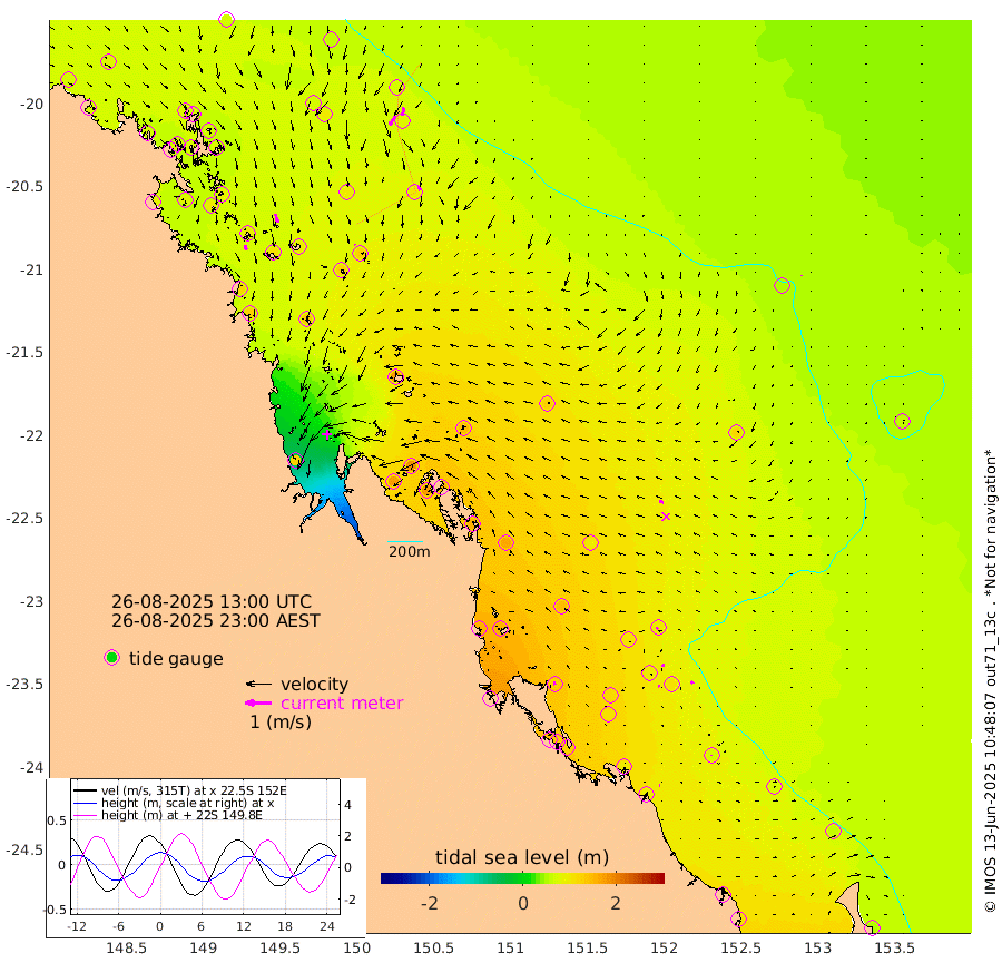 21cm/s 173T +10cm/s rms + 2cm/s 5T. Brampton I 18m 34cm/s 166T +9cm/s rms + 6cm/s 66T. Wigton I 38m 4cm/s 148T +7cm/s rms + 8cm/s 141T. Tern I 47m 31cm/s -172T +7cm/s rms + 12cm/s 54T. N Bugatti Rf 64m 42cm/s -151T +3cm/s rms + 13cm/s 178T. W Bugatti Rf 70m 18cm/s 164T +3cm/s rms + 3cm/s -130T. Creal Rf 69m 8cm/s -124T +7cm/s rms + 4cm/s 2T. North Rf 62m 12cm/s -12T +9cm/s rms + 2cm/s -56T. Cape Capricorn 26m 3cm/s -174T +5cm/s rms + 3cm/s 166T. L Musgrave I 42m 5cm/s 122T +9cm/s rms + 1cm/s -142T. Round Hill Hd 26m 2cm/s -171T +41cm/s rms + 48cm/s 116T. GBRELR 305m 17cm/s -72T +7cm/s rms + 6cm/s 123T. GBRCCH 92m 10cm/s 161T +8cm/s rms + 3cm/s -33T. GBRHIN 45m 6cm/s 102T +4cm/s rms + 2cm/s 41T. GBRHIS 46m 11cm/s 143T +16cm/s rms + 4cm/s -22T. GBROTE 59m 122cm Bell Cay 75cm Holbourne I 124cm Tern I 78cm Bugatti Rf 96cm Creal Rf 69cm White Tip I 100cm North Rf 129cm Rundle I 72cm L Musgrave I 64cm Saumarez Reef 70cm Kennedy Reef 64cm Unnamed Reef No. 2 67cm Abbot Point 69cm Bowen 74cm Tideway Reef 82cm Hayman Island 101cm Square Reef 75cm Double Bay 80cm Molle Island 83cm Cid Harbour 74cm Hook Island 72cm Border Island 75cm Haslewood Island 80cm Shute Harbour 89cm Thomas Island 103cm Credlin Reef 83cm East Repulse Island 96cm Blacksmith Island 90cm Laguna Quays 96cm Carlisle Island (Off) 105cm St. Bees Island 100cm Scawfell Island 127cm Penrith Island 116cm Mackay Outer Harbour 127cm Hay Point 139cm Prudhoe Island 171cm Middle Island (Percy Isles) 114cm Gannet Cay 48cm Elusive Reef 123cm Mcewin Islet 183cm Mumford Island 169cm Osborn Island 174cm Marquis Island 158cm Reef Point 143cm High Peak Island 158cm Port Clinton 160cm Peaked Island 97cm Karamea Bank 142cm Johnson Patch - NW 154cm Rosslyn Bay 154cm Middle Island (Keppel Isles) 173cm Port Alma 100cm Heron Island 108cm One Tree Islet 116cm Polmaise Reef 106cm Tryon Island 104cm Rock Cod Shoal 124cm Gatcombe Head 142cm Gladstone 135cm South Trees (Storm Surge) 102cm Clews Point 92cm Round Hill Head 68cm Lady Elliot Island 62cm Breaksea Spit 99cm Bundaberg (Burnett Heads) 106cm Elliot Heads 49cm Waddy Point (Fraser Island)