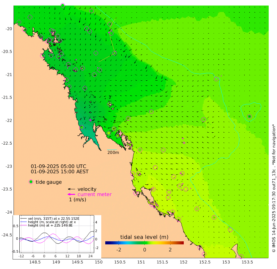11cm/s -139T +10cm/s rms + 2cm/s 5T. Brampton I 18m 15cm/s -174T +9cm/s rms + 6cm/s 66T. Wigton I 38m 10cm/s -120T +7cm/s rms + 8cm/s 141T. Tern I 47m 15cm/s -150T +7cm/s rms + 12cm/s 54T. N Bugatti Rf 64m 19cm/s -131T +3cm/s rms + 13cm/s 178T. W Bugatti Rf 70m 7cm/s -144T +3cm/s rms + 3cm/s -130T. Creal Rf 69m 23cm/s -80T +7cm/s rms + 4cm/s 2T. North Rf 62m 19cm/s -28T +9cm/s rms + 2cm/s -56T. Cape Capricorn 26m 3cm/s 178T +5cm/s rms + 3cm/s 166T. L Musgrave I 42m 2cm/s -55T +9cm/s rms + 1cm/s -142T. Round Hill Hd 26m 5cm/s -59T +41cm/s rms + 48cm/s 116T. GBRELR 305m 18cm/s -60T +7cm/s rms + 6cm/s 123T. GBRCCH 92m 19cm/s -109T +8cm/s rms + 3cm/s -33T. GBRHIN 45m 10cm/s -94T +4cm/s rms + 2cm/s 41T. GBRHIS 46m 9cm/s -102T +16cm/s rms + 4cm/s -22T. GBROTE 59m 29cm Bell Cay 5cm Holbourne I 6cm Tern I 12cm Bugatti Rf 8cm Creal Rf 16cm White Tip I 49cm North Rf 57cm Rundle I 45cm L Musgrave I 18cm Saumarez Reef 15cm Kennedy Reef 18cm Unnamed Reef No. 2 3cm Abbot Point 3cm Bowen -3cm Tideway Reef 7cm Hayman Island -6cm Square Reef 0cm Double Bay 6cm Molle Island 6cm Cid Harbour 2cm Hook Island 5cm Border Island -1cm Haslewood Island 0cm Shute Harbour -3cm Thomas Island 3cm Credlin Reef -2cm East Repulse Island 8cm Blacksmith Island -6cm Laguna Quays 1cm Carlisle Island (Off) 2cm St. Bees Island 9cm Scawfell Island 13cm Penrith Island 3cm Mackay Outer Harbour 5cm Hay Point -7cm Prudhoe Island 29cm Middle Island (Percy Isles) 37cm Gannet Cay 30cm Elusive Reef 19cm Mcewin Islet 38cm Mumford Island 44cm Osborn Island 46cm Marquis Island 41cm Reef Point 31cm High Peak Island 44cm Port Clinton 35cm Peaked Island 46cm Karamea Bank 56cm Johnson Patch - NW 57cm Rosslyn Bay 53cm Middle Island (Keppel Isles) 59cm Port Alma 51cm Heron Island 58cm One Tree Islet 54cm Polmaise Reef 56cm Tryon Island 53cm Rock Cod Shoal 54cm Gatcombe Head 58cm Gladstone 58cm South Trees (Storm Surge) 55cm Clews Point 51cm Round Hill Head 43cm Lady Elliot Island 52cm Breaksea Spit 51cm Bundaberg (Burnett Heads) 56cm Elliot Heads 41cm Waddy Point (Fraser Island)