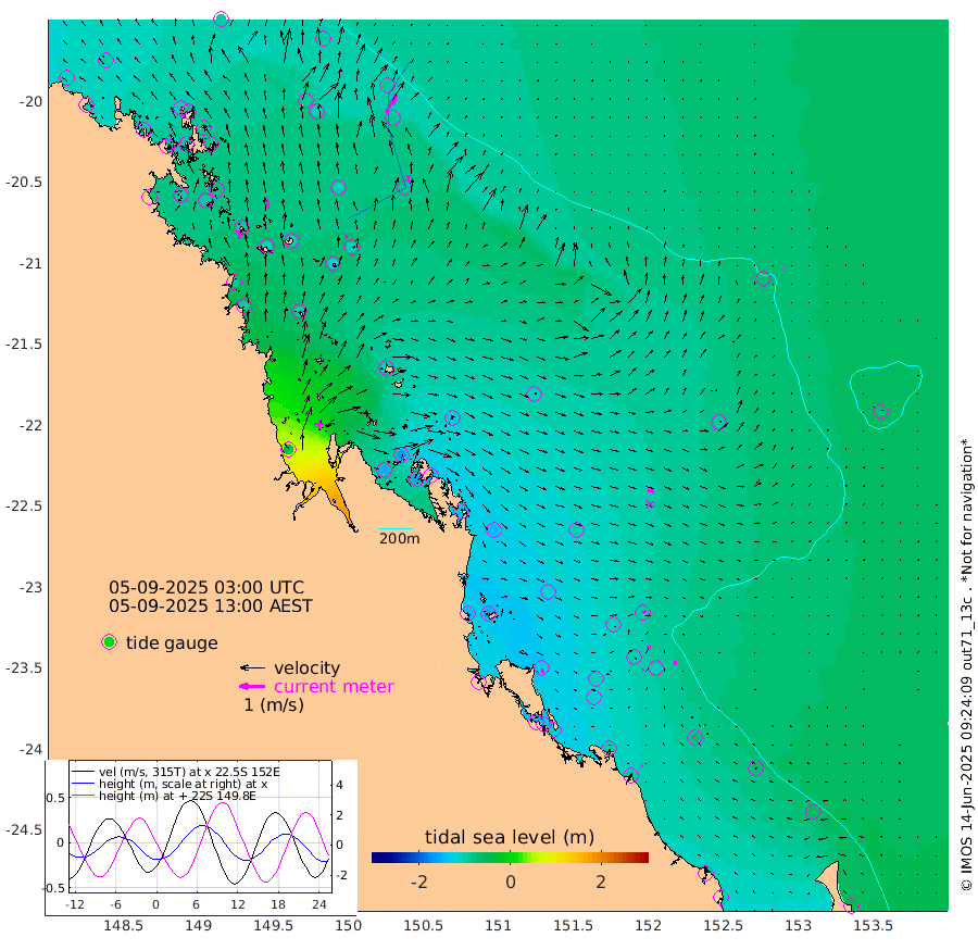 31cm/s -7T +10cm/s rms + 2cm/s 5T. Brampton I 18m 37cm/s -14T +9cm/s rms + 6cm/s 66T. Wigton I 38m 11cm/s 16T +7cm/s rms + 8cm/s 141T. Tern I 47m 42cm/s 7T +7cm/s rms + 12cm/s 54T. N Bugatti Rf 64m 64cm/s 31T +3cm/s rms + 13cm/s 178T. W Bugatti Rf 70m 24cm/s -1T +3cm/s rms + 3cm/s -130T. Creal Rf 69m 13cm/s 65T +7cm/s rms + 4cm/s 2T. North Rf 62m 17cm/s 157T +9cm/s rms + 2cm/s -56T. Cape Capricorn 26m 5cm/s -49T +5cm/s rms + 3cm/s 166T. L Musgrave I 42m 4cm/s -47T +9cm/s rms + 1cm/s -142T. Round Hill Hd 26m 4cm/s 8T +41cm/s rms + 48cm/s 116T. GBRELR 305m 23cm/s 100T +7cm/s rms + 6cm/s 123T. GBRCCH 92m 15cm/s 60T +8cm/s rms + 3cm/s -33T. GBRHIN 45m 5cm/s 48T +4cm/s rms + 2cm/s 41T. GBRHIS 46m 18cm/s 16T +16cm/s rms + 4cm/s -22T. GBROTE 59m -109cm Bell Cay -101cm Holbourne I -107cm Tern I -87cm Bugatti Rf -87cm Creal Rf -87cm White Tip I -101cm North Rf -129cm Rundle I -74cm L Musgrave I -68cm Saumarez Reef -99cm Kennedy Reef -96cm Unnamed Reef No. 2 -106cm Abbot Point -104cm Bowen -90cm Tideway Reef -107cm Hayman Island -104cm Square Reef -97cm Double Bay -102cm Molle Island -103cm Cid Harbour -89cm Hook Island -92cm Border Island -90cm Haslewood Island -96cm Shute Harbour -84cm Thomas Island -105cm Credlin Reef -97cm East Repulse Island -98cm Blacksmith Island -82cm Laguna Quays -103cm Carlisle Island (Off) -106cm St. Bees Island -105cm Scawfell Island -114cm Penrith Island -93cm Mackay Outer Harbour -99cm Hay Point -96cm Prudhoe Island -119cm Middle Island (Percy Isles) -99cm Gannet Cay -66cm Elusive Reef -58cm Mcewin Islet -161cm Mumford Island -151cm Osborn Island -152cm Marquis Island -145cm Reef Point -123cm High Peak Island -133cm Port Clinton -143cm Peaked Island -101cm Karamea Bank -119cm Johnson Patch - NW -147cm Rosslyn Bay -151cm Middle Island (Keppel Isles) -159cm Port Alma -99cm Heron Island -106cm One Tree Islet -110cm Polmaise Reef -105cm Tryon Island -114cm Rock Cod Shoal -118cm Gatcombe Head -132cm Gladstone -129cm South Trees (Storm Surge) -103cm Clews Point -91cm Round Hill Head -67cm Lady Elliot Island -64cm Breaksea Spit -99cm Bundaberg (Burnett Heads) -108cm Elliot Heads -47cm Waddy Point (Fraser Island)