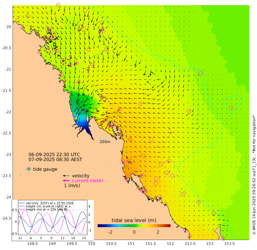 37cm/s 169T +10cm/s rms + 2cm/s 5T. Brampton I 18m 49cm/s 166T +9cm/s rms + 6cm/s 66T. Wigton I 38m 10cm/s -179T +7cm/s rms + 8cm/s 141T. Tern I 47m 54cm/s -170T +7cm/s rms + 12cm/s 54T. N Bugatti Rf 64m 68cm/s -153T +3cm/s rms + 13cm/s 178T. W Bugatti Rf 70m 26cm/s 169T +3cm/s rms + 3cm/s -130T. Creal Rf 69m 14cm/s -93T +7cm/s rms + 4cm/s 2T. North Rf 62m 22cm/s -18T +9cm/s rms + 2cm/s -56T. Cape Capricorn 26m 1cm/s 85T +5cm/s rms + 3cm/s 166T. L Musgrave I 42m 3cm/s 114T +9cm/s rms + 1cm/s -142T. Round Hill Hd 26m 6cm/s 172T +41cm/s rms + 48cm/s 116T. GBRELR 305m 23cm/s -74T +7cm/s rms + 6cm/s 123T. GBRCCH 92m 20cm/s -145T +8cm/s rms + 3cm/s -33T. GBRHIN 45m 2cm/s -169T +4cm/s rms + 2cm/s 41T. GBRHIS 46m 17cm/s 167T +16cm/s rms + 4cm/s -22T. GBROTE 59m 118cm Bell Cay 71cm Holbourne I 116cm Tern I 72cm Bugatti Rf 85cm Creal Rf 65cm White Tip I 97cm North Rf 134cm Rundle I 64cm L Musgrave I 55cm Saumarez Reef 75cm Kennedy Reef 68cm Unnamed Reef No. 2 77cm Abbot Point 77cm Bowen 70cm Tideway Reef 87cm Hayman Island 89cm Square Reef 77cm Double Bay 64cm Molle Island 89cm Cid Harbour 69cm Hook Island 70cm Border Island 75cm Haslewood Island 80cm Shute Harbour 81cm Thomas Island 103cm Credlin Reef 95cm East Repulse Island 96cm Blacksmith Island 79cm Laguna Quays 101cm Carlisle Island (Off) 125cm St. Bees Island 113cm Scawfell Island 121cm Penrith Island 104cm Mackay Outer Harbour 115cm Hay Point 117cm Prudhoe Island 144cm Middle Island (Percy Isles) 110cm Gannet Cay 41cm Elusive Reef 91cm Mcewin Islet 188cm Mumford Island 181cm Osborn Island 190cm Marquis Island 174cm Reef Point 142cm High Peak Island 154cm Port Clinton 167cm Peaked Island 101cm Karamea Bank 129cm Johnson Patch - NW 163cm Rosslyn Bay 168cm Middle Island (Keppel Isles) 182cm Port Alma 96cm Heron Island 99cm One Tree Islet 112cm Polmaise Reef 106cm Tryon Island 113cm Rock Cod Shoal 126cm Gatcombe Head 146cm Gladstone 140cm South Trees (Storm Surge) 103cm Clews Point 89cm Round Hill Head 59cm Lady Elliot Island 52cm Breaksea Spit 96cm Bundaberg (Burnett Heads) 107cm Elliot Heads 38cm Waddy Point (Fraser Island)