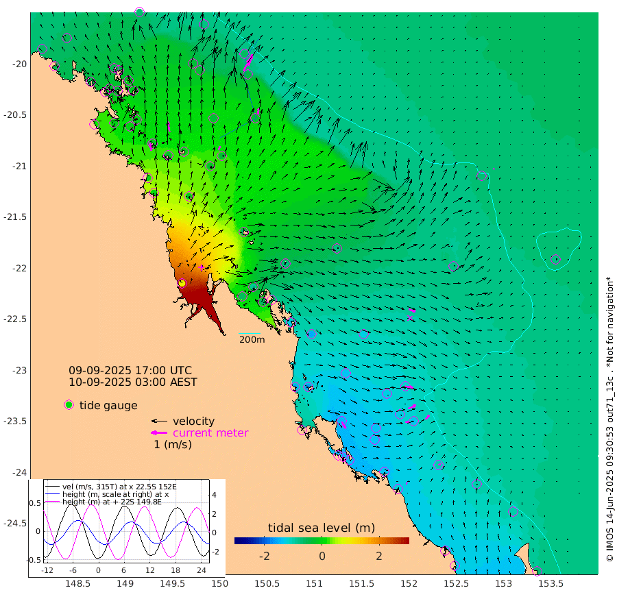 50cm/s -9T +10cm/s rms + 2cm/s 5T. Brampton I 18m 62cm/s -9T +9cm/s rms + 6cm/s 66T. Wigton I 38m 26cm/s 22T +7cm/s rms + 8cm/s 141T. Tern I 47m 76cm/s 17T +7cm/s rms + 12cm/s 54T. N Bugatti Rf 64m 91cm/s 29T +3cm/s rms + 13cm/s 178T. W Bugatti Rf 70m 36cm/s 8T +3cm/s rms + 3cm/s -130T. Creal Rf 69m 50cm/s 100T +7cm/s rms + 4cm/s 2T. North Rf 62m 48cm/s 149T +9cm/s rms + 2cm/s -56T. Cape Capricorn 26m 14cm/s 81T +5cm/s rms + 3cm/s 166T. L Musgrave I 42m 8cm/s 105T +9cm/s rms + 1cm/s -142T. Round Hill Hd 26m 6cm/s 31T +41cm/s rms + 48cm/s 116T. GBRELR 305m 44cm/s 108T +7cm/s rms + 6cm/s 123T. GBRCCH 92m 55cm/s 65T +8cm/s rms + 3cm/s -33T. GBRHIN 45m 27cm/s 79T +4cm/s rms + 2cm/s 41T. GBRHIS 46m 32cm/s 40T +16cm/s rms + 4cm/s -22T. GBROTE 59m -78cm Bell Cay -54cm Holbourne I -29cm Tern I -46cm Bugatti Rf -35cm Creal Rf -59cm White Tip I -117cm North Rf -149cm Rundle I -98cm L Musgrave I -84cm Saumarez Reef -68cm Kennedy Reef -76cm Unnamed Reef No. 2 -59cm Abbot Point -51cm Bowen -31cm Tideway Reef -50cm Hayman Island -31cm Square Reef -50cm Double Bay -19cm Molle Island -30cm Cid Harbour -38cm Hook Island -15cm Border Island -17cm Haslewood Island -27cm Shute Harbour -8cm Thomas Island -30cm Credlin Reef -7cm East Repulse Island -6cm Blacksmith Island 16cm Laguna Quays -14cm Carlisle Island (Off) -24cm St. Bees Island -14cm Scawfell Island -27cm Penrith Island 5cm Mackay Outer Harbour 0cm Hay Point -15cm Prudhoe Island -59cm Middle Island (Percy Isles) -75cm Gannet Cay -71cm Elusive Reef 92cm Mcewin Islet -90cm Mumford Island -56cm Osborn Island -62cm Marquis Island -65cm Reef Point -81cm High Peak Island -126cm Port Clinton -151cm Peaked Island -128cm Karamea Bank -138cm Johnson Patch - NW -155cm Rosslyn Bay -163cm Middle Island (Keppel Isles) -160cm Port Alma -122cm Heron Island -133cm One Tree Islet -136cm Polmaise Reef -124cm Tryon Island -139cm Rock Cod Shoal -135cm Gatcombe Head -143cm Gladstone -147cm South Trees (Storm Surge) -134cm Clews Point -118cm Round Hill Head -98cm Lady Elliot Island -94cm Breaksea Spit -125cm Bundaberg (Burnett Heads) -134cm Elliot Heads -72cm Waddy Point (Fraser Island)