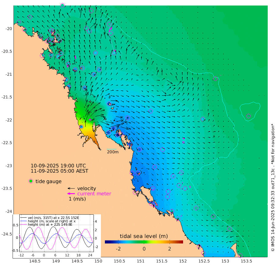 26cm/s -1T +10cm/s rms + 2cm/s 5T. Brampton I 18m 41cm/s -13T +9cm/s rms + 6cm/s 66T. Wigton I 38m 5cm/s -3T +7cm/s rms + 8cm/s 141T. Tern I 47m 38cm/s 8T +7cm/s rms + 12cm/s 54T. N Bugatti Rf 64m 51cm/s 26T +3cm/s rms + 13cm/s 178T. W Bugatti Rf 70m 22cm/s -16T +3cm/s rms + 3cm/s -130T. Creal Rf 69m 7cm/s 60T +7cm/s rms + 4cm/s 2T. North Rf 62m 15cm/s 171T +9cm/s rms + 2cm/s -56T. Cape Capricorn 26m 2cm/s -40T +5cm/s rms + 3cm/s 166T. L Musgrave I 42m 8cm/s -69T +9cm/s rms + 1cm/s -142T. Round Hill Hd 26m 2cm/s -8T +41cm/s rms + 48cm/s 116T. GBRELR 305m 25cm/s 107T +7cm/s rms + 6cm/s 123T. GBRCCH 92m 11cm/s -1T +8cm/s rms + 3cm/s -33T. GBRHIN 45m 8cm/s -58T +4cm/s rms + 2cm/s 41T. GBRHIS 46m 20cm/s -23T +16cm/s rms + 4cm/s -22T. GBROTE 59m -149cm Bell Cay -91cm Holbourne I -152cm Tern I -96cm Bugatti Rf -117cm Creal Rf -85cm White Tip I -121cm North Rf -158cm Rundle I -87cm L Musgrave I -72cm Saumarez Reef -88cm Kennedy Reef -85cm Unnamed Reef No. 2 -89cm Abbot Point -91cm Bowen -94cm Tideway Reef -103cm Hayman Island -117cm Square Reef -105cm Double Bay -96cm Molle Island -109cm Cid Harbour -98cm Hook Island -89cm Border Island -100cm Haslewood Island -105cm Shute Harbour -115cm Thomas Island -134cm Credlin Reef -127cm East Repulse Island -126cm Blacksmith Island -117cm Laguna Quays -136cm Carlisle Island (Off) -161cm St. Bees Island -135cm Scawfell Island -155cm Penrith Island -148cm Mackay Outer Harbour -162cm Hay Point -167cm Prudhoe Island -200cm Middle Island (Percy Isles) -140cm Gannet Cay -62cm Elusive Reef -163cm Mcewin Islet -214cm Mumford Island -212cm Osborn Island -228cm Marquis Island -206cm Reef Point -178cm High Peak Island -194cm Port Clinton -194cm Peaked Island -124cm Karamea Bank -166cm Johnson Patch - NW -191cm Rosslyn Bay -193cm Middle Island (Keppel Isles) -214cm Port Alma -122cm Heron Island -123cm One Tree Islet -135cm Polmaise Reef -134cm Tryon Island -136cm Rock Cod Shoal -152cm Gatcombe Head -175cm Gladstone -166cm South Trees (Storm Surge) -120cm Clews Point -111cm Round Hill Head -83cm Lady Elliot Island -78cm Breaksea Spit -120cm Bundaberg (Burnett Heads) -129cm Elliot Heads -58cm Waddy Point (Fraser Island)