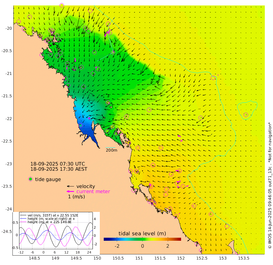 38cm/s -179T +10cm/s rms + 2cm/s 5T. Brampton I 18m 47cm/s 175T +9cm/s rms + 6cm/s 66T. Wigton I 38m 26cm/s -144T +7cm/s rms + 8cm/s 141T. Tern I 47m 66cm/s -161T +7cm/s rms + 12cm/s 54T. N Bugatti Rf 64m 83cm/s -148T +3cm/s rms + 13cm/s 178T. W Bugatti Rf 70m 30cm/s -158T +3cm/s rms + 3cm/s -130T. Creal Rf 69m 52cm/s -84T +7cm/s rms + 4cm/s 2T. North Rf 62m 48cm/s -29T +9cm/s rms + 2cm/s -56T. Cape Capricorn 26m 11cm/s -125T +5cm/s rms + 3cm/s 166T. L Musgrave I 42m 8cm/s -69T +9cm/s rms + 1cm/s -142T. Round Hill Hd 26m 7cm/s -100T +41cm/s rms + 48cm/s 116T. GBRELR 305m 44cm/s -68T +7cm/s rms + 6cm/s 123T. GBRCCH 92m 54cm/s -111T +8cm/s rms + 3cm/s -33T. GBRHIN 45m 31cm/s -95T +4cm/s rms + 2cm/s 41T. GBRHIS 46m 30cm/s -118T +16cm/s rms + 4cm/s -22T. GBROTE 59m 69cm Bell Cay 71cm Holbourne I 20cm Tern I 51cm Bugatti Rf 30cm Creal Rf 69cm White Tip I 116cm North Rf 141cm Rundle I 102cm L Musgrave I 74cm Saumarez Reef 77cm Kennedy Reef 88cm Unnamed Reef No. 2 67cm Abbot Point 59cm Bowen 35cm Tideway Reef 55cm Hayman Island 28cm Square Reef 66cm Double Bay 47cm Molle Island 21cm Cid Harbour 50cm Hook Island 21cm Border Island 14cm Haslewood Island 30cm Shute Harbour 4cm Thomas Island 20cm Credlin Reef -2cm East Repulse Island -11cm Blacksmith Island -17cm Laguna Quays 7cm Carlisle Island (Off) -12cm St. Bees Island -4cm Scawfell Island 17cm Penrith Island -11cm Mackay Outer Harbour -9cm Hay Point 5cm Prudhoe Island 51cm Middle Island (Percy Isles) 71cm Gannet Cay 87cm Elusive Reef -85cm Mcewin Islet 71cm Mumford Island 33cm Osborn Island 29cm Marquis Island 36cm Reef Point 62cm High Peak Island 116cm Port Clinton 123cm Peaked Island 122cm Karamea Bank 128cm Johnson Patch - NW 137cm Rosslyn Bay 141cm Middle Island (Keppel Isles) 135cm Port Alma 118cm Heron Island 140cm One Tree Islet 130cm Polmaise Reef 114cm Tryon Island 131cm Rock Cod Shoal 125cm Gatcombe Head 126cm Gladstone 132cm South Trees (Storm Surge) 131cm Clews Point 115cm Round Hill Head 100cm Lady Elliot Island 103cm Breaksea Spit 118cm Bundaberg (Burnett Heads) 117cm Elliot Heads 82cm Waddy Point (Fraser Island)