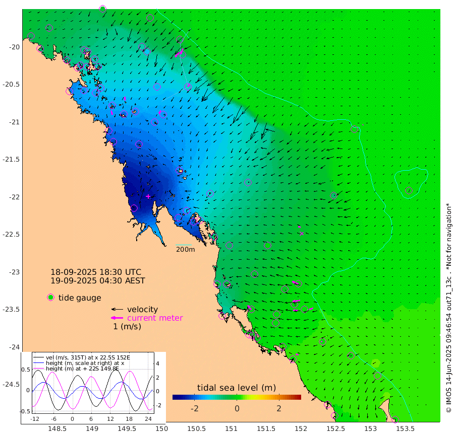 35cm/s 165T +10cm/s rms + 2cm/s 5T. Brampton I 18m 32cm/s 176T +9cm/s rms + 6cm/s 66T. Wigton I 38m 29cm/s -151T +7cm/s rms + 8cm/s 141T. Tern I 47m 52cm/s -156T +7cm/s rms + 12cm/s 54T. N Bugatti Rf 64m 52cm/s -141T +3cm/s rms + 13cm/s 178T. W Bugatti Rf 70m 26cm/s -142T +3cm/s rms + 3cm/s -130T. Creal Rf 69m 53cm/s -72T +7cm/s rms + 4cm/s 2T. North Rf 62m 47cm/s -41T +9cm/s rms + 2cm/s -56T. Cape Capricorn 26m 13cm/s -94T +5cm/s rms + 3cm/s 166T. L Musgrave I 42m 22cm/s -74T +9cm/s rms + 1cm/s -142T. Round Hill Hd 26m 6cm/s -127T +41cm/s rms + 48cm/s 116T. GBRELR 305m 21cm/s -74T +7cm/s rms + 6cm/s 123T. GBRCCH 92m 64cm/s -99T +8cm/s rms + 3cm/s -33T. GBRHIN 45m 41cm/s -92T +4cm/s rms + 2cm/s 41T. GBRHIS 46m 36cm/s -112T +16cm/s rms + 4cm/s -22T. GBROTE 59m -88cm Bell Cay -53cm Holbourne I -161cm Tern I -71cm Bugatti Rf -111cm Creal Rf -43cm White Tip I -3cm North Rf -4cm Rundle I 15cm L Musgrave I 1cm Saumarez Reef -23cm Kennedy Reef -22cm Unnamed Reef No. 2 -55cm Abbot Point -67cm Bowen -97cm Tideway Reef -80cm Hayman Island -131cm Square Reef -85cm Double Bay -106cm Molle Island -114cm Cid Harbour -85cm Hook Island -103cm Border Island -120cm Haslewood Island -112cm Shute Harbour -150cm Thomas Island -149cm Credlin Reef -169cm East Repulse Island -160cm Blacksmith Island -180cm Laguna Quays -167cm Carlisle Island (Off) -192cm St. Bees Island -170cm Scawfell Island -172cm Penrith Island -201cm Mackay Outer Harbour -210cm Hay Point -207cm Prudhoe Island -161cm Middle Island (Percy Isles) -70cm Gannet Cay 7cm Elusive Reef -291cm Mcewin Islet -150cm Mumford Island -181cm Osborn Island -196cm Marquis Island -168cm Reef Point -118cm High Peak Island -72cm Port Clinton -61cm Peaked Island 5cm Karamea Bank -24cm Johnson Patch - NW -36cm Rosslyn Bay -36cm Middle Island (Keppel Isles) -51cm Port Alma 3cm Heron Island 16cm One Tree Islet 9cm Polmaise Reef -10cm Tryon Island 5cm Rock Cod Shoal -10cm Gatcombe Head -22cm Gladstone -9cm South Trees (Storm Surge) 25cm Clews Point 16cm Round Hill Head 16cm Lady Elliot Island 22cm Breaksea Spit 19cm Bundaberg (Burnett Heads) 18cm Elliot Heads 11cm Waddy Point (Fraser Island)