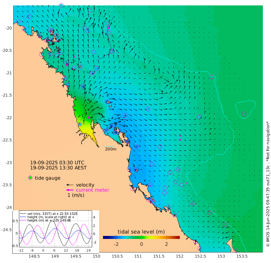 29cm/s -7T +10cm/s rms + 2cm/s 5T. Brampton I 18m 37cm/s -17T +9cm/s rms + 6cm/s 66T. Wigton I 38m 6cm/s -2T +7cm/s rms + 8cm/s 141T. Tern I 47m 44cm/s 1T +7cm/s rms + 12cm/s 54T. N Bugatti Rf 64m 67cm/s 28T +3cm/s rms + 13cm/s 178T. W Bugatti Rf 70m 24cm/s -7T +3cm/s rms + 3cm/s -130T. Creal Rf 69m 9cm/s 21T +7cm/s rms + 4cm/s 2T. North Rf 62m 15cm/s 172T +9cm/s rms + 2cm/s -56T. Cape Capricorn 26m 6cm/s -51T +5cm/s rms + 3cm/s 166T. L Musgrave I 42m 8cm/s -61T +9cm/s rms + 1cm/s -142T. Round Hill Hd 26m 4cm/s -9T +41cm/s rms + 48cm/s 116T. GBRELR 305m 24cm/s 102T +7cm/s rms + 6cm/s 123T. GBRCCH 92m 10cm/s 31T +8cm/s rms + 3cm/s -33T. GBRHIN 45m 4cm/s -40T +4cm/s rms + 2cm/s 41T. GBRHIS 46m 19cm/s -4T +16cm/s rms + 4cm/s -22T. GBROTE 59m -138cm Bell Cay -123cm Holbourne I -149cm Tern I -105cm Bugatti Rf -116cm Creal Rf -99cm White Tip I -110cm North Rf -145cm Rundle I -76cm L Musgrave I -75cm Saumarez Reef -114cm Kennedy Reef -108cm Unnamed Reef No. 2 -121cm Abbot Point -121cm Bowen -115cm Tideway Reef -125cm Hayman Island -135cm Square Reef -132cm Double Bay -118cm Molle Island -115cm Cid Harbour -120cm Hook Island -107cm Border Island -108cm Haslewood Island -120cm Shute Harbour -117cm Thomas Island -138cm Credlin Reef -128cm East Repulse Island -113cm Blacksmith Island -117cm Laguna Quays -137cm Carlisle Island (Off) -140cm St. Bees Island -122cm Scawfell Island -146cm Penrith Island -136cm Mackay Outer Harbour -146cm Hay Point -162cm Prudhoe Island -174cm Middle Island (Percy Isles) -123cm Gannet Cay -70cm Elusive Reef -115cm Mcewin Islet -198cm Mumford Island -181cm Osborn Island -185cm Marquis Island -172cm Reef Point -157cm High Peak Island -178cm Port Clinton -185cm Peaked Island -115cm Karamea Bank -141cm Johnson Patch - NW -172cm Rosslyn Bay -179cm Middle Island (Keppel Isles) -190cm Port Alma -105cm Heron Island -116cm One Tree Islet -121cm Polmaise Reef -109cm Tryon Island -124cm Rock Cod Shoal -132cm Gatcombe Head -151cm Gladstone -145cm South Trees (Storm Surge) -110cm Clews Point -95cm Round Hill Head -70cm Lady Elliot Island -61cm Breaksea Spit -104cm Bundaberg (Burnett Heads) -105cm Elliot Heads -45cm Waddy Point (Fraser Island)