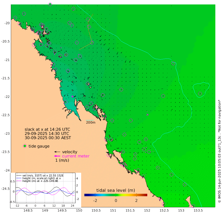 9cm/s 143T +10cm/s rms + 2cm/s 5T. Brampton I 18m 8cm/s 169T +9cm/s rms + 6cm/s 66T. Wigton I 38m 4cm/s 178T +7cm/s rms + 8cm/s 141T. Tern I 47m 1cm/s -85T +7cm/s rms + 12cm/s 54T. N Bugatti Rf 64m 5cm/s 6T +3cm/s rms + 13cm/s 178T. W Bugatti Rf 70m 5cm/s -171T +3cm/s rms + 3cm/s -130T. Creal Rf 69m 4cm/s -36T +7cm/s rms + 4cm/s 2T. North Rf 62m 6cm/s -72T +9cm/s rms + 2cm/s -56T. Cape Capricorn 26m 3cm/s -49T +5cm/s rms + 3cm/s 166T. L Musgrave I 42m 4cm/s -72T +9cm/s rms + 1cm/s -142T. Round Hill Hd 26m 2cm/s 155T +41cm/s rms + 48cm/s 116T. GBRELR 305m 4cm/s 141T +7cm/s rms + 6cm/s 123T. GBRCCH 92m 9cm/s -88T +8cm/s rms + 3cm/s -33T. GBRHIN 45m 6cm/s -97T +4cm/s rms + 2cm/s 41T. GBRHIS 46m 7cm/s -146T +16cm/s rms + 4cm/s -22T. GBROTE 59m -26cm Bell Cay -39cm Holbourne I -45cm Tern I -33cm Bugatti Rf -35cm Creal Rf -32cm White Tip I -12cm North Rf -11cm Rundle I -6cm L Musgrave I -7cm Saumarez Reef -31cm Kennedy Reef -32cm Unnamed Reef No. 2 -40cm Abbot Point -41cm Bowen -45cm Tideway Reef -41cm Hayman Island -51cm Square Reef -52cm Double Bay -49cm Molle Island -35cm Cid Harbour -41cm Hook Island -38cm Border Island -34cm Haslewood Island -44cm Shute Harbour -47cm Thomas Island -45cm Credlin Reef -44cm East Repulse Island -37cm Blacksmith Island -49cm Laguna Quays -41cm Carlisle Island (Off) -36cm St. Bees Island -36cm Scawfell Island -46cm Penrith Island -50cm Mackay Outer Harbour -51cm Hay Point -62cm Prudhoe Island -42cm Middle Island (Percy Isles) -19cm Gannet Cay -18cm Elusive Reef -48cm Mcewin Islet -44cm Mumford Island -35cm Osborn Island -27cm Marquis Island -30cm Reef Point -27cm High Peak Island -25cm Port Clinton -28cm Peaked Island -11cm Karamea Bank -13cm Johnson Patch - NW -16cm Rosslyn Bay -18cm Middle Island (Keppel Isles) -12cm Port Alma -6cm Heron Island -16cm One Tree Islet -10cm Polmaise Reef -11cm Tryon Island -8cm Rock Cod Shoal -7cm Gatcombe Head -4cm Gladstone -4cm South Trees (Storm Surge) -8cm Clews Point -2cm Round Hill Head -5cm Lady Elliot Island -8cm Breaksea Spit 3cm Bundaberg (Burnett Heads) 9cm Elliot Heads -10cm Waddy Point (Fraser Island)