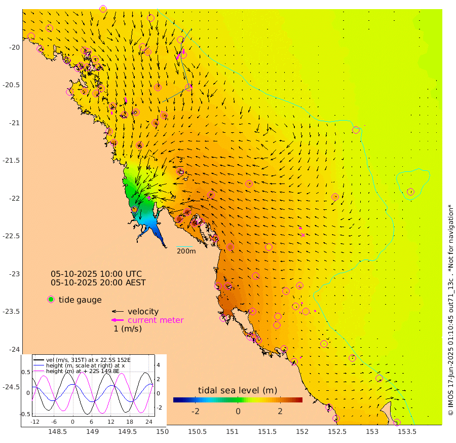 26cm/s 177T +10cm/s rms + 2cm/s 5T. Brampton I 18m 42cm/s 166T +9cm/s rms + 6cm/s 66T. Wigton I 38m 5cm/s 152T +7cm/s rms + 8cm/s 141T. Tern I 47m 42cm/s -176T +7cm/s rms + 12cm/s 54T. N Bugatti Rf 64m 62cm/s -154T +3cm/s rms + 13cm/s 178T. W Bugatti Rf 70m 26cm/s 164T +3cm/s rms + 3cm/s -130T. Creal Rf 69m 10cm/s -153T +7cm/s rms + 4cm/s 2T. North Rf 62m 15cm/s 1T +9cm/s rms + 2cm/s -56T. Cape Capricorn 26m 6cm/s 130T +5cm/s rms + 3cm/s 166T. L Musgrave I 42m 10cm/s 101T +9cm/s rms + 1cm/s -142T. Round Hill Hd 26m 3cm/s 173T +41cm/s rms + 48cm/s 116T. GBRELR 305m 25cm/s -73T +7cm/s rms + 6cm/s 123T. GBRCCH 92m 14cm/s 159T +8cm/s rms + 3cm/s -33T. GBRHIN 45m 9cm/s 104T +4cm/s rms + 2cm/s 41T. GBRHIS 46m 15cm/s 148T +16cm/s rms + 4cm/s -22T. GBROTE 59m 174cm Bell Cay 126cm Holbourne I 189cm Tern I 124cm Bugatti Rf 144cm Creal Rf 111cm White Tip I 134cm North Rf 174cm Rundle I 93cm L Musgrave I 86cm Saumarez Reef 115cm Kennedy Reef 113cm Unnamed Reef No. 2 130cm Abbot Point 133cm Bowen 131cm Tideway Reef 143cm Hayman Island 163cm Square Reef 129cm Double Bay 145cm Molle Island 151cm Cid Harbour 127cm Hook Island 133cm Border Island 140cm Haslewood Island 144cm Shute Harbour 150cm Thomas Island 176cm Credlin Reef 169cm East Repulse Island 160cm Blacksmith Island 155cm Laguna Quays 177cm Carlisle Island (Off) 178cm St. Bees Island 169cm Scawfell Island 200cm Penrith Island 185cm Mackay Outer Harbour 199cm Hay Point 201cm Prudhoe Island 220cm Middle Island (Percy Isles) 158cm Gannet Cay 75cm Elusive Reef 180cm Mcewin Islet 256cm Mumford Island 256cm Osborn Island 263cm Marquis Island 243cm Reef Point 204cm High Peak Island 210cm Port Clinton 216cm Peaked Island 136cm Karamea Bank 173cm Johnson Patch - NW 210cm Rosslyn Bay 216cm Middle Island (Keppel Isles) 233cm Port Alma 130cm Heron Island 135cm One Tree Islet 144cm Polmaise Reef 143cm Tryon Island 151cm Rock Cod Shoal 164cm Gatcombe Head 187cm Gladstone 178cm South Trees (Storm Surge) 130cm Clews Point 118cm Round Hill Head 86cm Lady Elliot Island 76cm Breaksea Spit 125cm Bundaberg (Burnett Heads) 133cm Elliot Heads 61cm Waddy Point (Fraser Island)